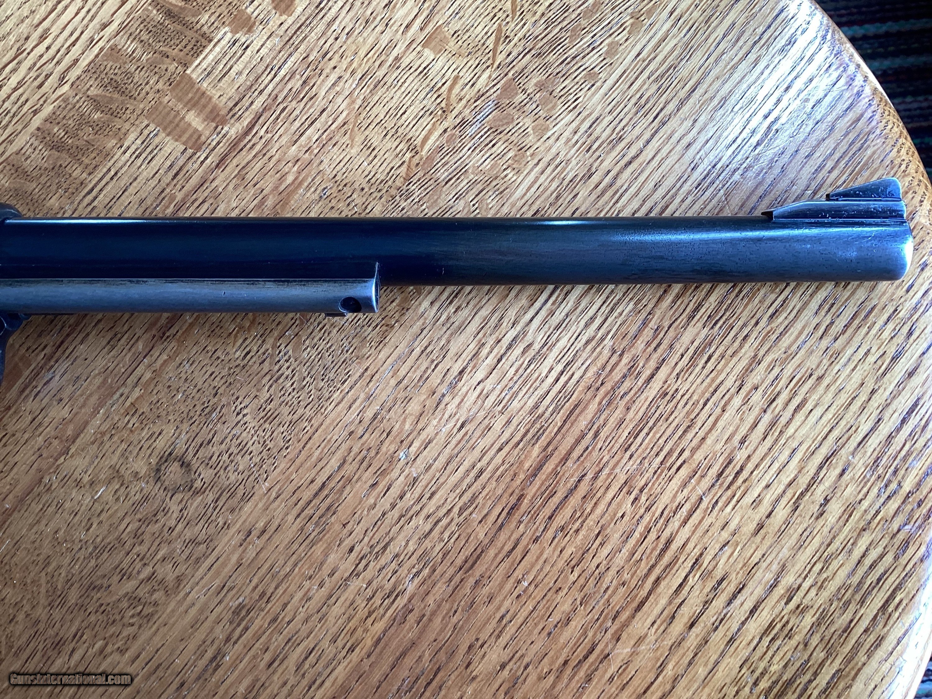 Description: Rare 10" 357 Magnum. Only 600 were made with 10" barrels. 400 with 6 rifling groves in the barrel and 200 with 8 groves in the barrel. This is one of 400 made. The grip frame was switched with the later XR3RED frame to make the grips larger. Could be easily changed back to original grips. This is an early 1958 Model. It has holster wear. It is in good shape mechanically and has a good clean bore. No rust on the revolver. Has been converted to safty bar. Will make a good shooter. Add $30. Shipped with copy of FFL. No California Sale. Phone: 208 863 0177 { SEE MY OTHER RARE LISTINGS ] Price: $1,250.00 Shipping: $30.00 Contact Seller |