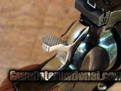 Description: Ruger Royal Phoenix .357 revolver. This was a special run by Ruger of 600 revolvers to Lippy's in Louisiana as the sole distributor. It is a limited edition GP 100 with a high polish deep blue finish. All exposed parts are higly polished. Rear sight can be adjusted for windage and elevation, the hammer and triggeer are highly polished stainless steel. The trigger pull has a crisp 4 pound single action pull and the double action has a 9 pound pull. The Royal Phoenix wears a pair of Hogue wood finger grips which are comfortable to the hand. This .357 magnum revolver is not punishing to shoot as other .357 magnum revolvers and it is an easy recoil revolver. This revolver has a heavy profile barrel with full underlug, is 4.18 inches, and is rifled one turn in 18.75 inches with a right hand twist. It weighs 39.8 ozs. The GP 100 has proven to be reliable, rugged, and accurate. The heavy barrel gives the weapon a perfect balance for a reduced recoil to the shooter. It is beautiful, accurate, reliable and powerful. It is built with quality materials, built right and built in the USA. Shipment is $35 SOLD Manufacturer: Ruger Model: Royal Phoenix Caliber Info: .357 Condition: Pristine Action: SA/DA Weight: 39.8 ozs. |