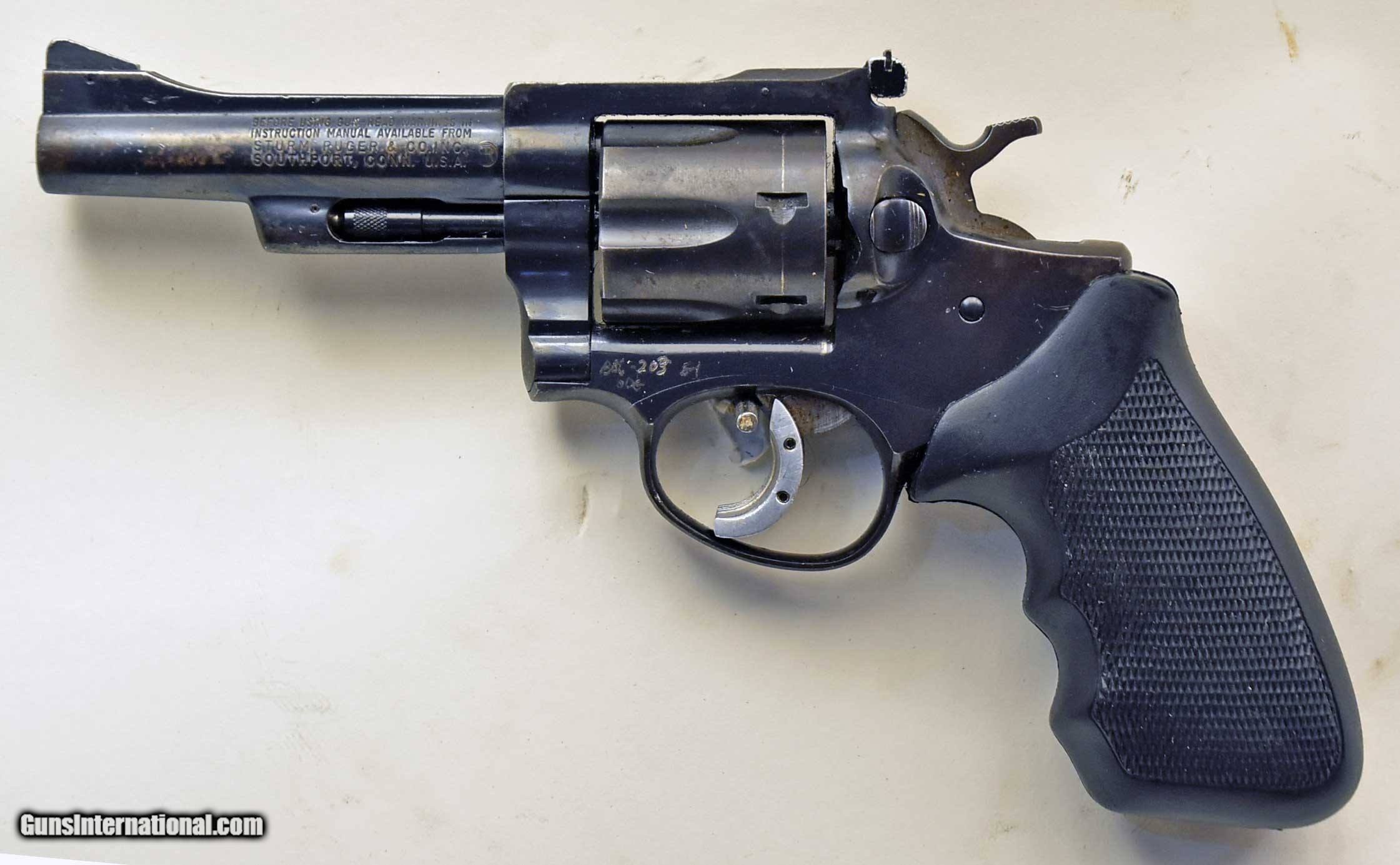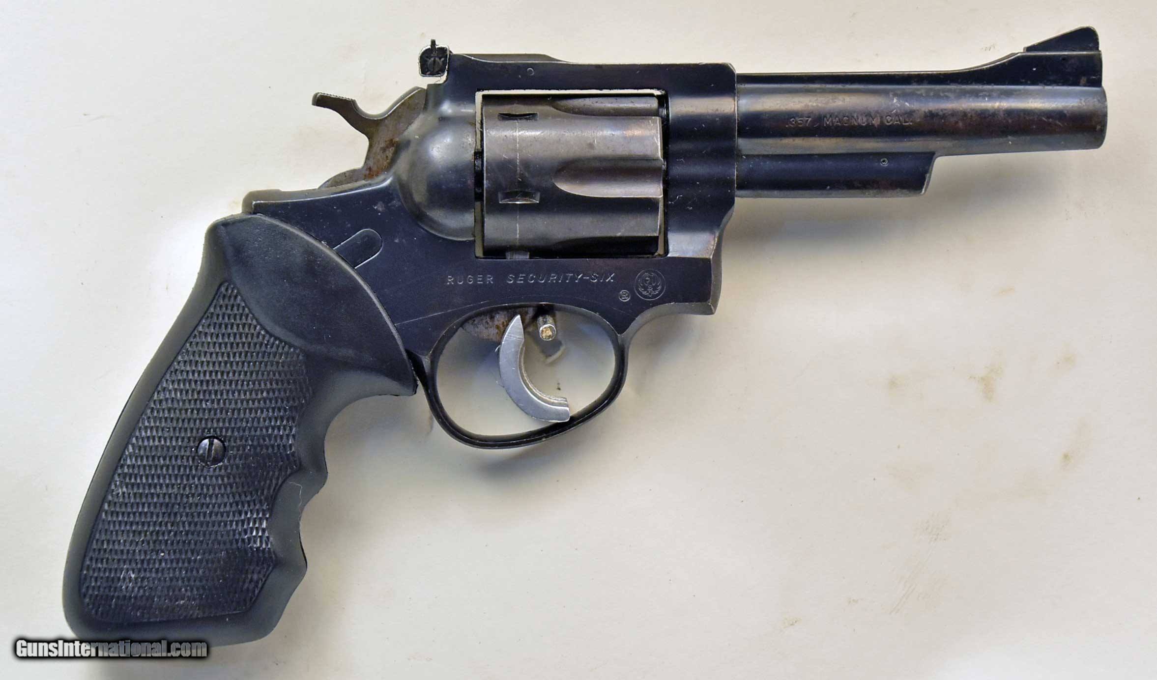 Description: Ruger Security Six. Serial # 154-76258 {357 mag}. NOS rubber grips in new condition. Metal finish 72%condition with a some tarnish on trigger and hammer. Has trigger shoe. Cylinder gap = 0.007". Timing is OK. Bore has VG to VG+ lands, grooves shine. SOLD |