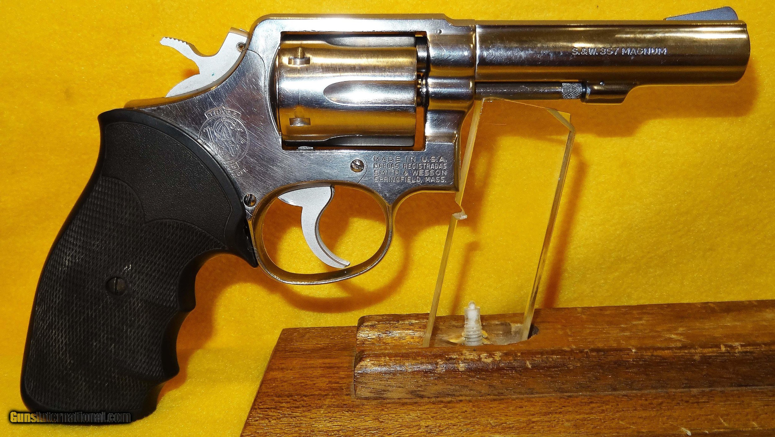 Description: S&W 65-2 IN .357 MAGNUM CAL., WITH 4" BARREL. COLOR STAINLESS STEEL. CONDITION 95%. SERIAL NUMBER 1D72699. S&W MODEL 65-2 (PRE KEY LOCK), MIRROR BORE, FINGER GROOVE RUBBER GRIPS EXCELLENT, FINE STORAGE MARKS ON BARREL AND FRAME, 95% OVERALL CONDITION, OUR STOCK # D707. SOLD |