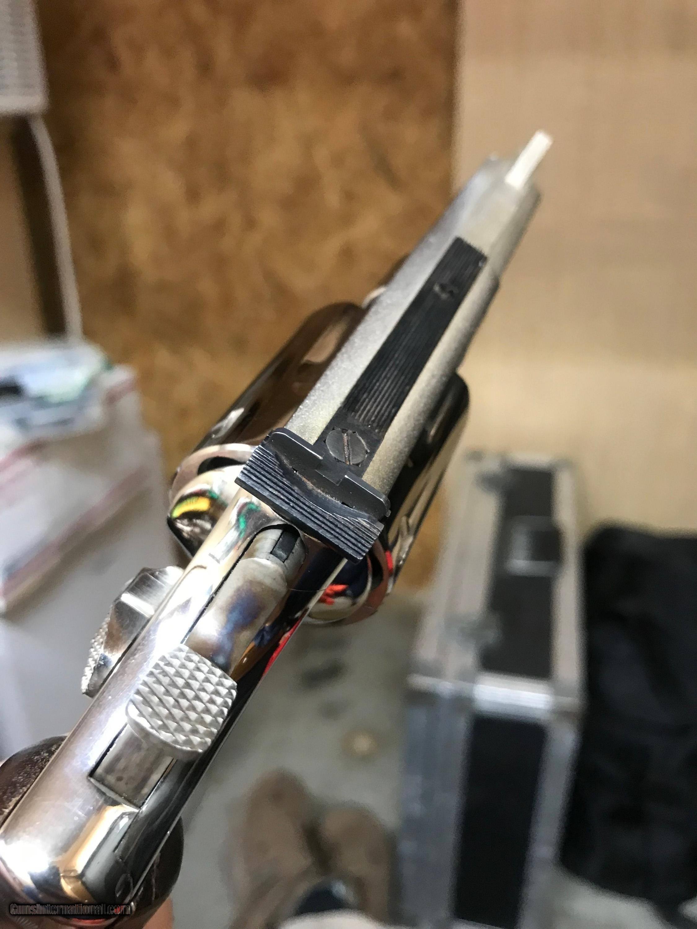 Description: Another gorgeous pinned and recessed 19! And in nickel!! 2 1/2 barrel, case colored trigger and hammer. Has an older set of "diamond" round butt magna grips on it (an upgrade from the originals!). NO BOX. Please email with questions. Shipping included. Cards add 3% SOLD Manufacturer: Smith and Wesson Model: 19-3 Barrel Length: 2.5 inch Condition: Used Metal Condition: Excellent Wood Condition: Excellent Bore Condition: Excellent Action: Double Finish: Nickel Sights: Target Item Location: 37075 |
