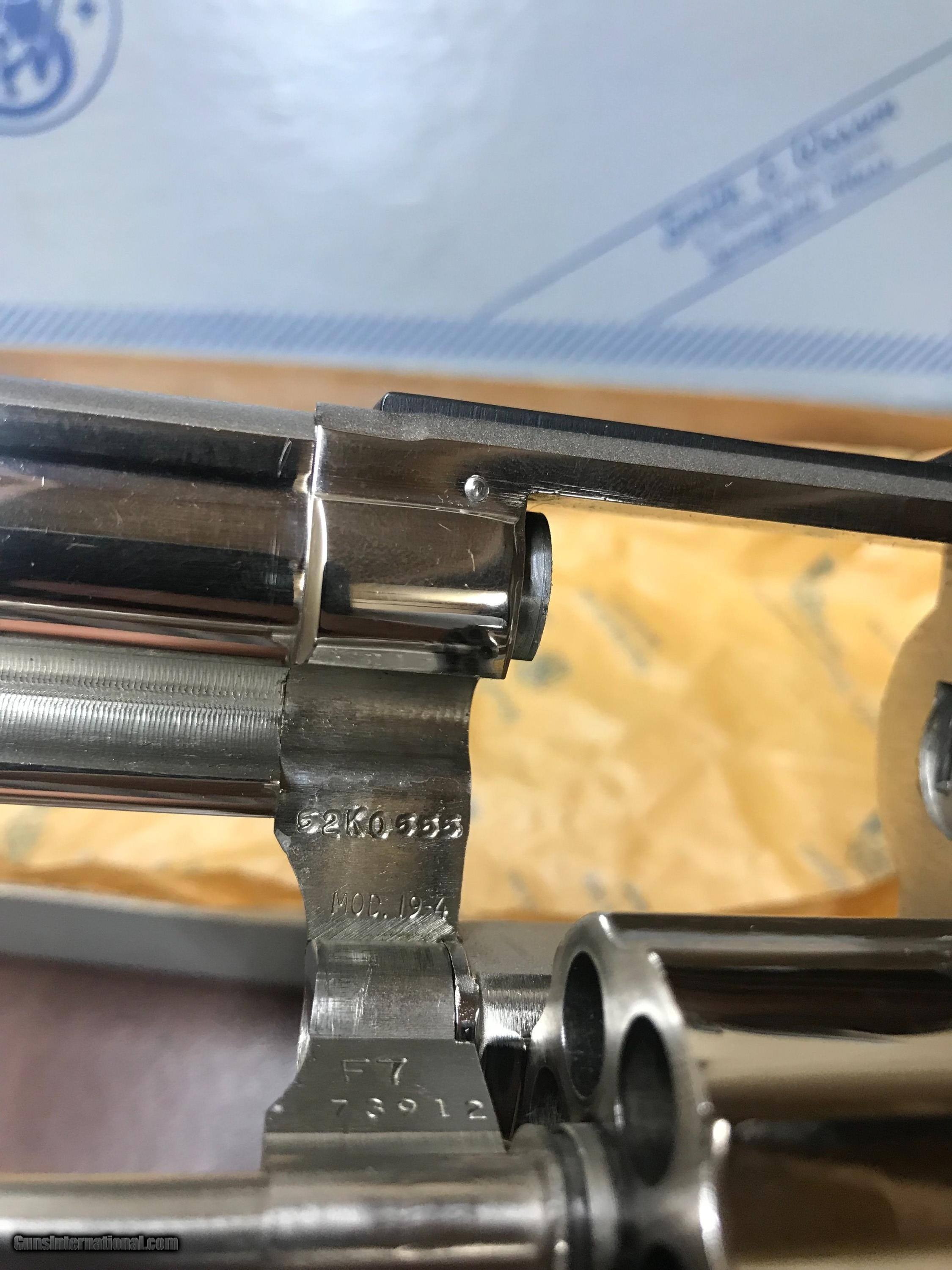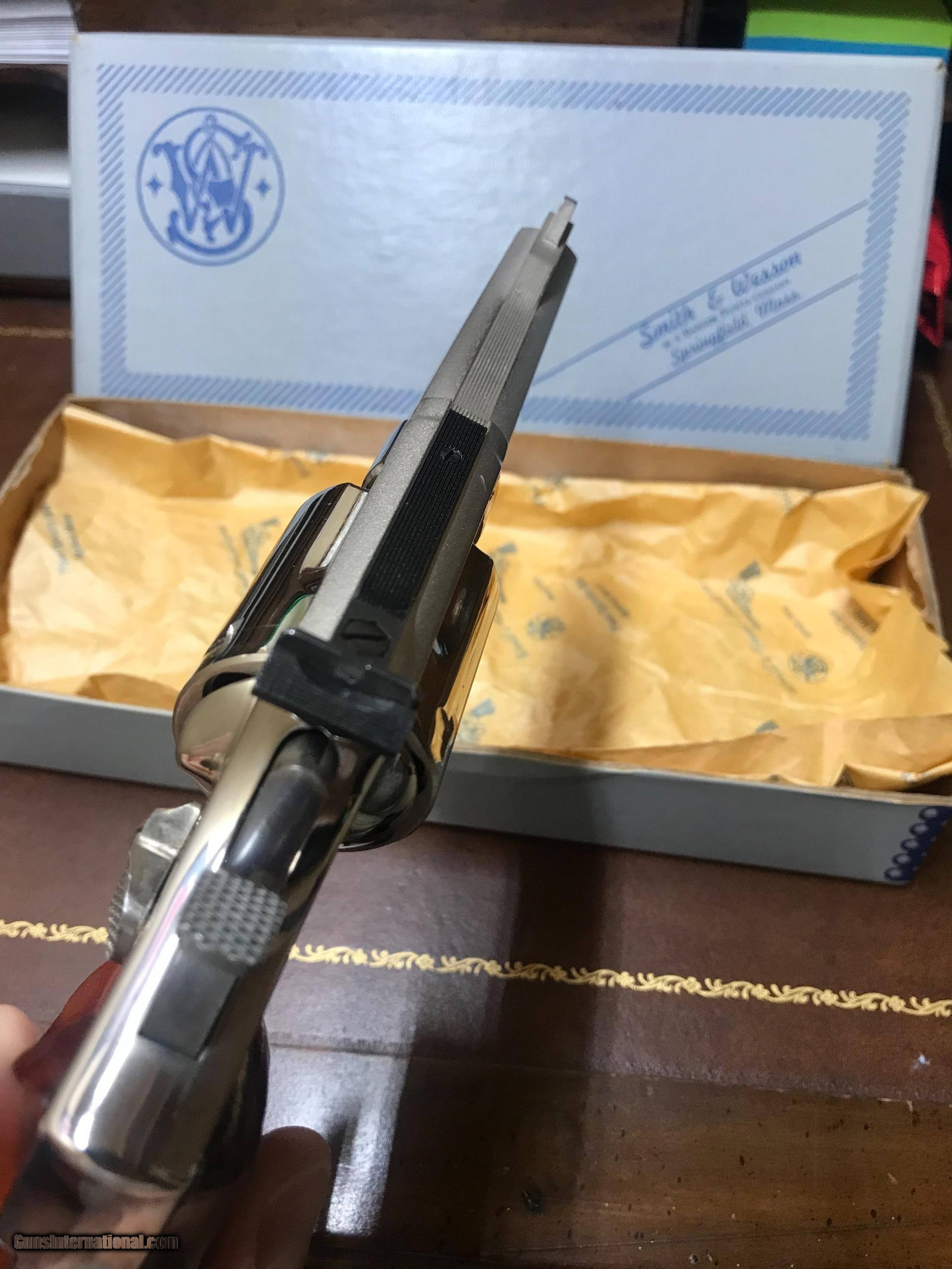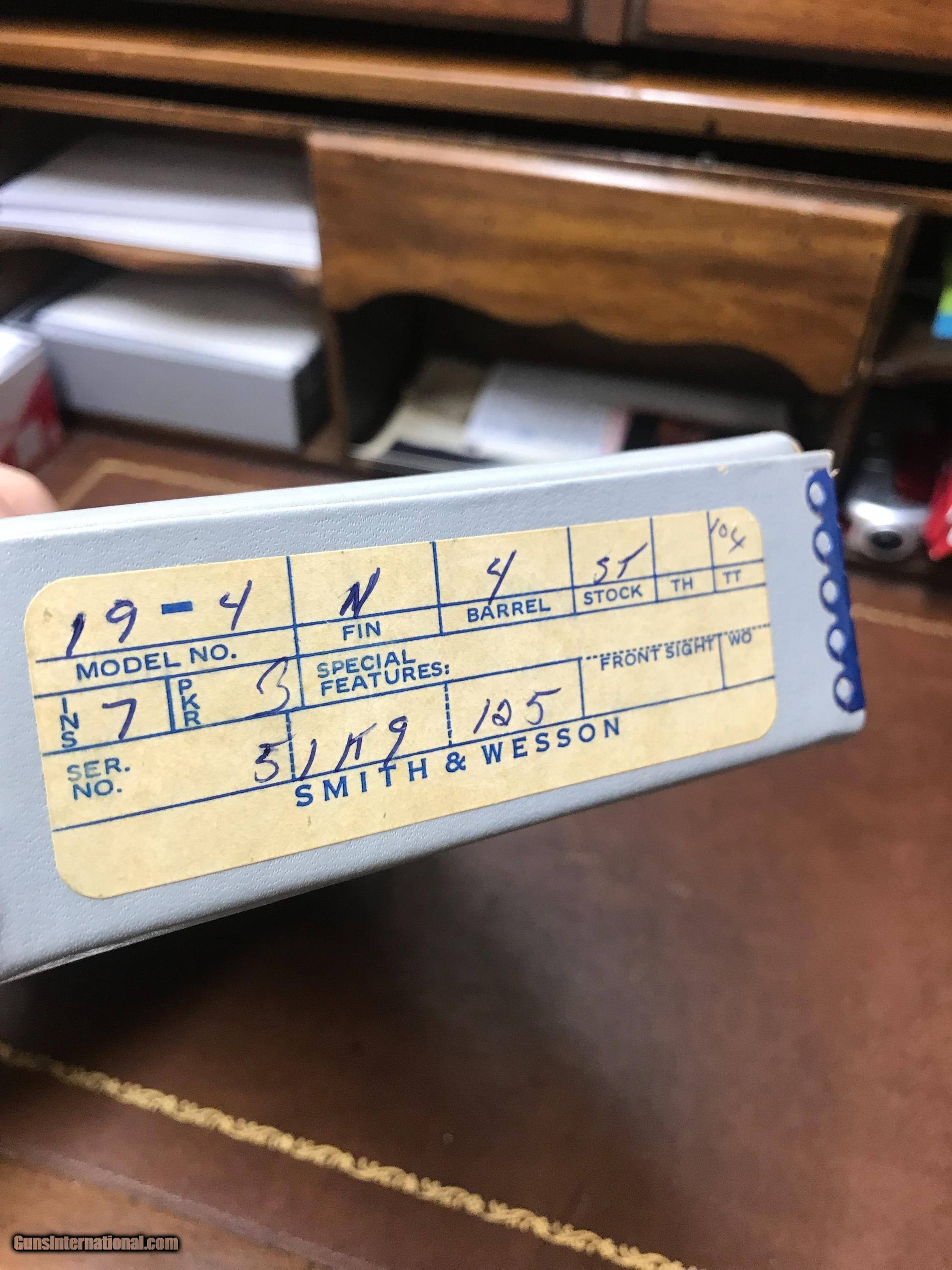 Description: Whew! What a beautiful piece. This 19 is in nickel finish, has a 4 inch pinned barrel, recessed cylinder, adjustable sights, and target grips. Comes with a period correct silver box with some paper. Hard to find in this condition! Please email with questions. Shipping included. Cards add 3% SOLD Manufacturer: Smith and Wesson Model: 19-4 Barrel Length: 4 in Condition: Used Metal Condition: Excellent Wood Condition: Excellent Bore Condition: Excellent Action: Double Finish: Nickel Sights: Adjustable Item Location: 37075 |