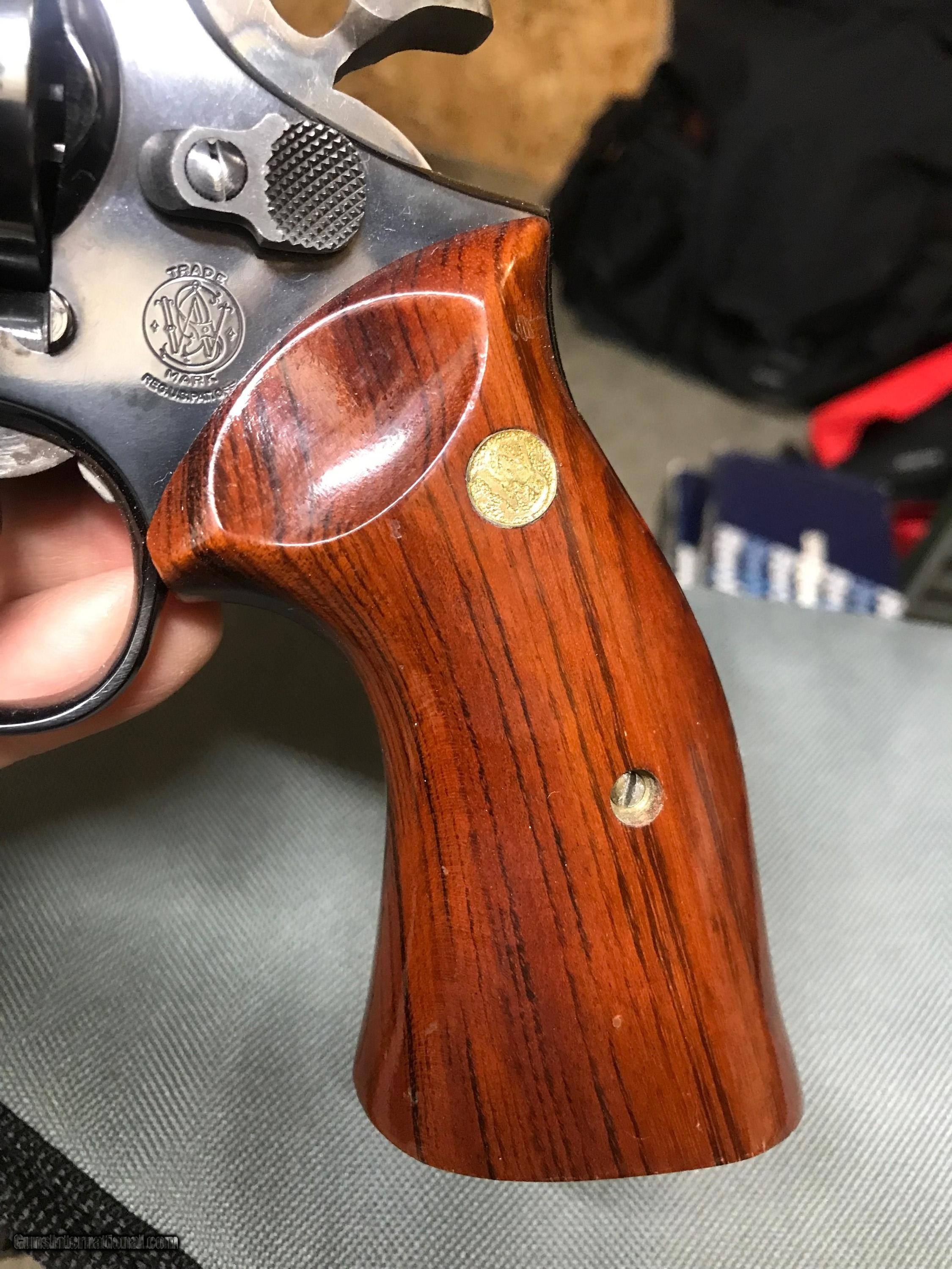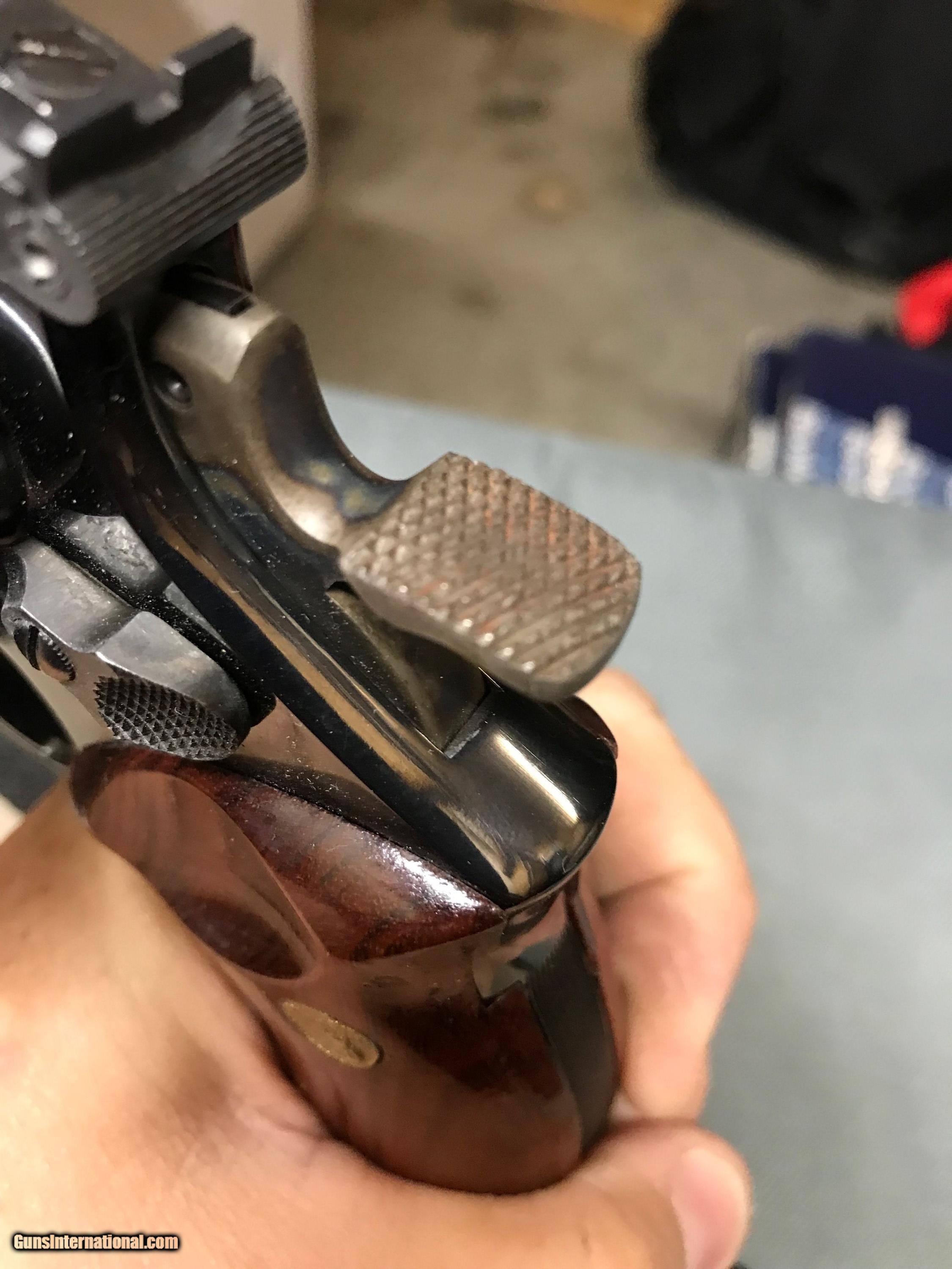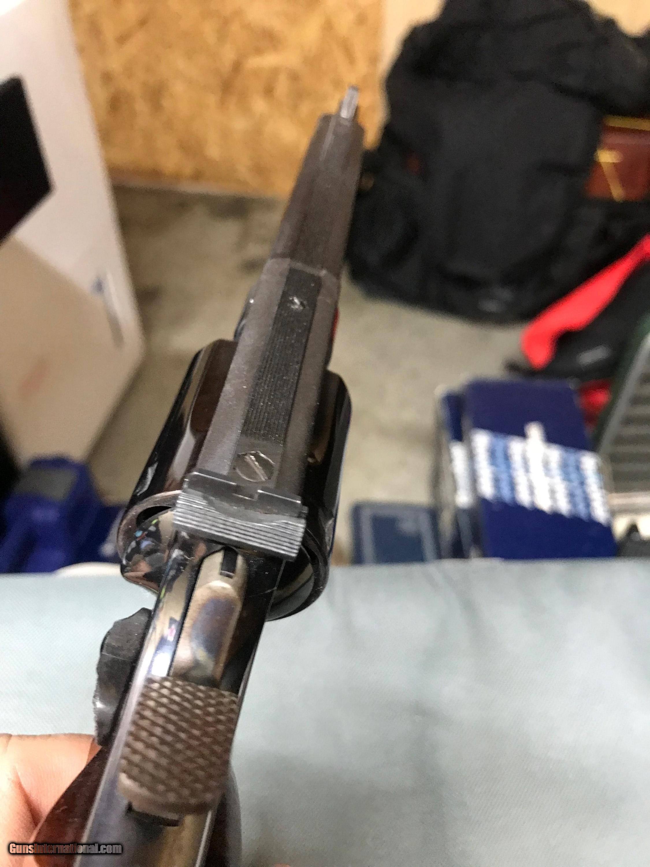 Description: What a beautiful 19! This 357 magnum features blue finish, target hammer, trigger, sights, and smooth target grips! Pinned barrel and recessed cylinder. NO BOX! Please email with questions. Shipping included. Cards add 3% SOLD Manufacturer: Smith and Wesson Model: 19-4 Barrel Length: 4 inch Condition: Used Metal Condition: Excellent Wood Condition: Excellent Bore Condition: Excellent Action: Double Finish: Blue Sights: Target Item Location: 37075 |