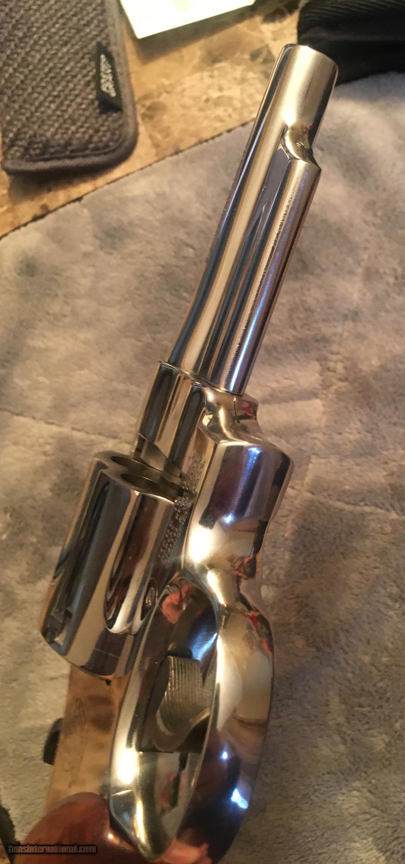 Description: I think the 27 is one of the most beautiful handguns ever made. This gun features pinned barrel and recessed cylinder, 4 inch barrel, target sights, hammer, trigger, and grips, and a gorgeous nickel finish. I would rate the gun 95%+ for it's age. These are very hard to find in this condition. A great addition to your collection or an excellent shooter. Please email with questions. Price includes shipping. SOLD Manufacturer: Smith and Wesson Model: 27-2 Caliber Info: .357 Magnum Condition: used Metal Condition: excellent Wood Condition: excellent Bore Condition: excellent Finish: nickel Sights: target Item Location: 37075 |