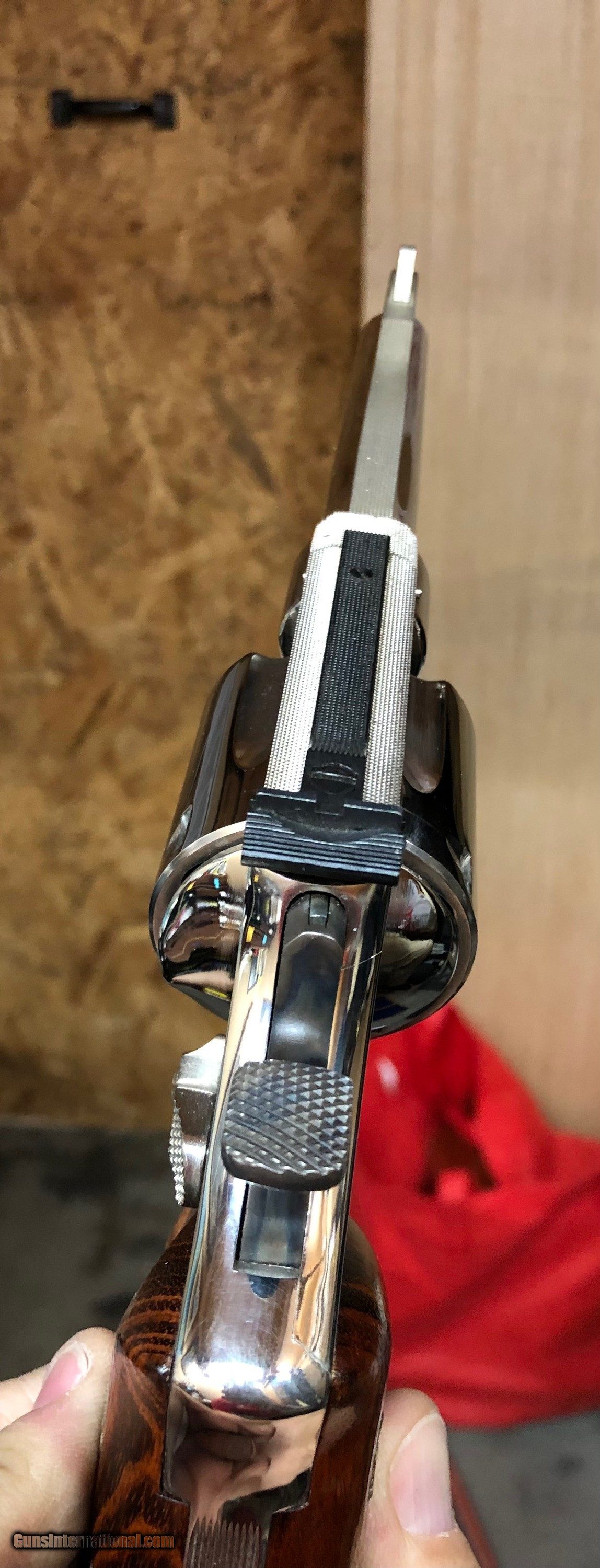 Description: SOLD TO JOHN M) Rarely do I become speechless when I see a gun. This one left me speechless! Rare 5 inch barrel, nickel finish, beautiful grips, full target, wood presentation box, tools, and papers. It's as slick as any I've seen. Please email with questions. Shipping included (west coast add $75). Cards add 3% SOLD Manufacturer: Smith and Wesson Model: 27-2 Barrel Length: 5 inch Condition: Used Metal Condition: Excellent Wood Condition: Excellent Bore Condition: Excellent Action: Da, sa Rib: Solid Finish: Nickel Sights: Target Case: Yes Item Location: 37075 |