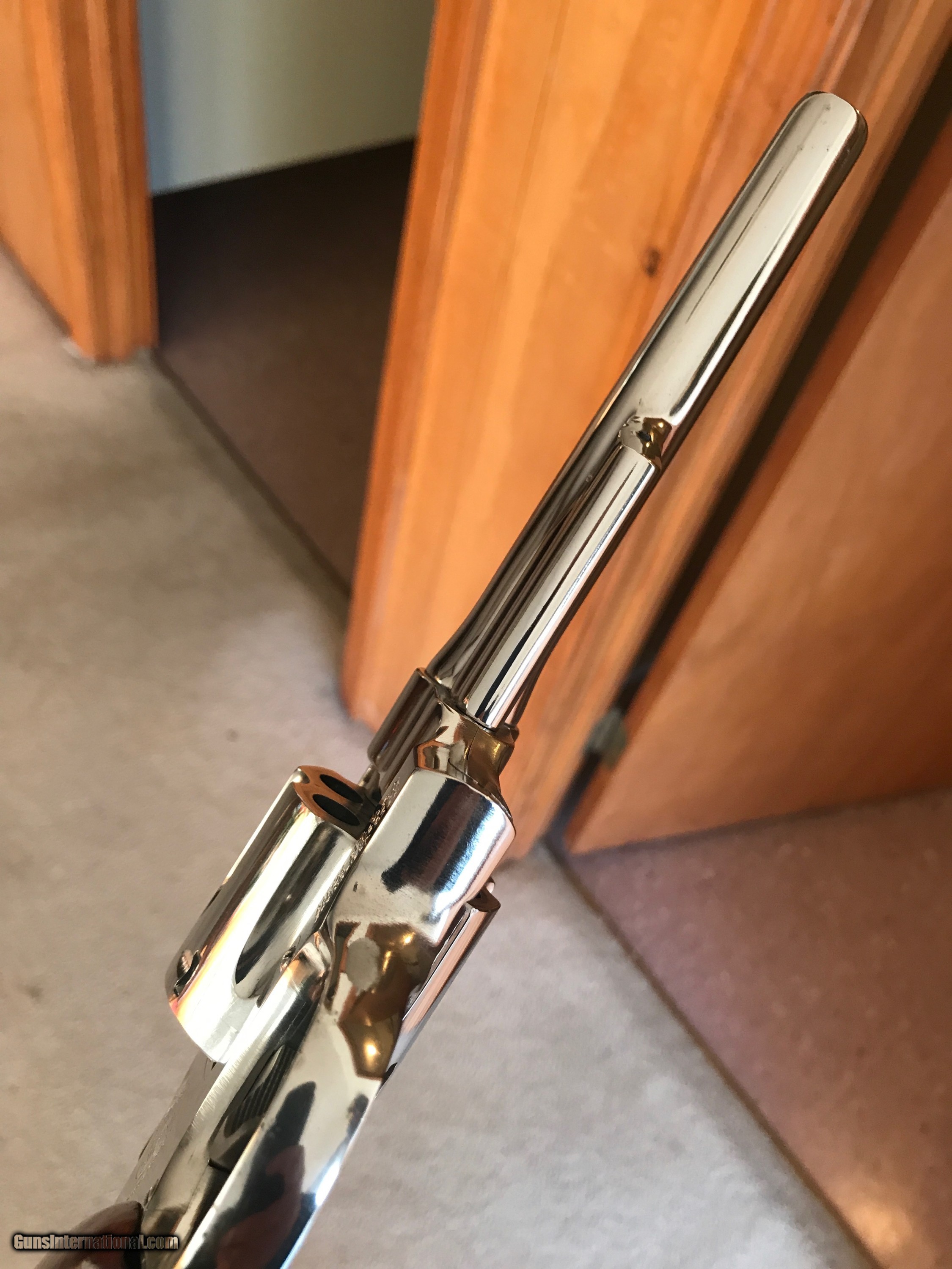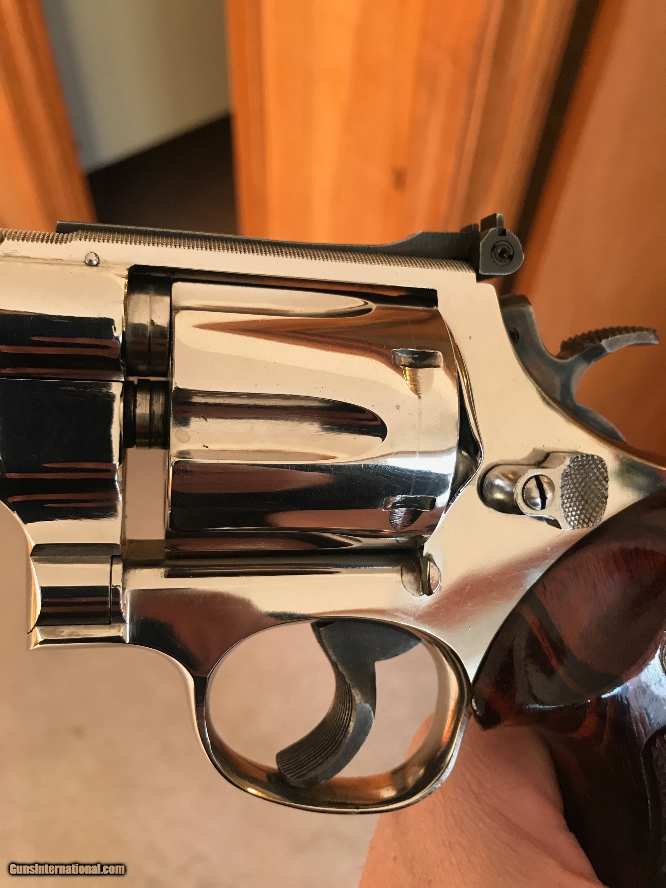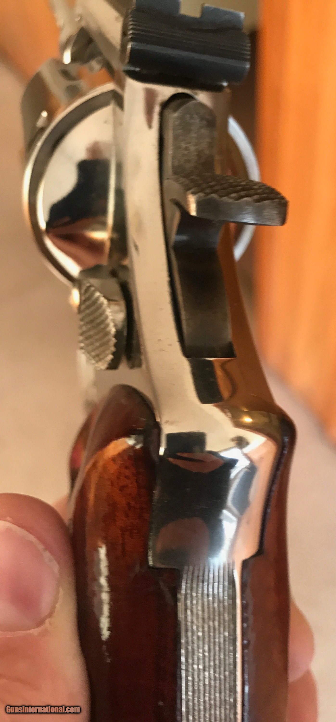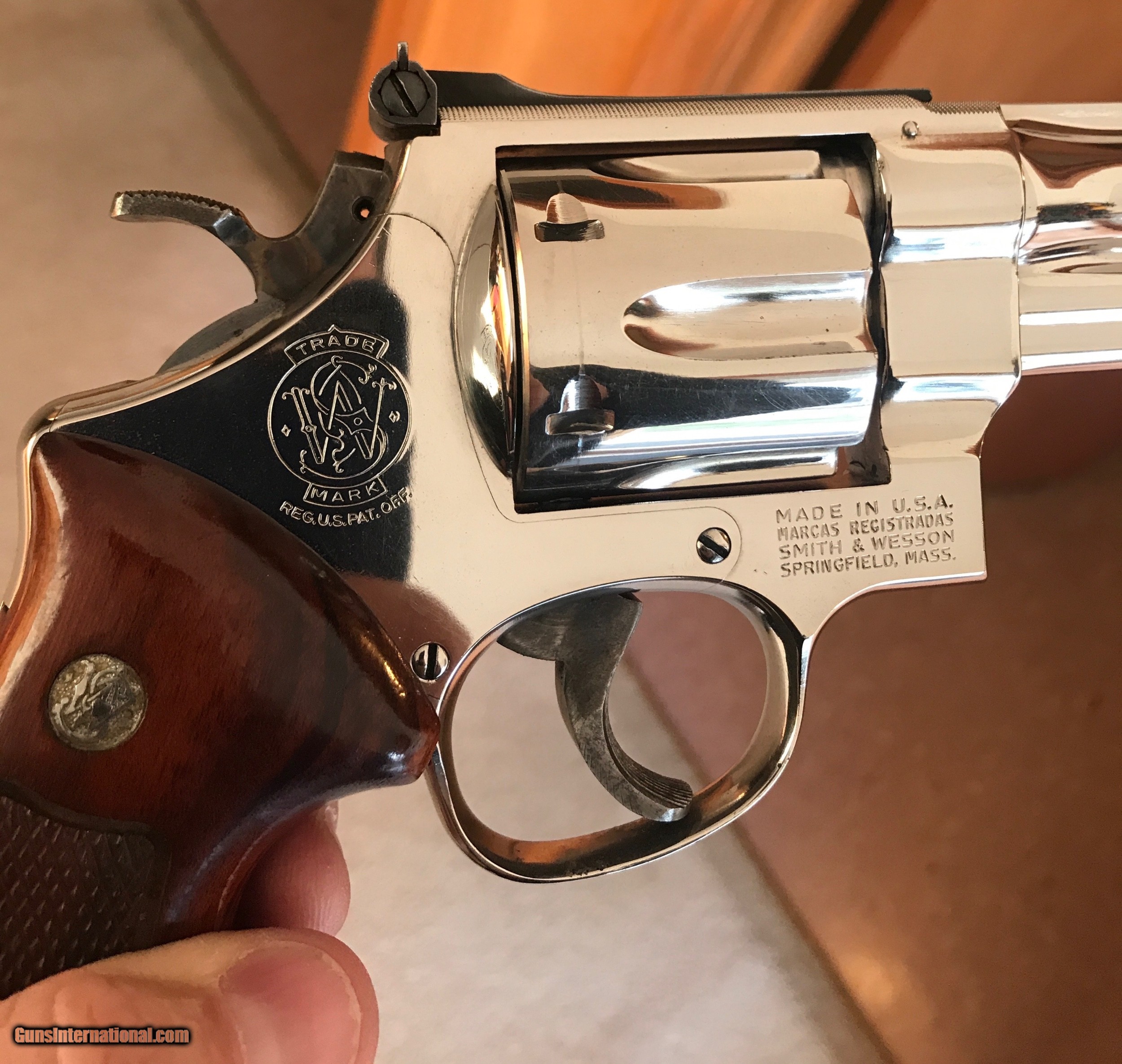Description: Super nice 27-2. Pinned and recessed. 6 inch barrel, target sights, hammer, trigger, nickel finish, and wood grips. Gun looks amazing although there are tiny spots of nickel loss (see photos). Overall, a beautiful and fully functional 27. Email for more pics or info. Shipping inlcuded SOLD Manufacturer: Smith and Wesson Model: 27-2 Caliber Info: .357 magnum Condition: used Metal Condition: very good Wood Condition: excellent Bore Condition: excellent Finish: nickel Sights: target Item Location: 37075 |