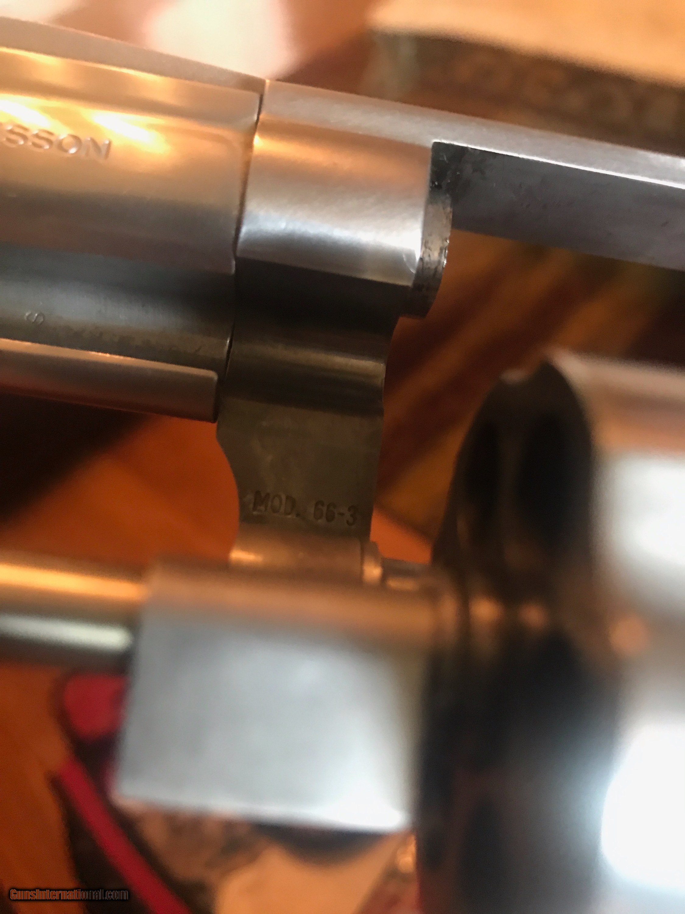 Smith and Wesson 66-3 (3 inch, stainless, smooth combat stocks)