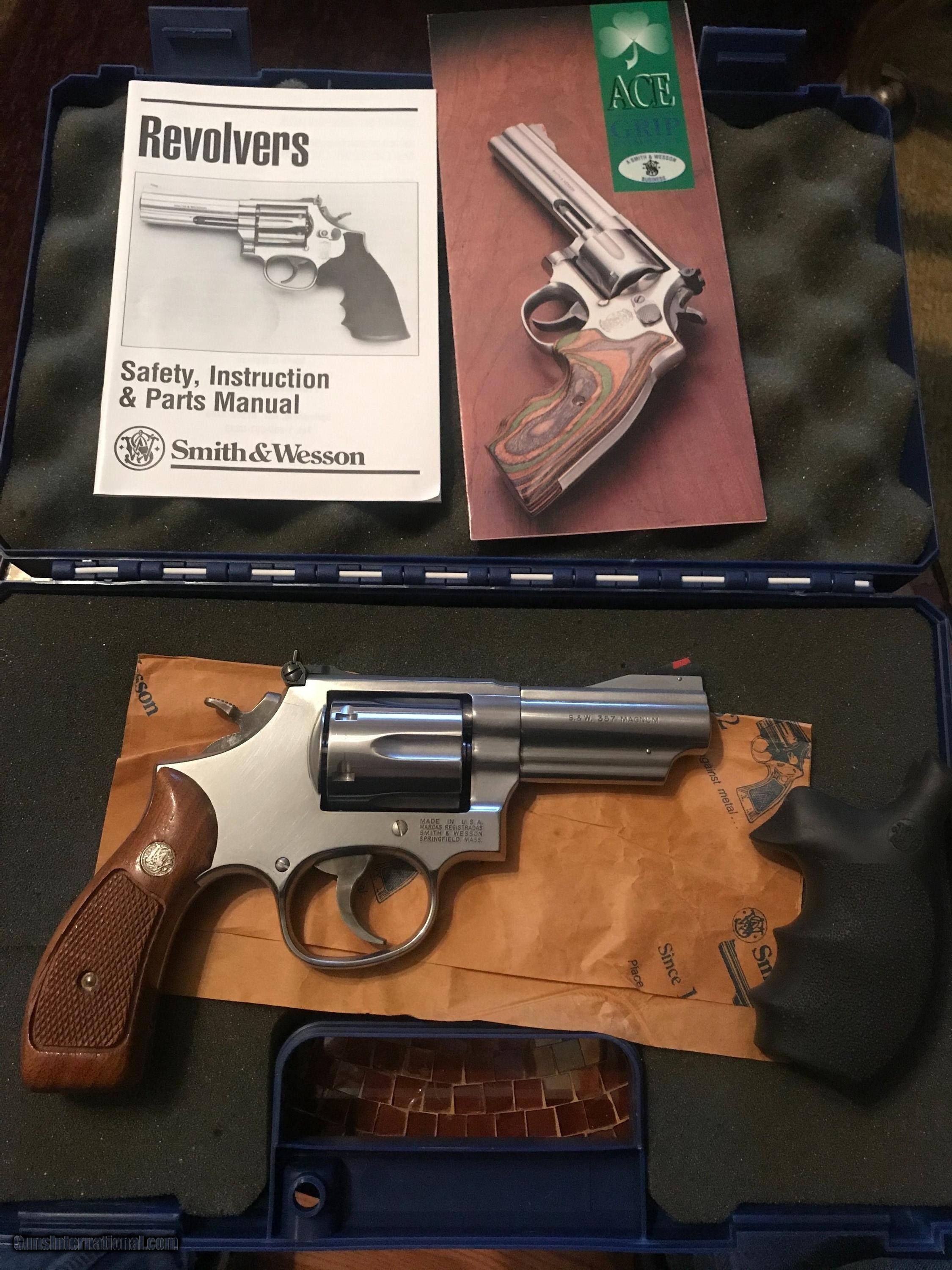 Description: It's always a treat to own a 3 inch 66! This is a "dash 5." Stainless finish, 357 magnum, original grips, and a nice set of round butt k frame included as well. "Hi vis" target sights. Gun has been shot but not much. Beautiful piece with original box and some paper. Please email with questions. Shipping included. Cards add 3% SOLD Manufacturer: Smith and Wesson Model: 66-5 Barrel Length: 3.25 inch Condition: Used Metal Condition: Excellent Wood Condition: Excellent Bore Condition: Excellent Action: Double Finish: Stainless Sights: Hi vis target Item Location: 37075 |