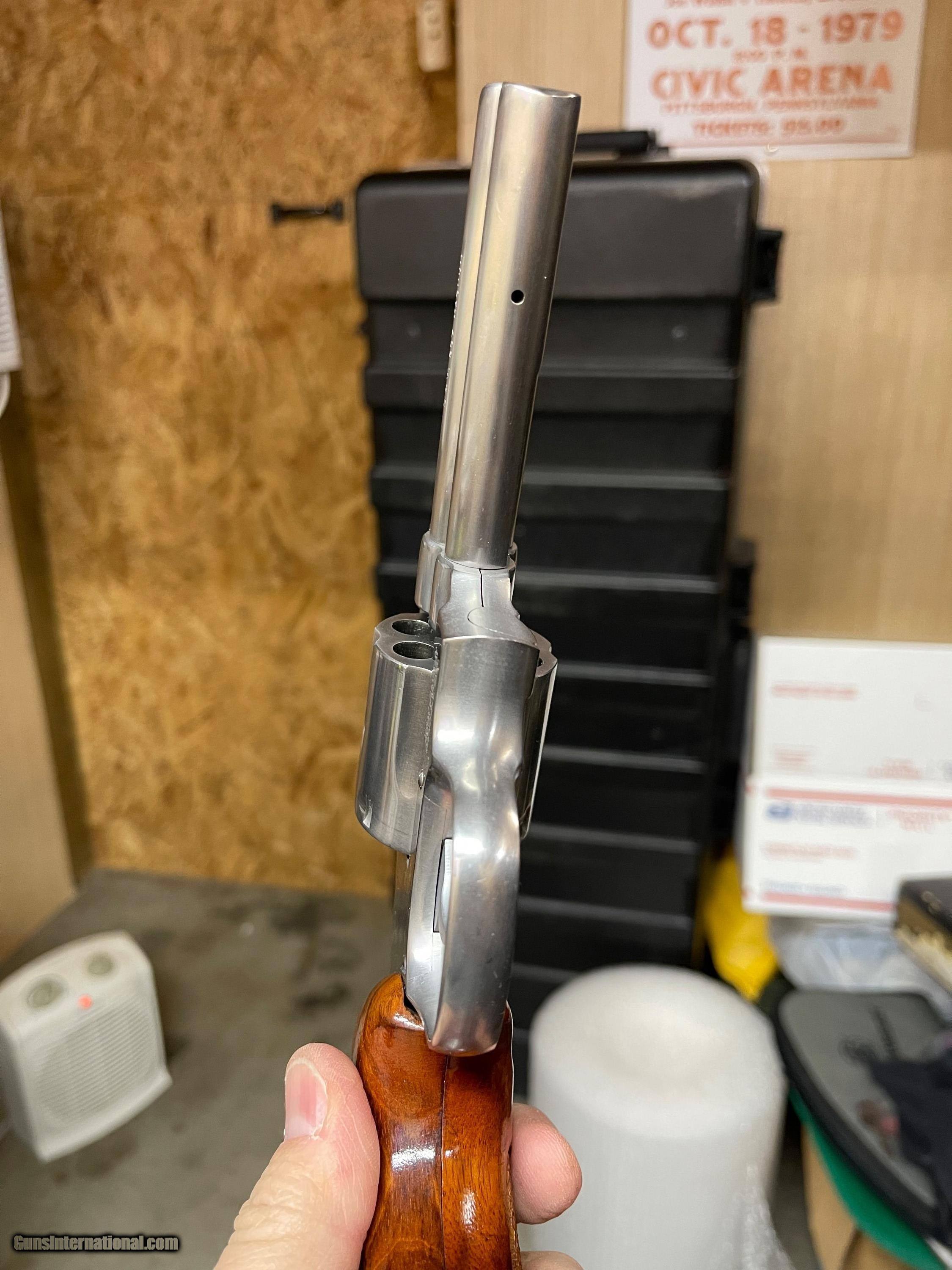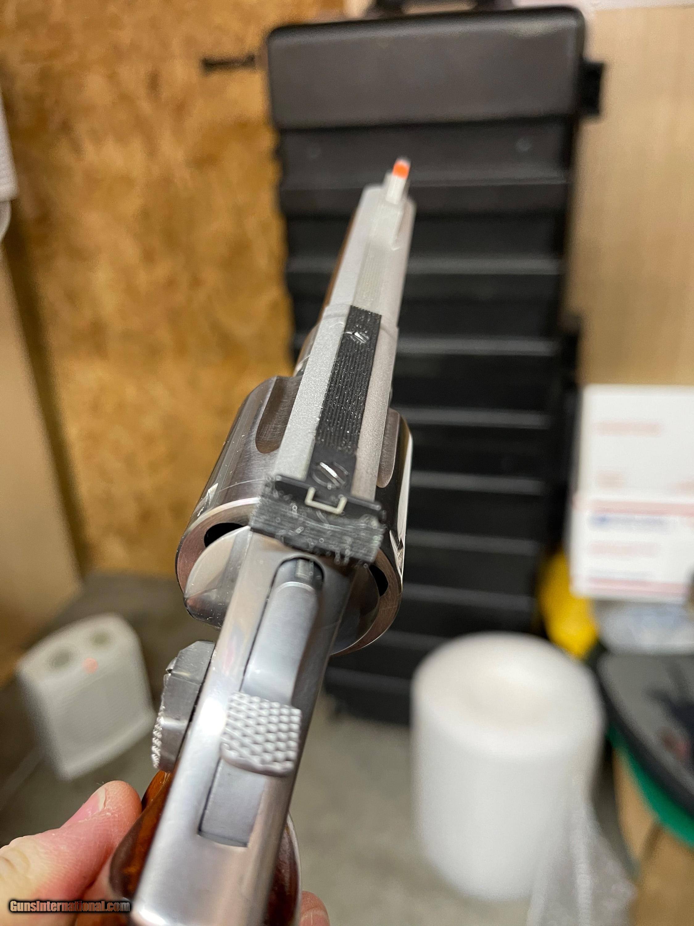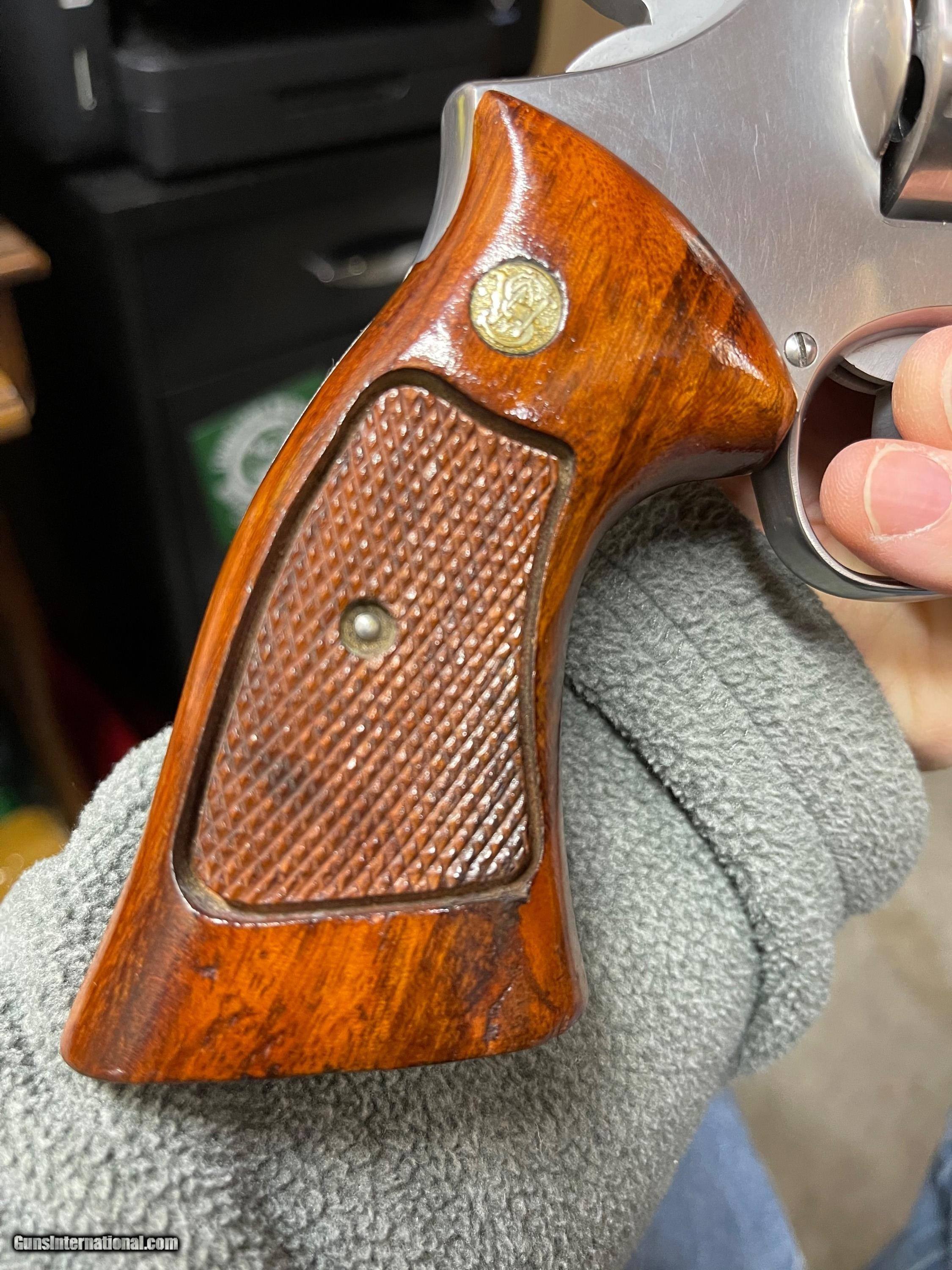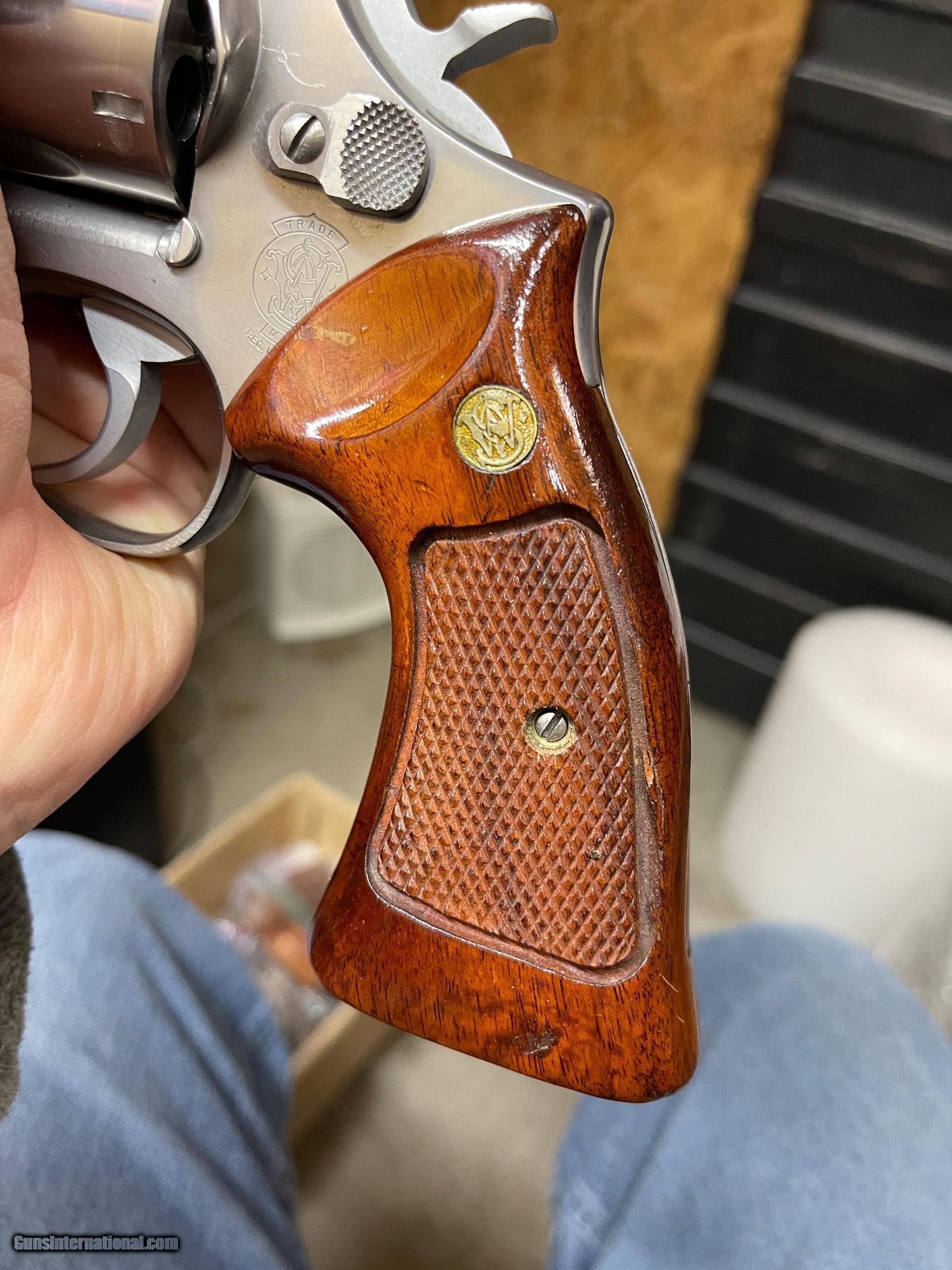 Description: Another fine 4 inch 686. This no dash gun features white outline rear sight and red ramp front sight, stainless finish, and wood target grips. Many of these no dash guns were sent back to the factory for a flaw early in the release of the gun. Thus, the infamous m stamping in the yoke. This one has not been modified. No box. Please email with questions. Shipping included (west coast add $75). Venmo and cash app accepted. SOLD Manufacturer: Smith and Wesson Model: 686 Barrel Length: 4 inch Condition: Used Metal Condition: Excellent Wood Condition: Very good Bore Condition: Excellent Action: Sa, da Finish: Stainless Sights: Target Item Location: 37075 |