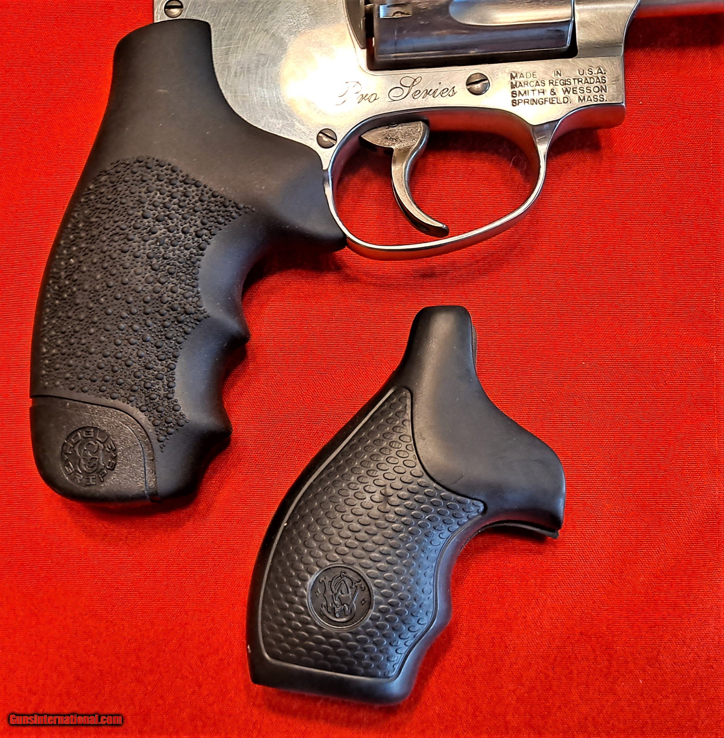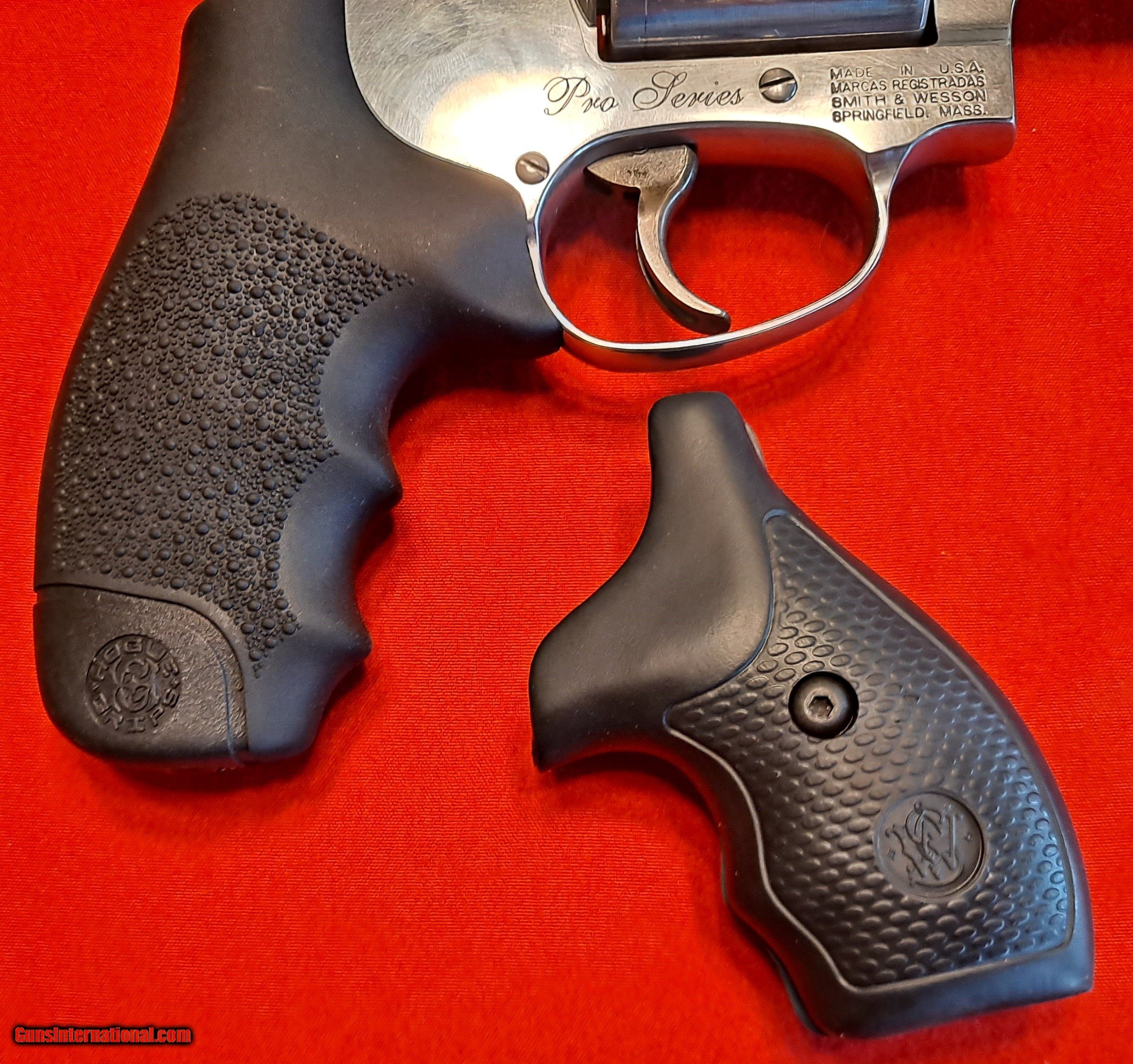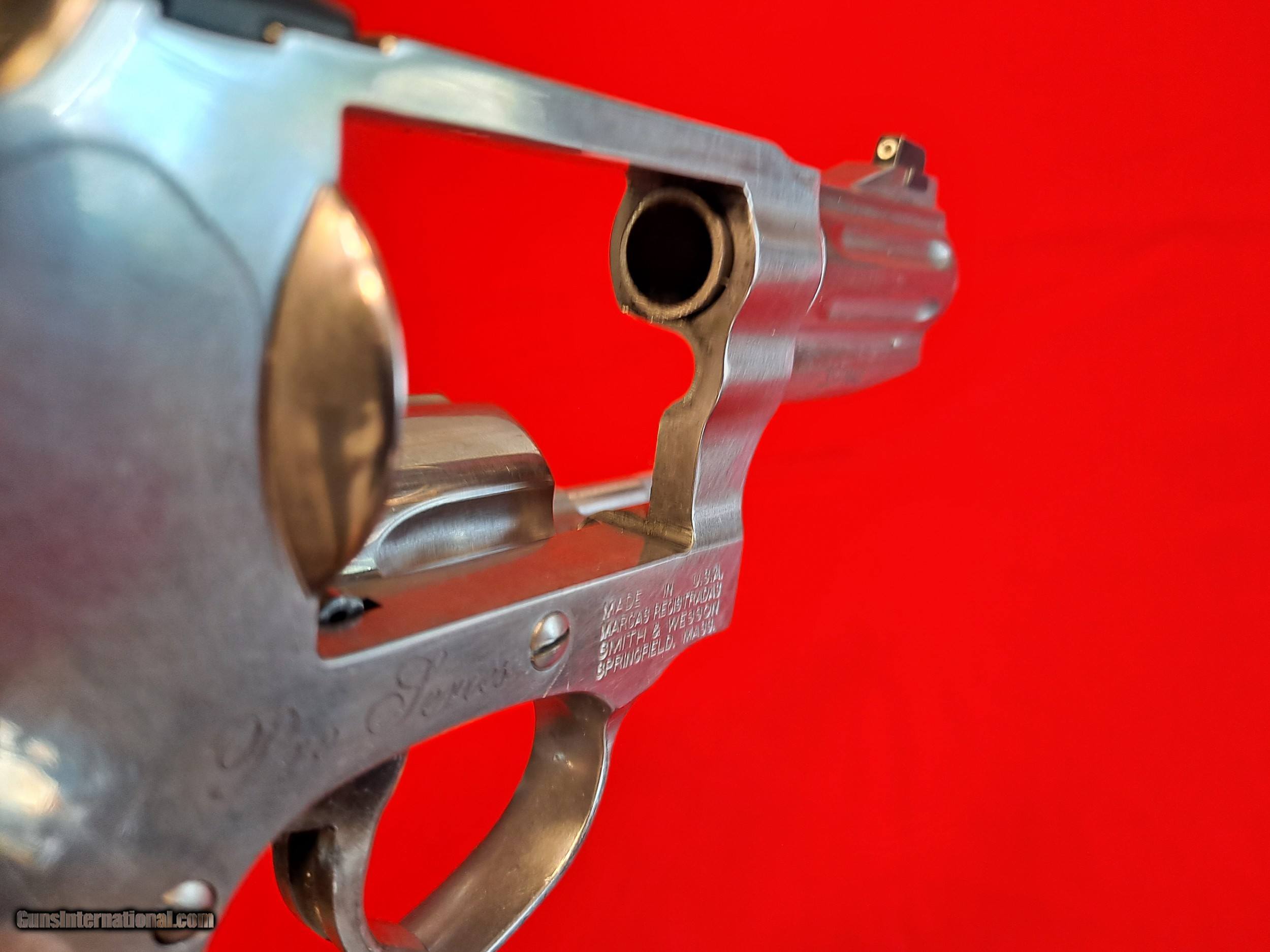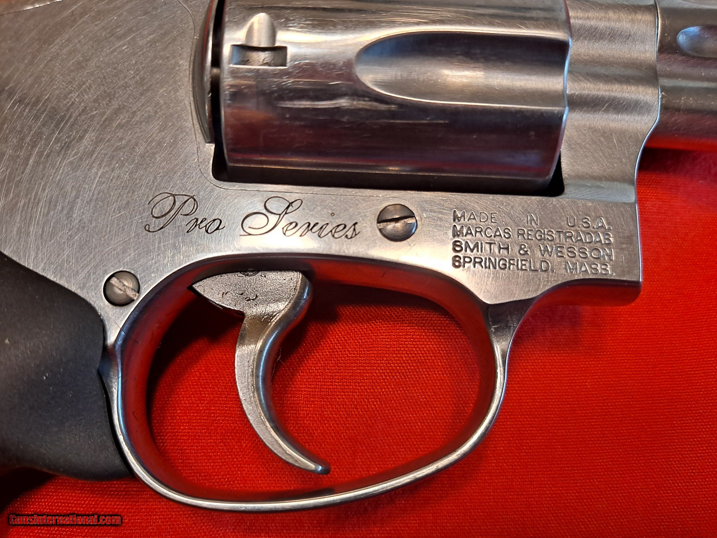 Description: This beauty comes with a few extras to start it has a Kydex holster, houge after market grips as well as the original grips, speed loaders and origin box and paperwork. Open to Offers In 1995, Smith & Wesson introduced the Model 640, the first J frame revolver chambered in the powerful .357 Magnum round. Based on Model 40 Centennial, the Model 640 is a small frame concealed hammer revolver that packs a full-sized punch. The Model 640 Pro Series integrates the time-tested features of the original with modern advancements and competition specifications and features. • Stainless steel frame, barrel, and cylinder • Front and Rear Dovetail Tritium Night Sight • Concealed hammer • Cylinder cut for moon clips (Moon Clips Included) • Rated for Continuous +P Use A moon clip is a ring-shaped or star-shaped piece of metal designed to hold multiple cartridges together as a unit for simultaneous insertion and extraction from a revolver cylinder SOLD Handgun Caliber: .357 Magnum Manufacturer: Smith & Wesson Model: 640 pro series |