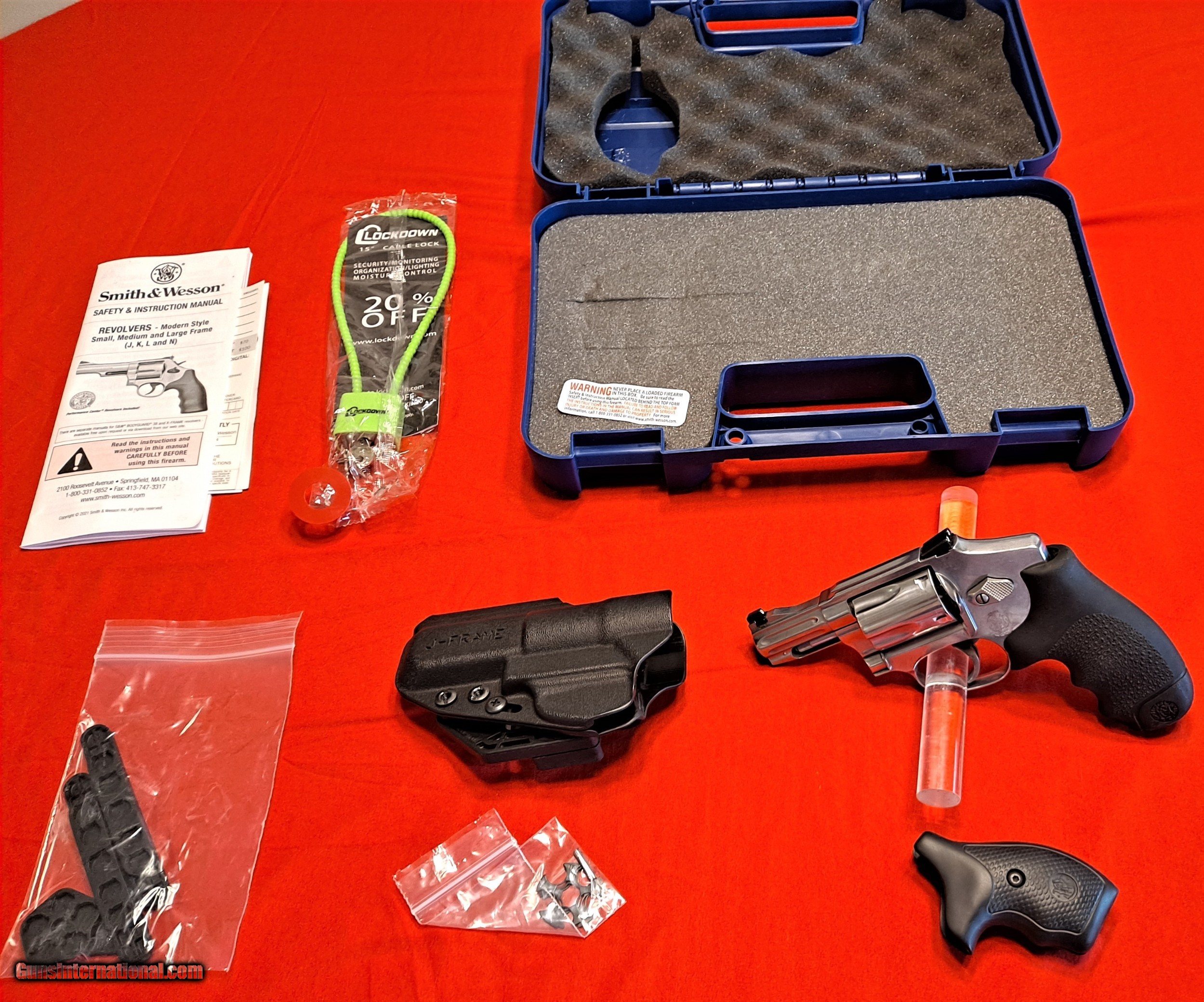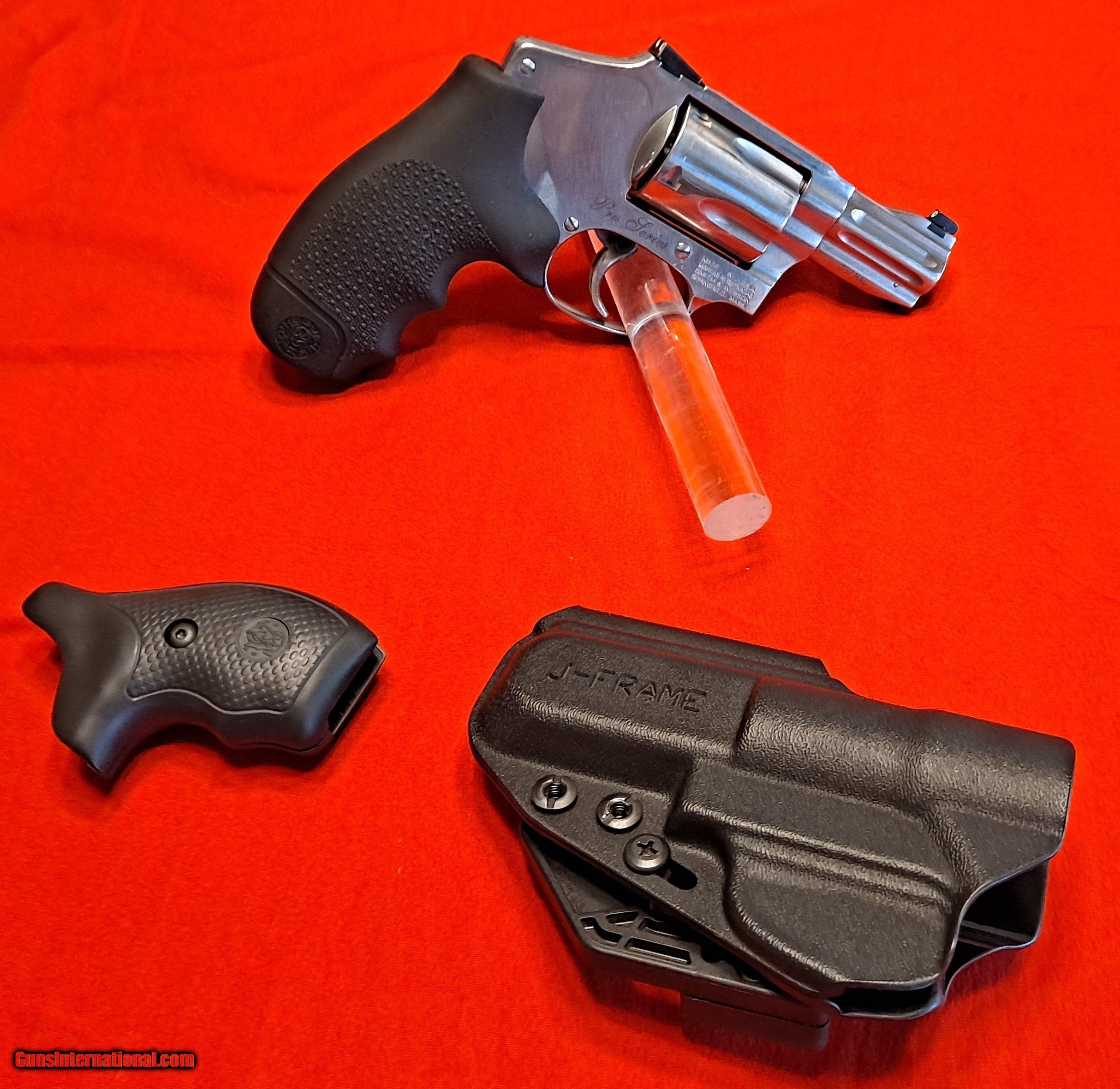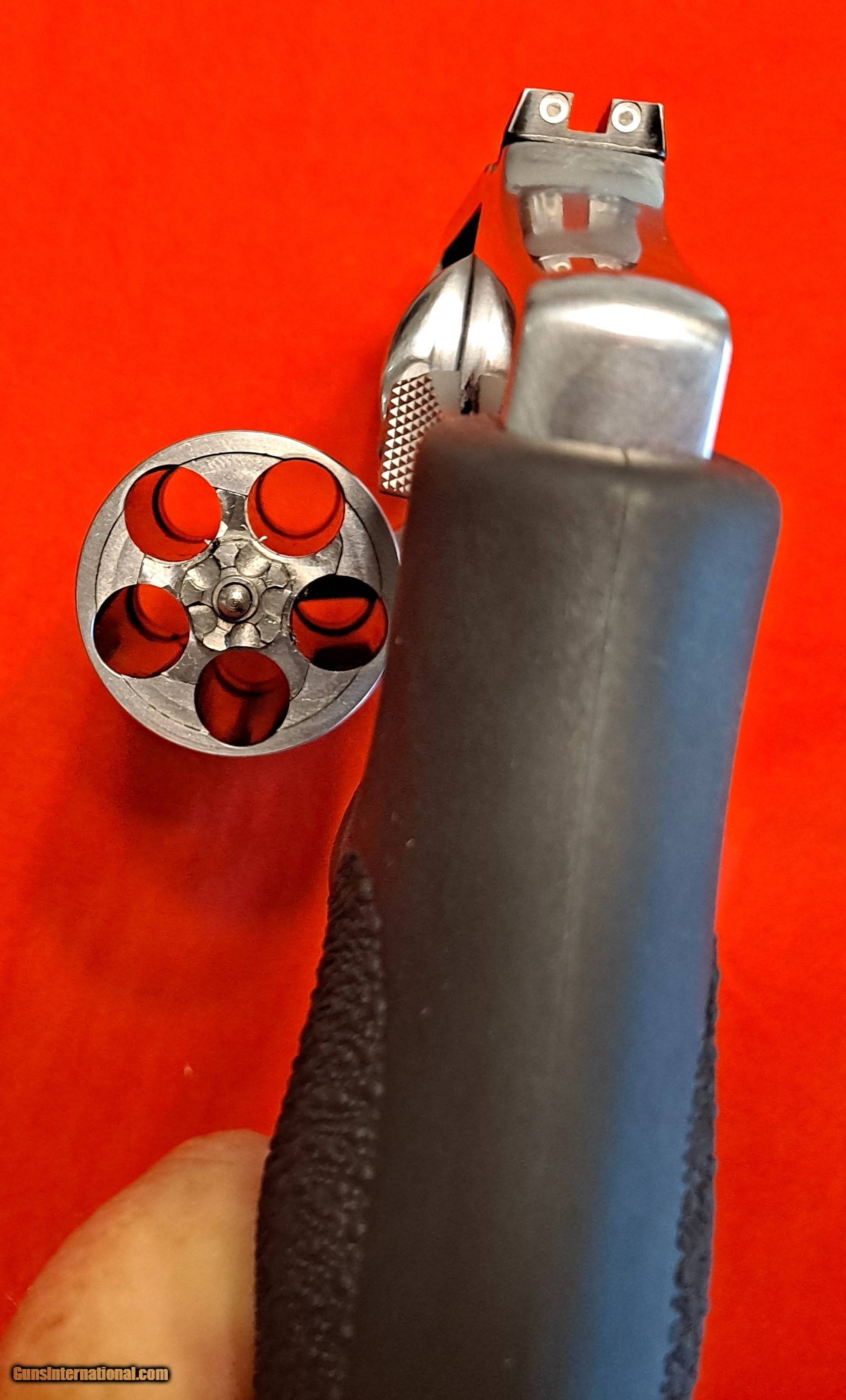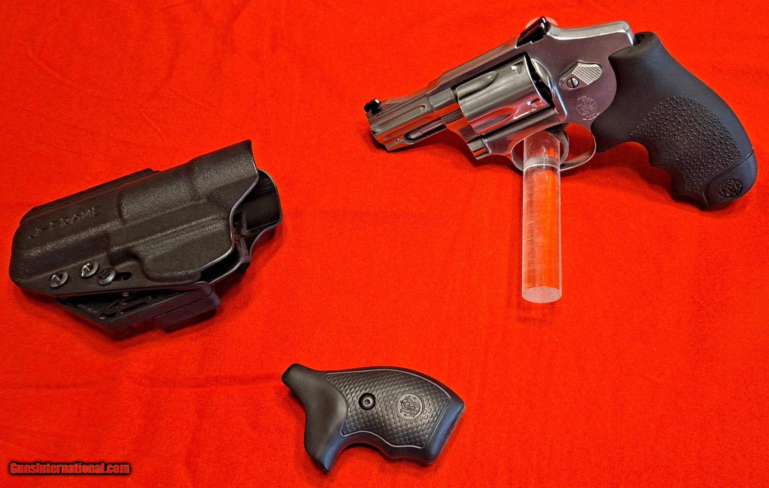 Description: This beauty comes with a few extras to start it has a Kydex holster, houge after market grips as well as the original grips, speed loaders and origin box and paperwork. Open to Offers In 1995, Smith & Wesson introduced the Model 640, the first J frame revolver chambered in the powerful .357 Magnum round. Based on Model 40 Centennial, the Model 640 is a small frame concealed hammer revolver that packs a full-sized punch. The Model 640 Pro Series integrates the time-tested features of the original with modern advancements and competition specifications and features. • Stainless steel frame, barrel, and cylinder • Front and Rear Dovetail Tritium Night Sight • Concealed hammer • Cylinder cut for moon clips (Moon Clips Included) • Rated for Continuous +P Use A moon clip is a ring-shaped or star-shaped piece of metal designed to hold multiple cartridges together as a unit for simultaneous insertion and extraction from a revolver cylinder SOLD Handgun Caliber: .357 Magnum Manufacturer: Smith & Wesson Model: 640 pro series |