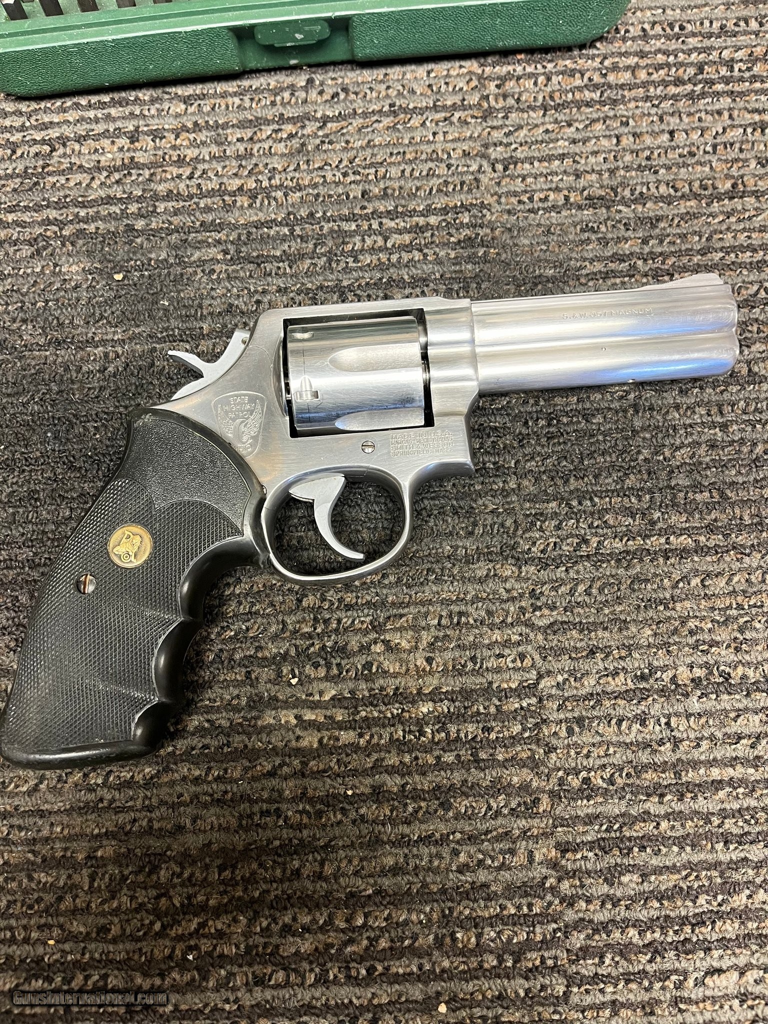 Description: Guns Listing ID: 587130 Smith & Wesson 681-1 357 magnum revolver. Ohio State Highway Patrol. 6 shot. 4" barrel. Fixed sites. Stainless steel Pachmyer grips. Nice piece ! Manufacturer: SMITH & WESSON Model: 681-1 Caliber Info: .357 MAG Condition: Used - Non-Certified Barrels: 4" BARREL Action: REVOLVER Finish: stainless Price: $750.99 Contact Seller |