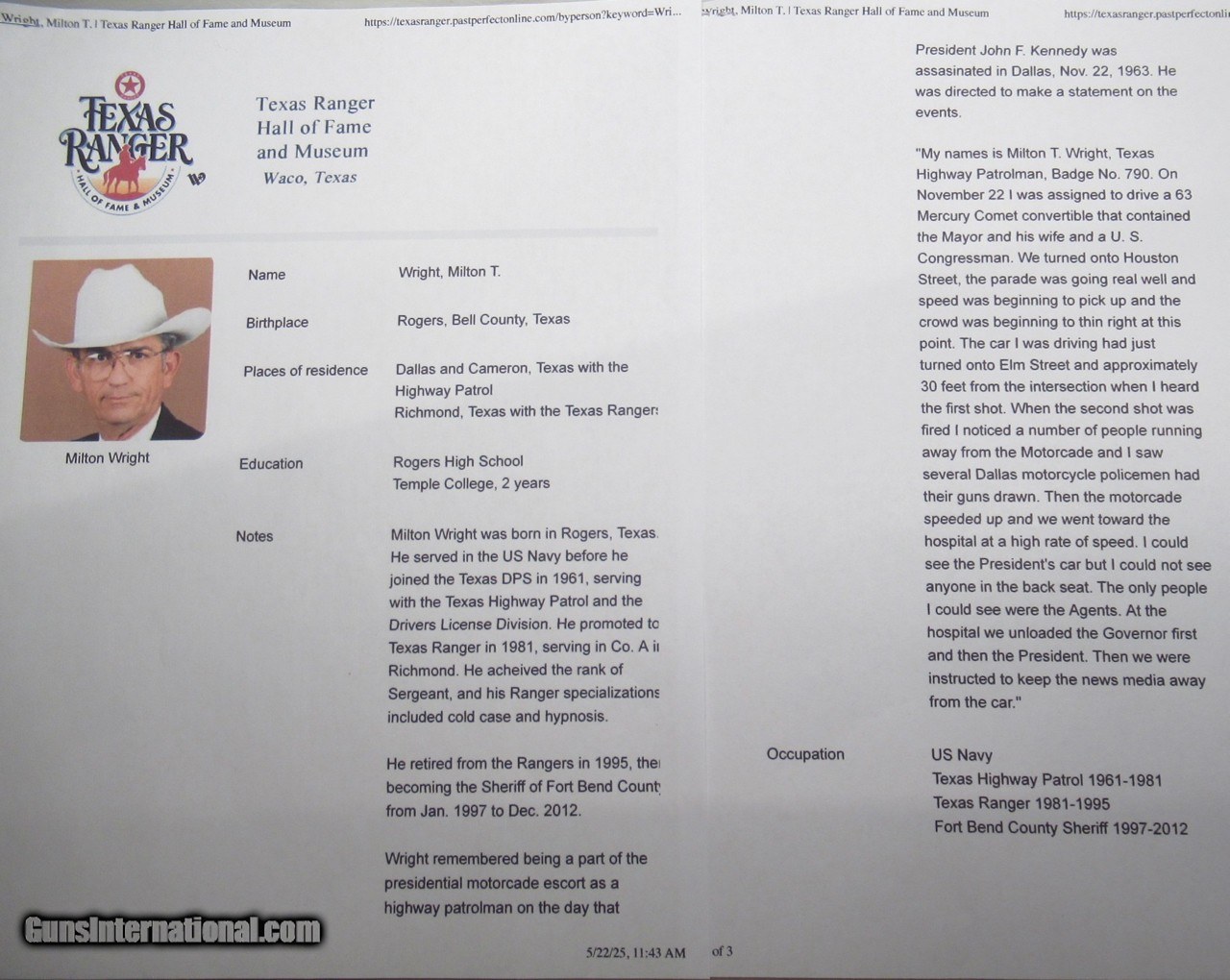 TX SHERIFF – J.F.K. HISTORY