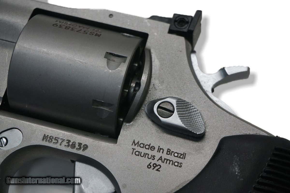 Description: Guns Listing ID: 615772 TAURUS TRACKER REVOLVER CHAMBERED IN .357 MAGNUM WITH 3\" BARREL, STAINLESS STEEL FRAME AND CYLINDER, 7-SHOT CAPACITY, DA/SA ACTION, ADJUSTABLE SIGHTS, FACTORY RUBBER GRIPS. VERY GOOD CONDITION WITH SOME SCRATCHING ON THE FRAME FROM NORMAL HANDLING. Manufacturer: TAURUS Model: 692 TRACKER Caliber Info: .357 MAG Condition: Used - Non-Certified Barrels: 3" BARREL Action: REVOLVER Finish: Stainless Price: $549.99 Contact Seller |