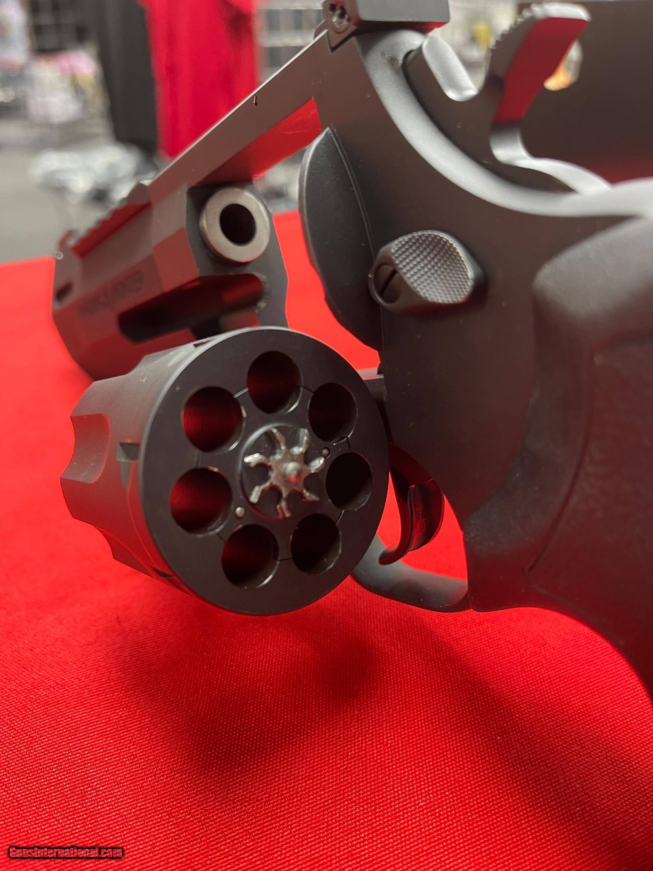 Description: Brand New Taurus Raging Hunter 7 shot 357MAG & 38 SPC +P Ported barrel Can also change out the barrels Winner of the 2019 American Hunter Handgun of the Year Golden Bullseye Award, the Taurus Raging Hunter is a next-generation, big-bore revolver that's first in innovation-and built to last. A fun and effective alternative for short- to medium-range hunting scenarios, this 357 Magnum, seven-shot revolver is available in Matte Black or Two Tone finish. Its revolutionary angular barrel design cuts down on overall weight, while its factory tuned porting and gas expansion chamber reduces muzzle lift for quicker target acquisition. Cushioned insert grips ensure a comfortable, controllable shooting experience. Please add $30 for shipping and insurance. Will ship to FFL of your choice. FL Residents must pay 6.5% sales tax. We accept Zelle, Venmo, Cashiers Checks, and credit cards. If you have more questions or want more pictures please ask. Guns 4 Less 239-321-5025 SOLD Handgun Caliber: .357 Magnum |