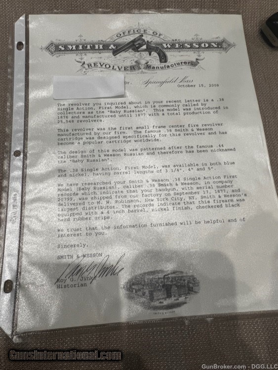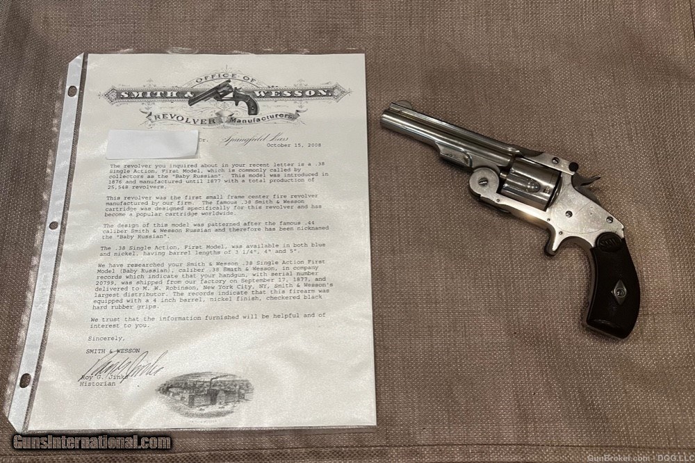 Description: 1877 Smith&Wesson First Model Baby Russian .38 All matching serial #s Beautiful condition Factory letter from S&W No box SOLD Manufacturer: Smith & Wesson Model: Baby Russian |