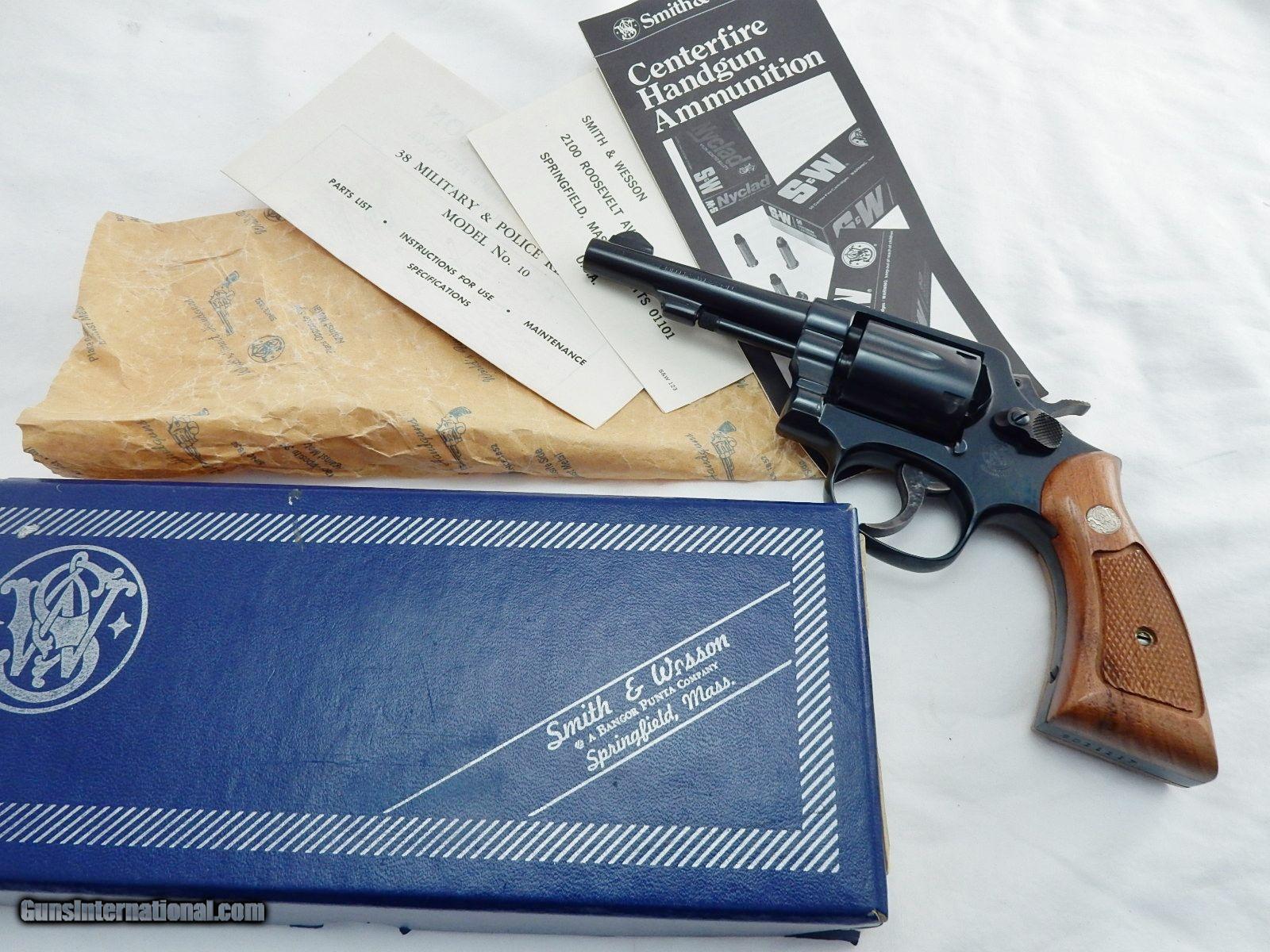 Description: This is a Smith Wesson 10-7 38 with a 4 inch barrel. This gun is 100% metal unfired and 96% grips due to a chip in them. Serial # is 9D11xxx. Buyer pays 25.00 shipping. Thank you. 41-11-13 SOLD |