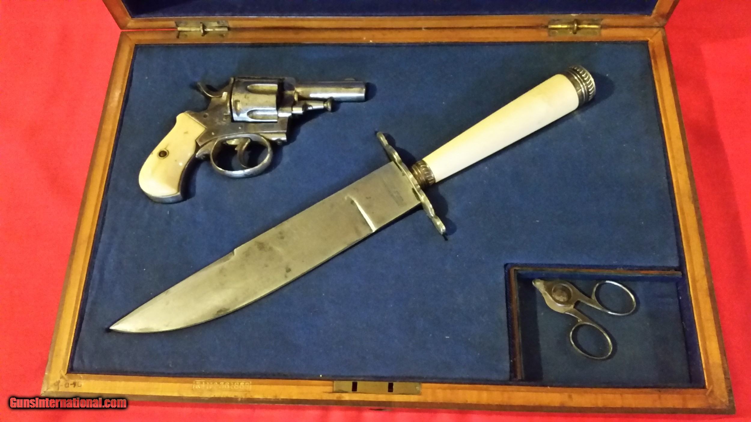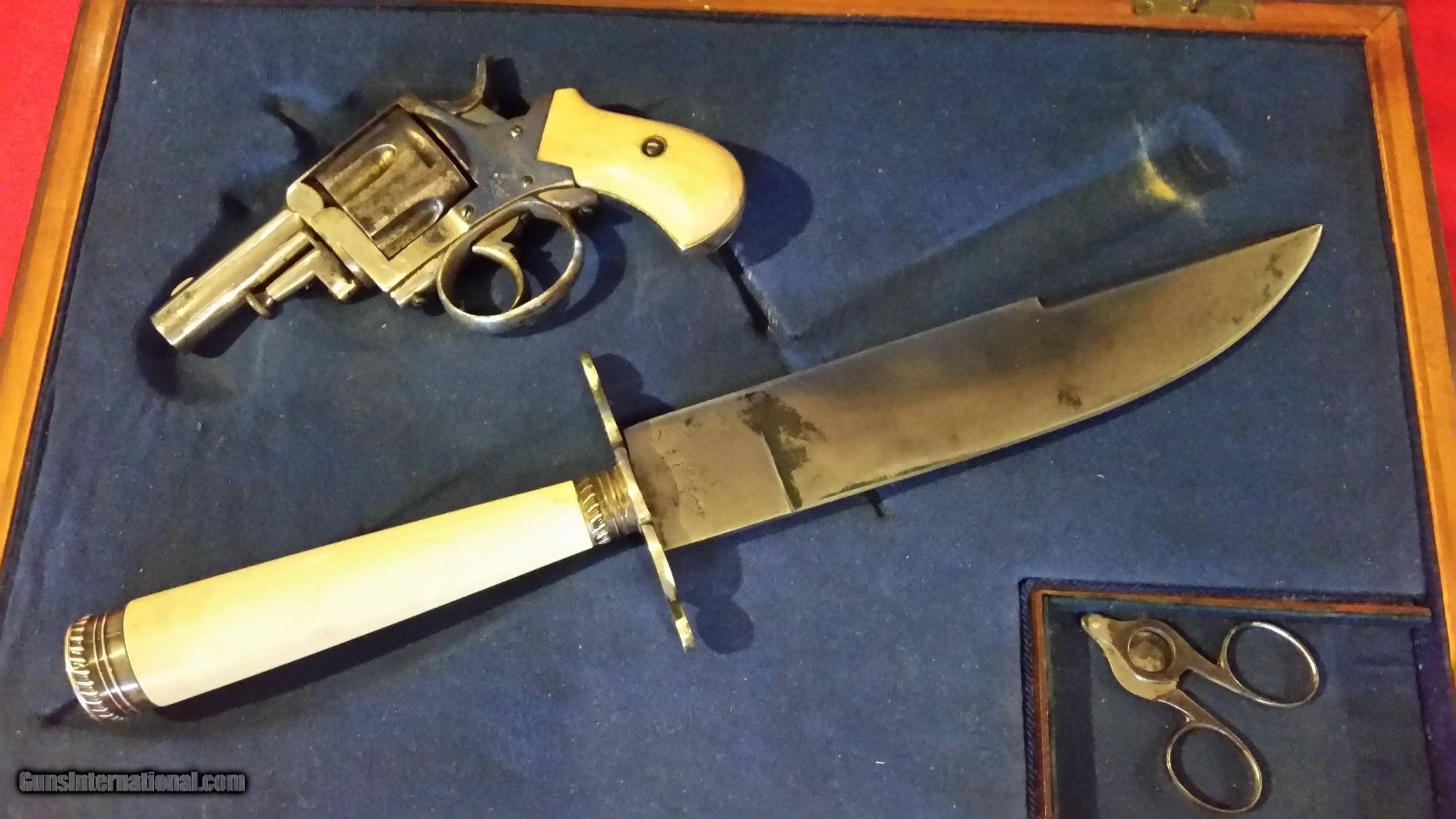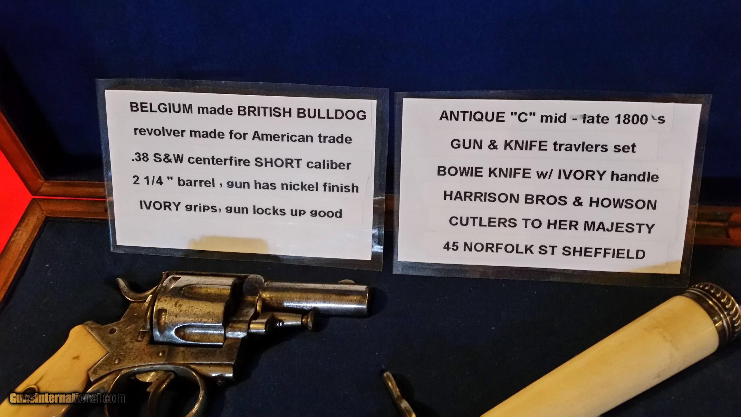 Description: Travlers set early to mid 1800`a read description in picture of gun and knife in case SOLD Caliber Info: .38 S&W short Condition: Overall great shape Metal Condition: Good |