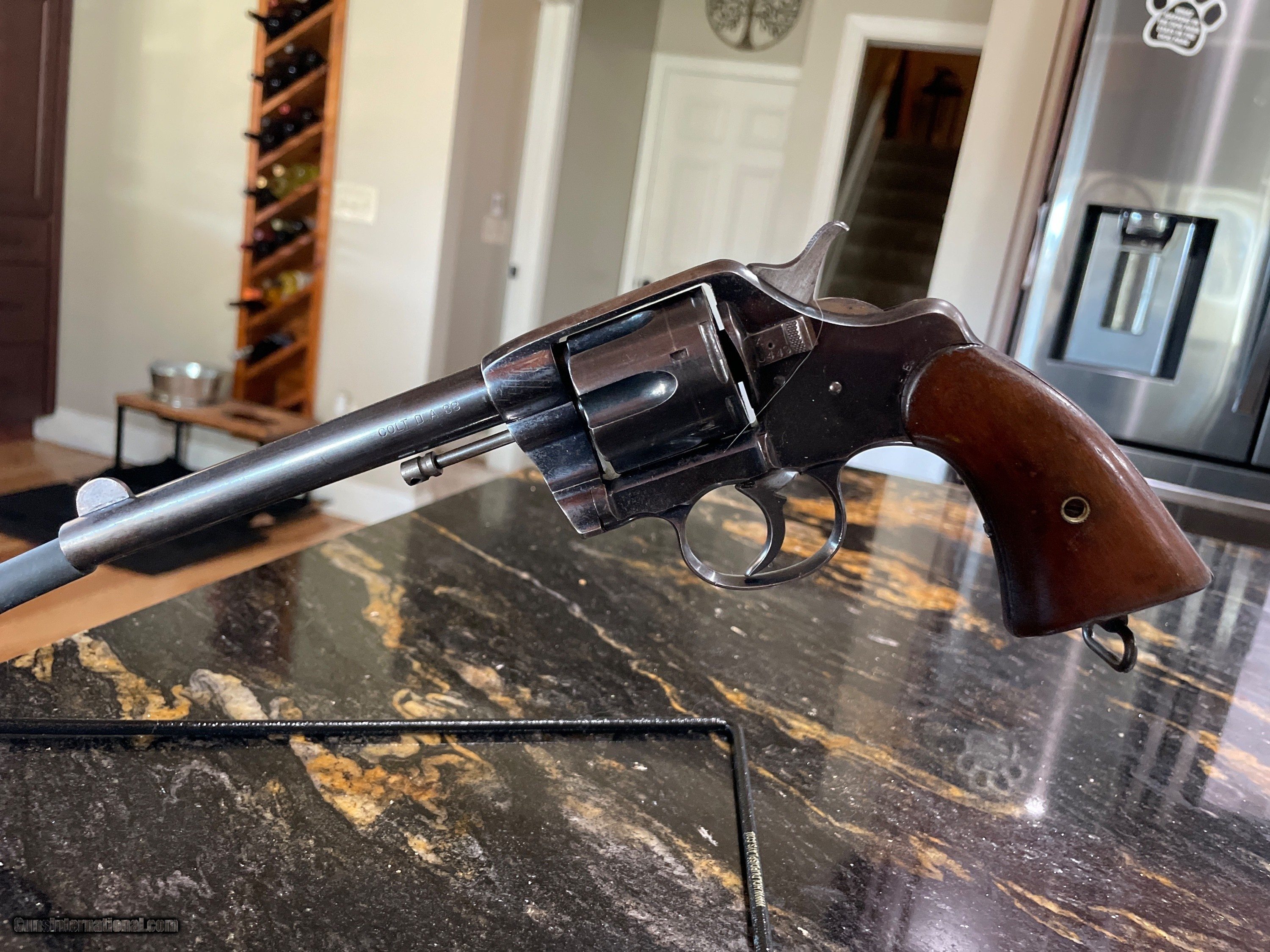 Description: Colt Model 1892/1901 Antique made in 1892 first year production. 6 inch, blued, excellent antique condition. All numbers match, RAC inspected. US Army Philippines insurrection issued. Reinspected by Captain Leroy E Biggs (LEB) in May-August 1918 at the Remington Bridgeport plant for reissue to the US Army for WW1. SN: 6449. A great historical American antique revolver! Item # 165. $2195.00 Antique: Yes Handgun Caliber: .38 Long Colt Manufacturer: Colt Model: 1892/1901 Serial Number: 6449 Barrel Length: 6” Condition: Excellent Metal Condition: Very good Wood Condition: Excellent Bore Condition: Excellent Price: $2,195.00 Shipping: $40.00 Buy Now Contact Seller |