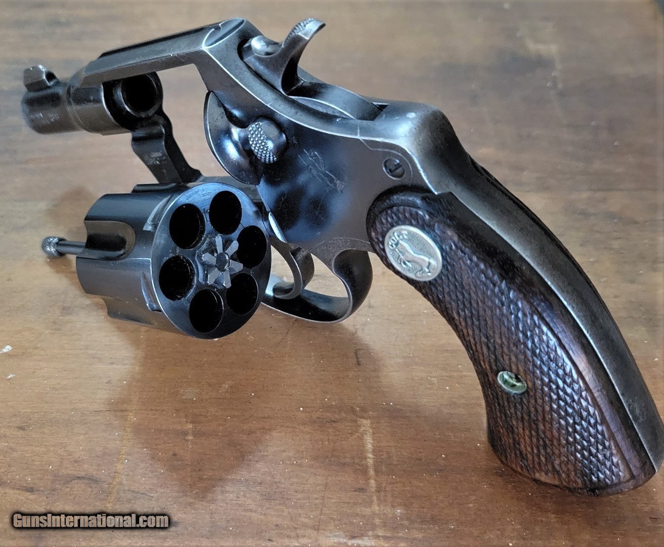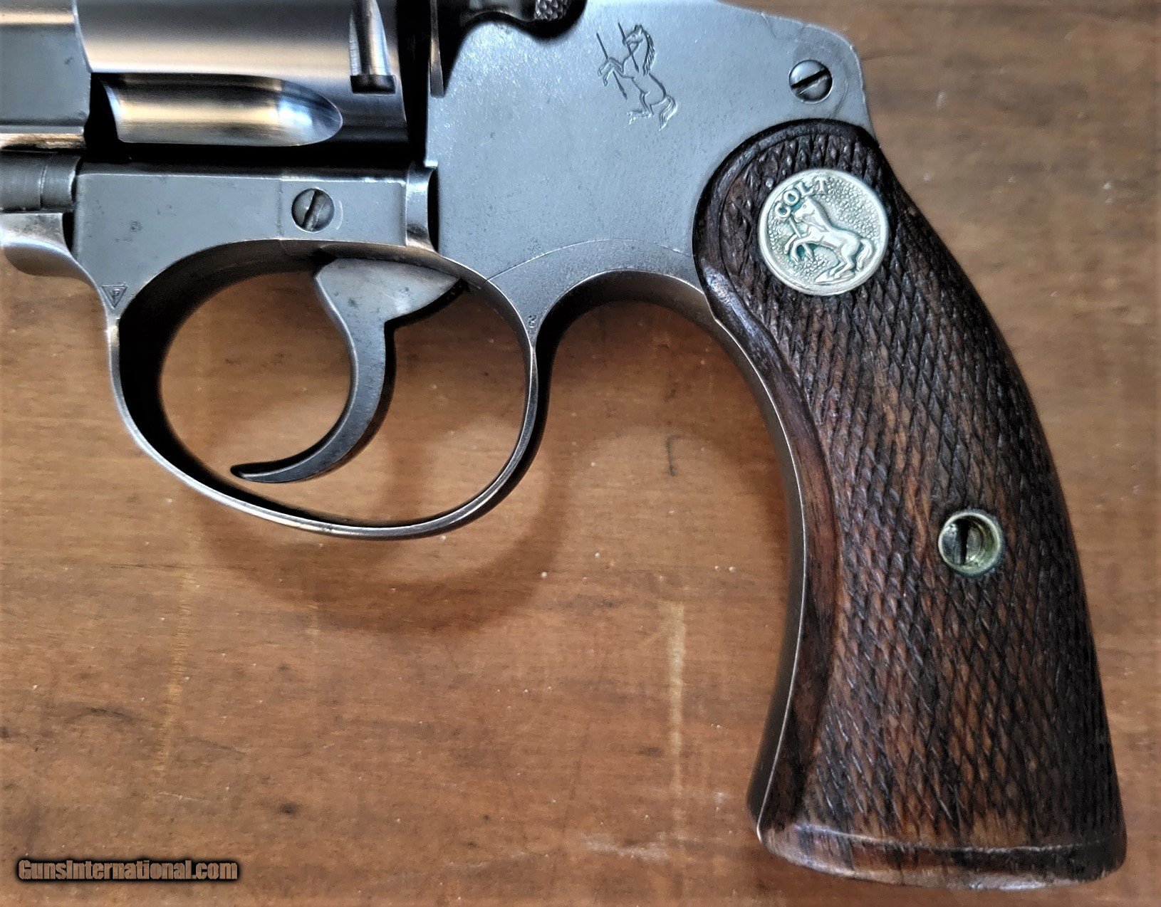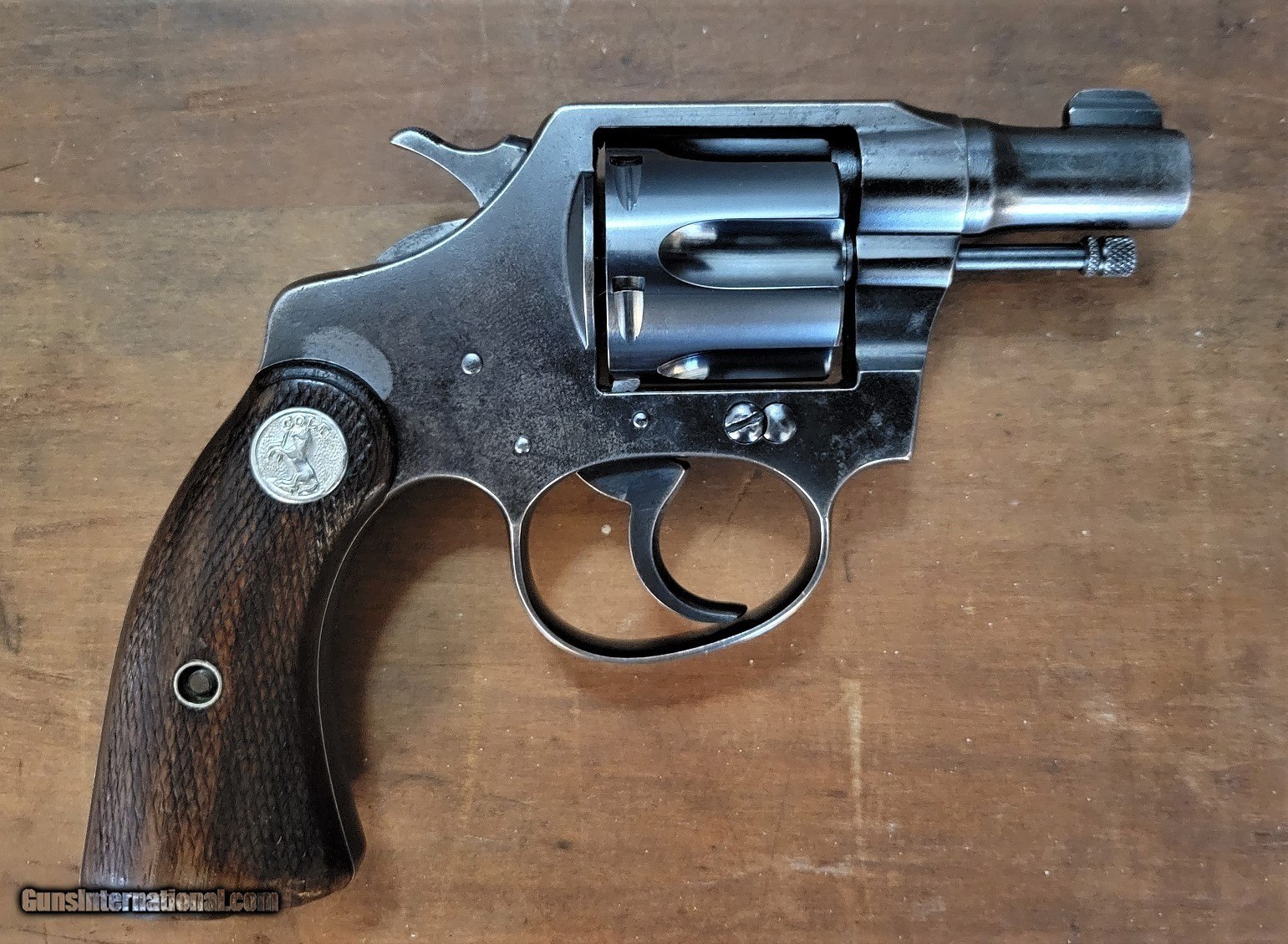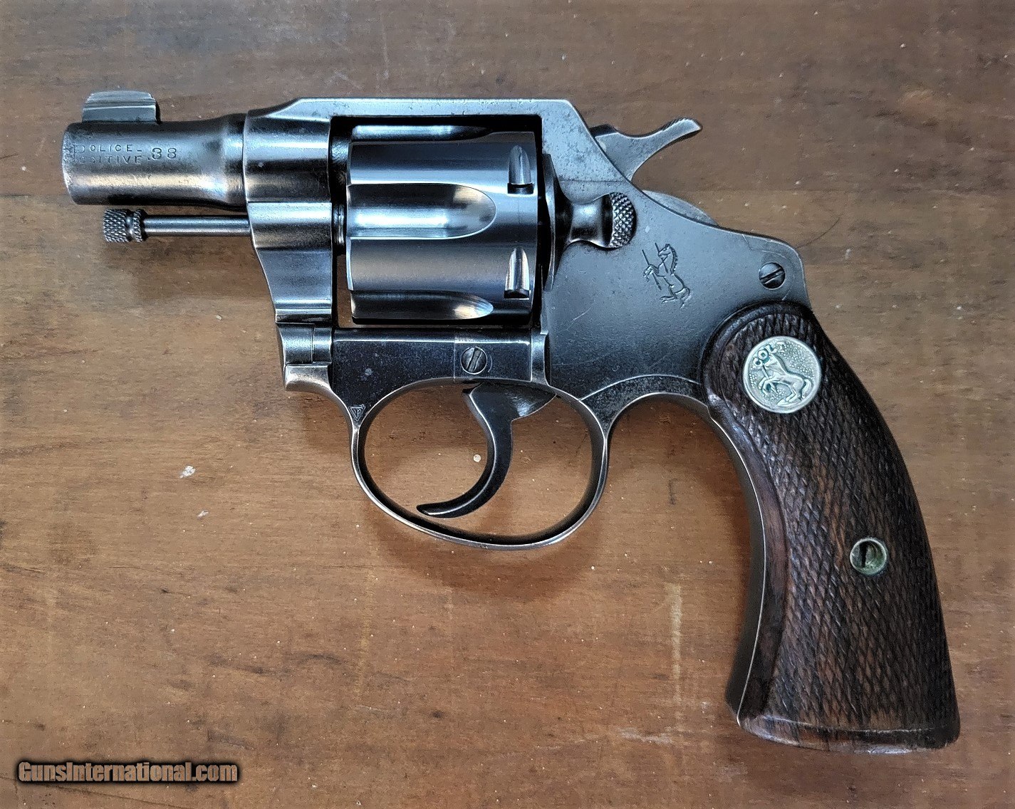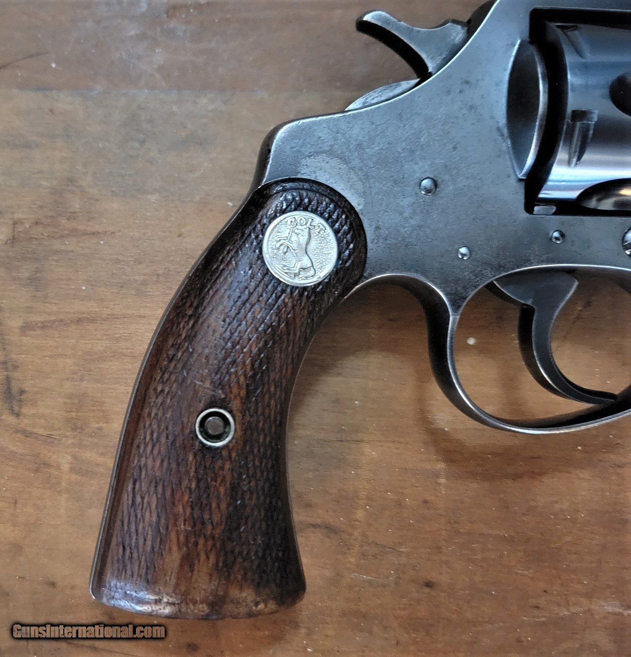 Description: ****SALE PENDING****The Colt Police Positive is a small-frame, double-action revolver features a six-round cylinder. It was designed primarily for sale to federal, state or local law enforcement agencies. It was introduced in 1907 and was produced until 1973.This colt Police positive chambered in 38 Special is in good condition with the bluing turning into a silver/blue hue. There is some light freckling with some bluing loss around grip -no rust and some wear at the muzzle possibly holster wear. The factory grips are crack and chip free. Please view the photos as they support the description. This offering is for what is shown only - no box or paper. I am not an expert by any means on these older Colt revolvers so any corrections or additions to the description is appreciated. Sale includes what is pictured only. No factory manual or paper. This is a used firearm. I make no claims to history, service or usage. I am a licenised FFL dealer with many years experience selling nationally, internationally and on the internet. Accepted payment metnods are USPS Money Order or Chshier's Check - No Credit Cards - Shipping to your FFL in the lower 48 is $35 insurance is EXTRA but highly RECOMMENDED. Absolutely NO California, New York, Mass, or Maryland Sales. No exceptions. No face to face sales - must ship to your FFL - NO EXCEPTIONS- Mail payment and FFL to: Gary Martin 601 Hale St. Llano, TX 78643 SOLD Manufacturer: Colt Model: Police Positive Chambers: 6 Condition: Very Good Metal Condition: Very Good Wood Condition: Good Bore Condition: Very Good Action: Double Finish: Blue Sights: Fixed Manufacture Date: 1907-1947 |