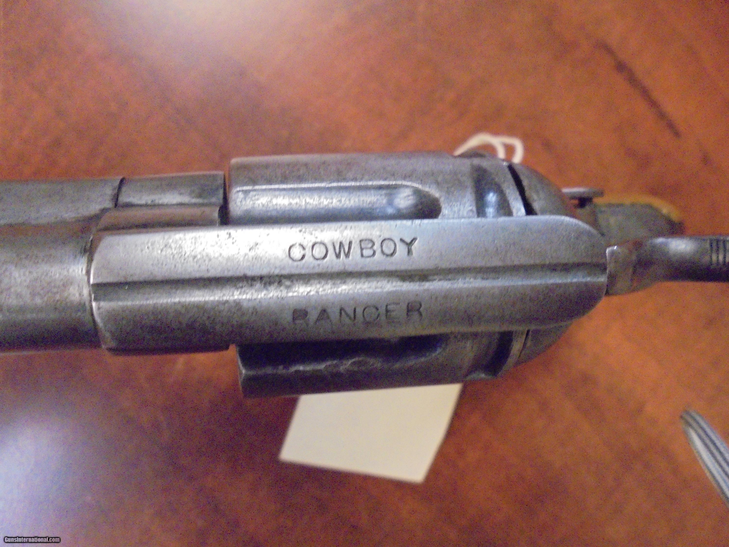 Description: CONSIGNMENT USED EIBAR COWBOY RANGER 38 s&W SPL DOUBLE ACTION ONLY 5.5" BARREL BONE HANDLES BELGUM MADE PAT DATE MAY 22,1917 SOLD |