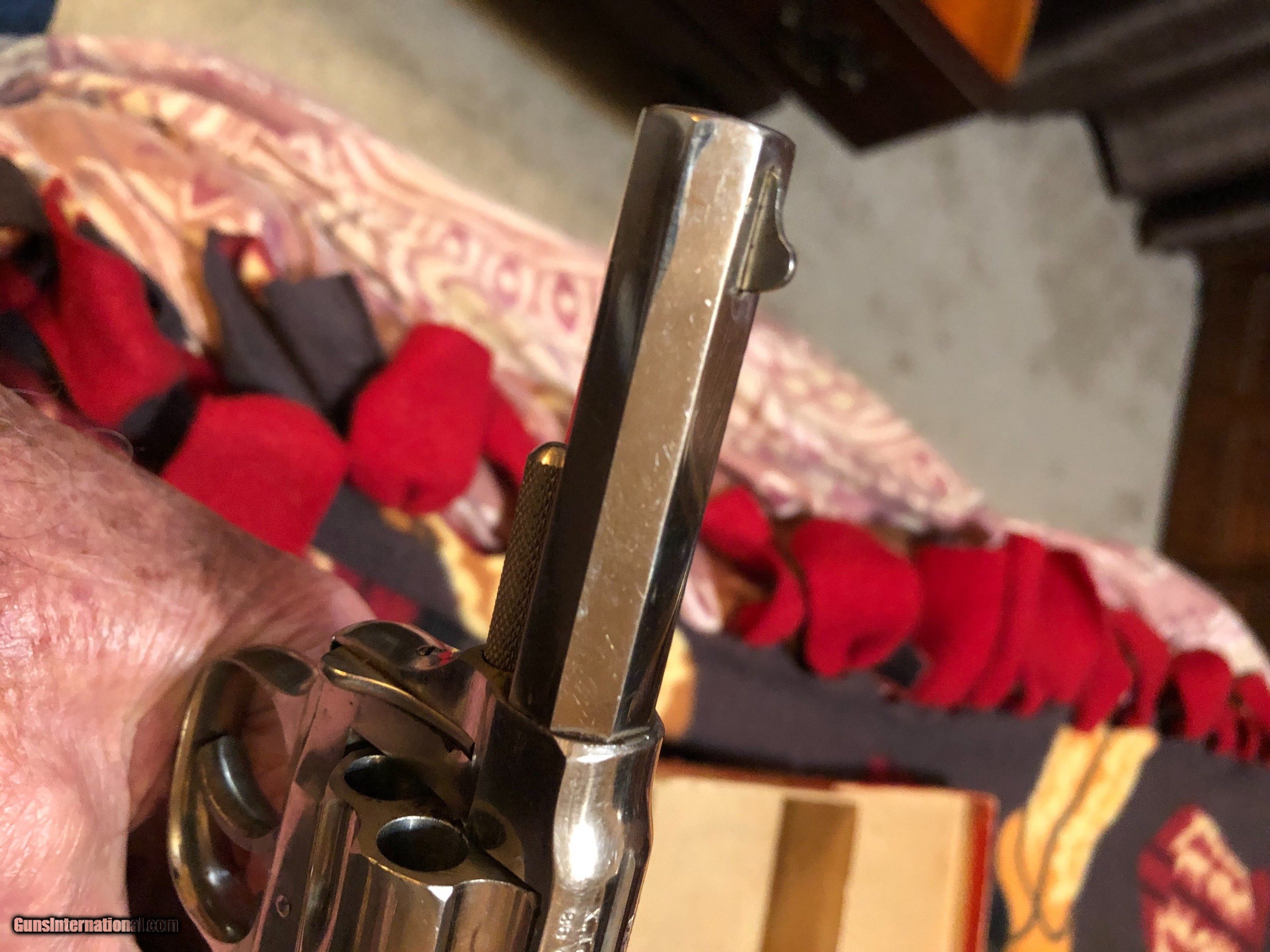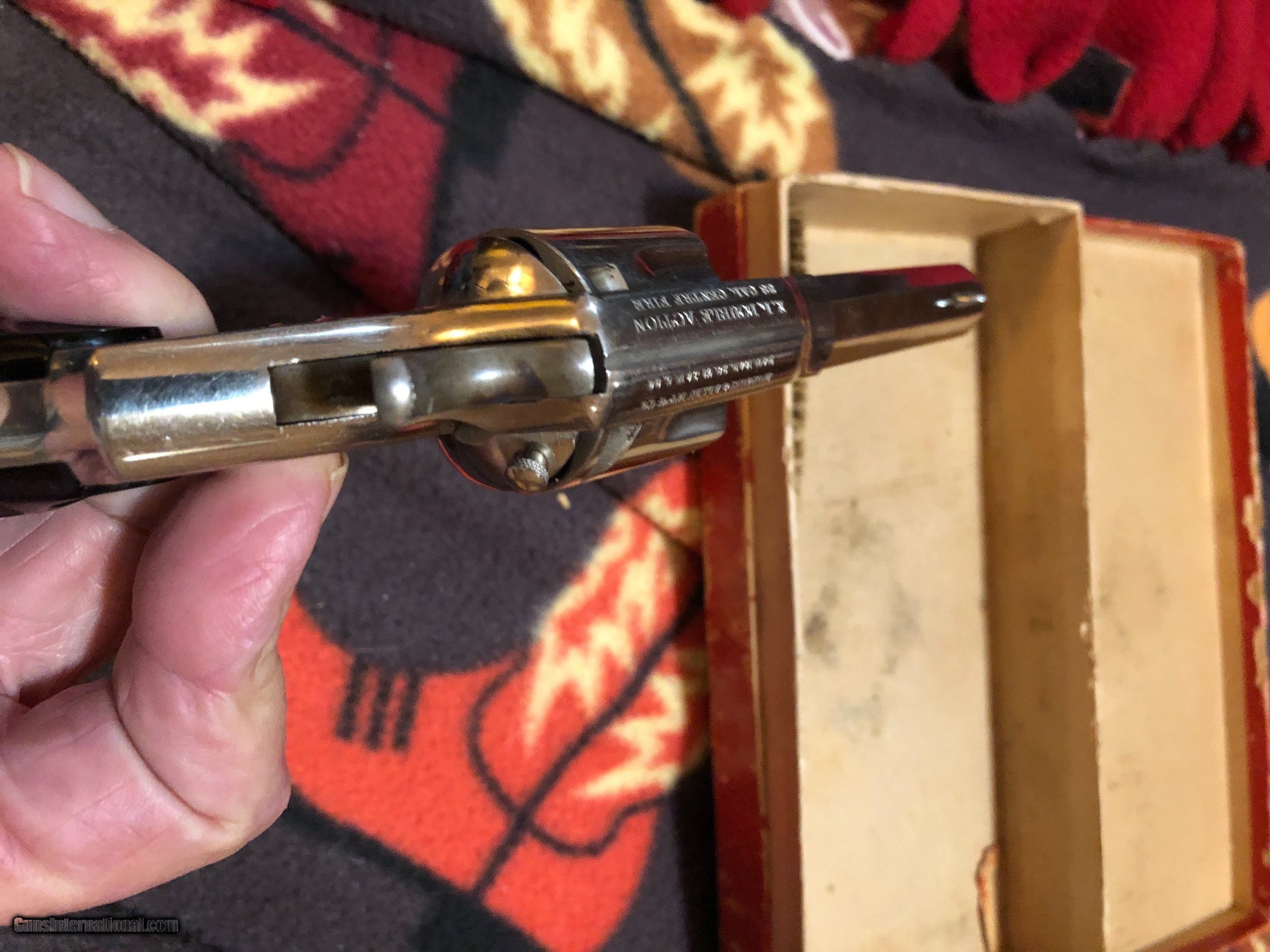 Description: Nice nichol 38 revolver plating is ice and shine you it is very tight handled very little it has 3 inch octagon barrel been fired very little box is solid and crisp has lots of writing on top of cylinedr SOLD Manufacturer: Hopkins and allen Model: 38 Serial Number: 4672 Barrel Length: 3 inches Chambers: I Bellevue 6 Condition: No wear nichol shined and intact Metal Condition: 9.5 out of 10 Bore Condition: Fine Barrel Type: Octagon Action: Single or diuble Triggers: 1 Finish: Nichol Manufacture Date: 1920s ? Item Location: Ga |