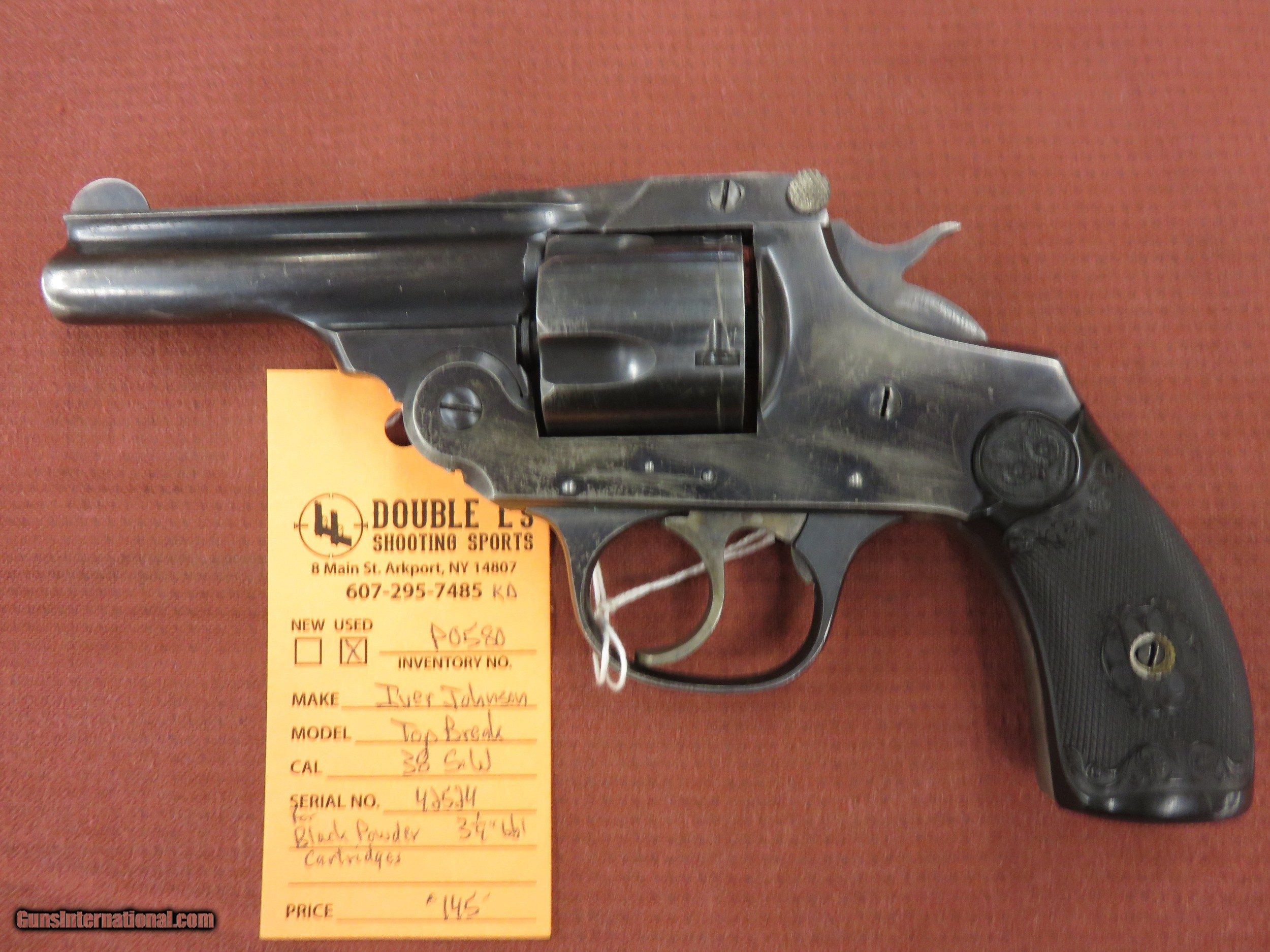 Description: Iver Johnson Top break 38 S&W, 3 1/4" barrel, barrel marked "Iver Johnson's Arms and Cycle Works" on top, for black powder cartridges, excellent action, 80% blue SOLD |