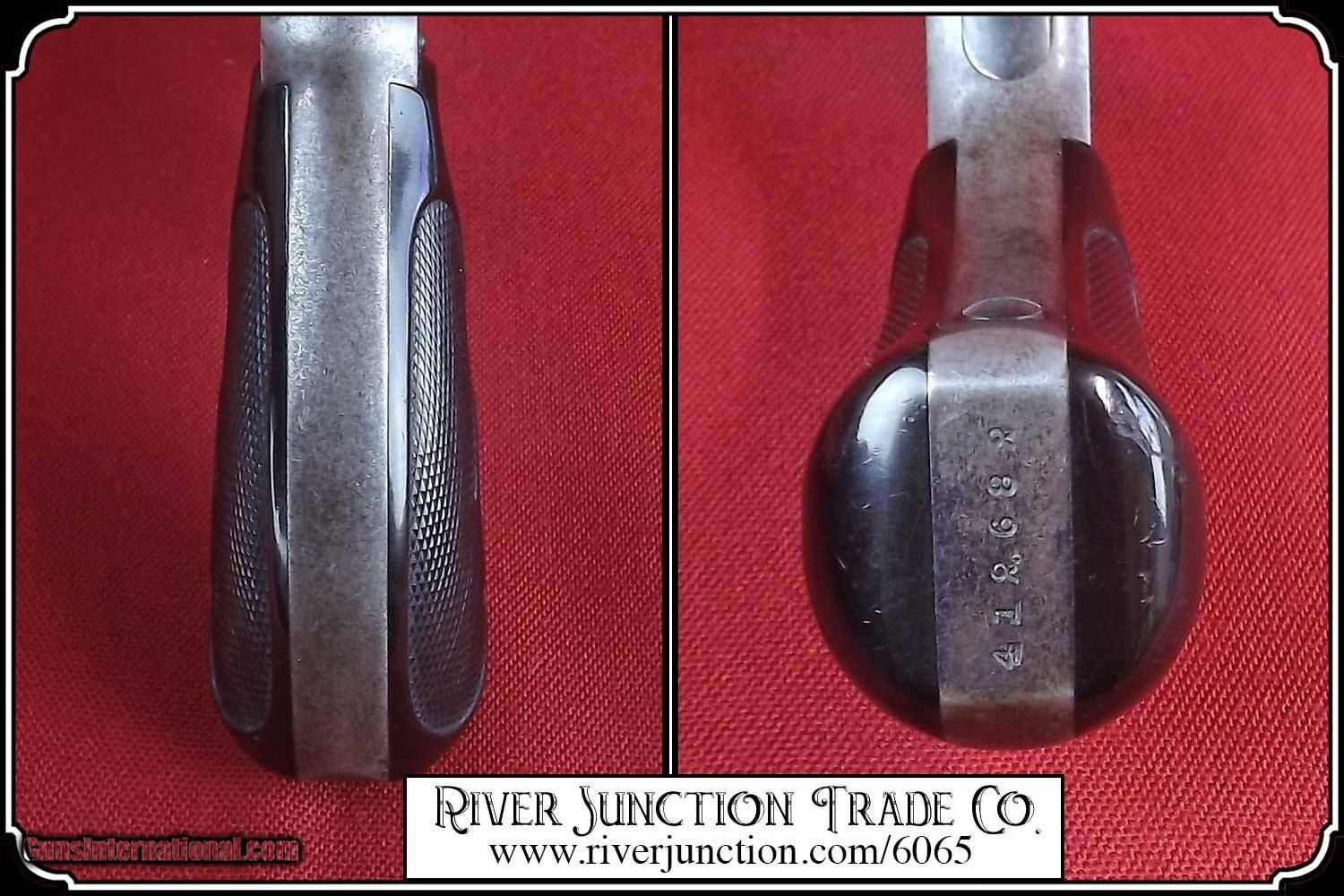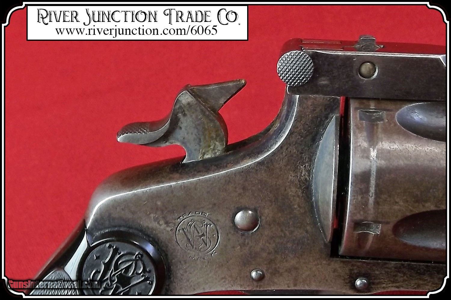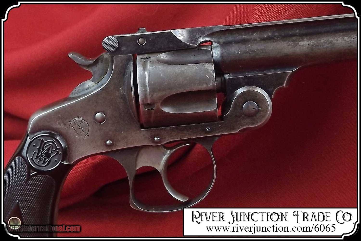 Description: In the era of top break revolvers, this Smith & Wesson made the best. Their double action model was introduced in 1880. The internal mechanism of these guns was somewhat more complicated than other contemporary designs, and their price was about triple the average of the time. Quality sells though and they were very popular. Many of them are still in everyday use even though the cartridge they fire are of marginal power by today's standards. The 6 inch barrel is a desirable and very collectable barrel size. This gun has about 50% original blue. The grips are in excellent condition. The .38 S&W cartridge is still available. Action works nicely with the bore showing sharp bright rifling. This is an ANTIQUE and can be shipped directly to you. Sold as an Antique ~ no guarantees, warranties, or liabilities for any actual usage. If any firearms are to be used for shooting purposes, a qualified gunsmith should inspect them first. Adult signature required upon delivery. Payment: Item, can be ordered with a credit card or paypal on our sight. Just Google (riverjunction) and type in the River Junction Trade Co. item number (6065) in the search box. Before you checkout you will see shipping cost and total. OR If you prefer: Pay by cash, postal money order, cashiers check, personal & business checks. We wait for checks to clear. Have questions? Call me 563-880-4588. Jim SOLD |