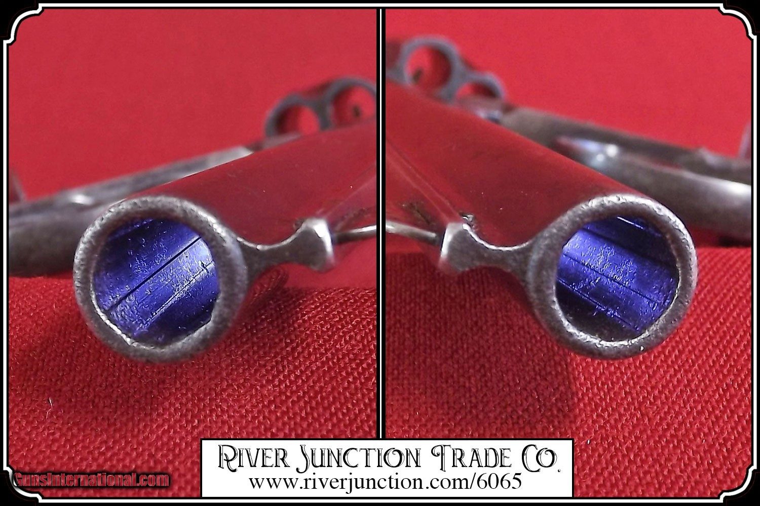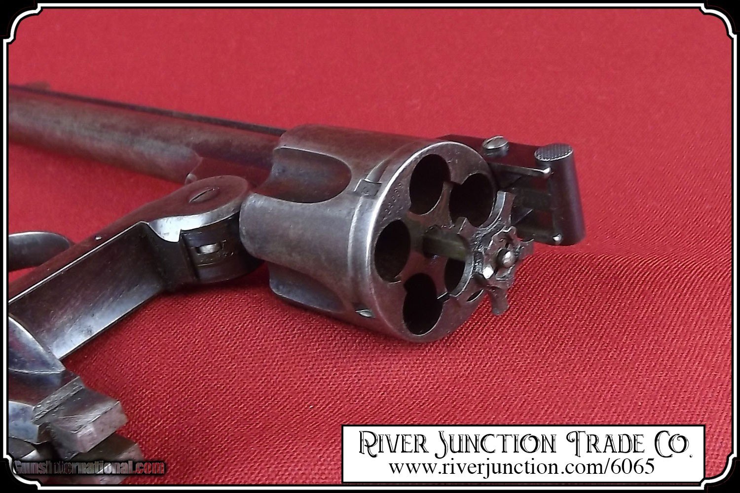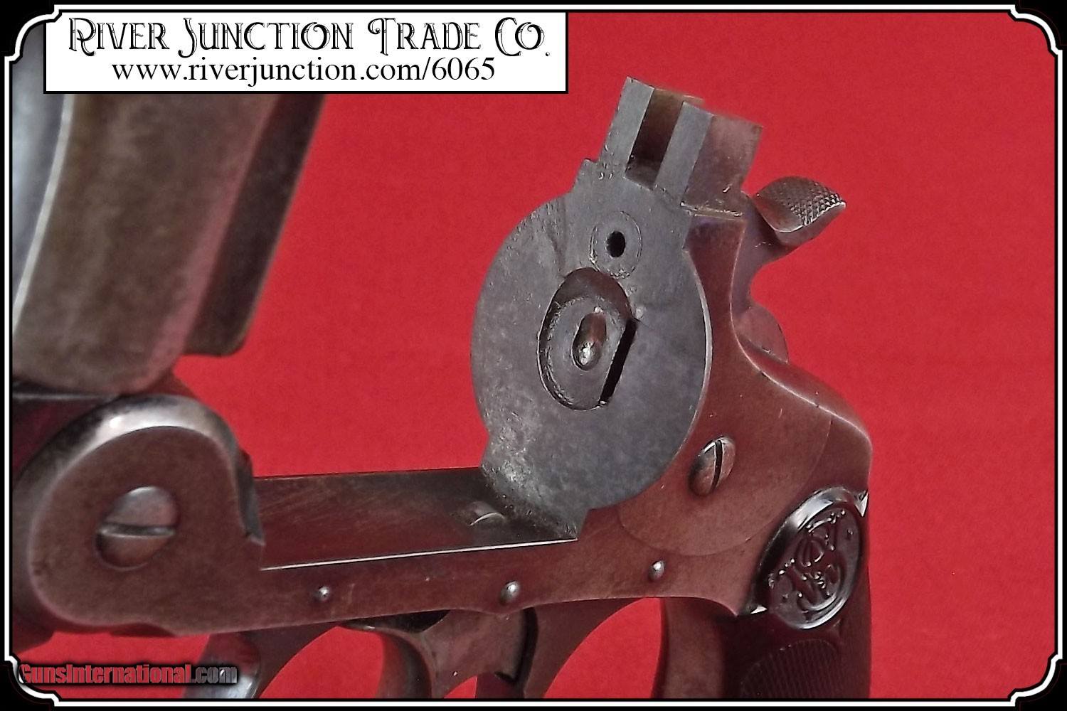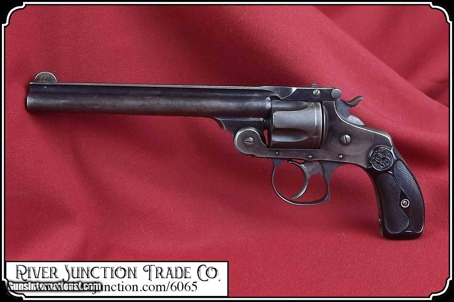 Description: In the era of top break revolvers, this Smith & Wesson made the best. Their double action model was introduced in 1880. The internal mechanism of these guns was somewhat more complicated than other contemporary designs, and their price was about triple the average of the time. Quality sells though and they were very popular. Many of them are still in everyday use even though the cartridge they fire are of marginal power by today's standards. The 6 inch barrel is a desirable and very collectable barrel size. This gun has about 50% original blue. The grips are in excellent condition. The .38 S&W cartridge is still available. Action works nicely with the bore showing sharp bright rifling. This is an ANTIQUE and can be shipped directly to you. Sold as an Antique ~ no guarantees, warranties, or liabilities for any actual usage. If any firearms are to be used for shooting purposes, a qualified gunsmith should inspect them first. Adult signature required upon delivery. Payment: Item, can be ordered with a credit card or paypal on our sight. Just Google (riverjunction) and type in the River Junction Trade Co. item number (6065) in the search box. Before you checkout you will see shipping cost and total. OR If you prefer: Pay by cash, postal money order, cashiers check, personal & business checks. We wait for checks to clear. Have questions? Call me 563-880-4588. Jim SOLD |