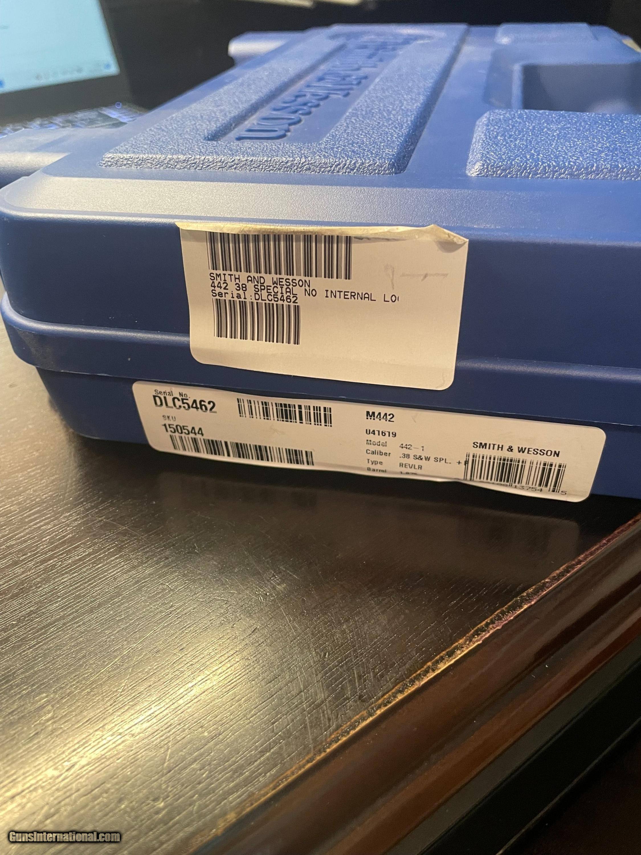 Description: New, in the box, unfired S&W model 442, .38 special, 2 inch barrel. Must ship to FFL. $475.00 plus $30.00 shipping. SOLD Handgun Caliber: .38 Special Manufacturer: Smith & Wesson Model: 442 Serial Number: DLC5462 Barrel Length: 2 Condition: NIB |