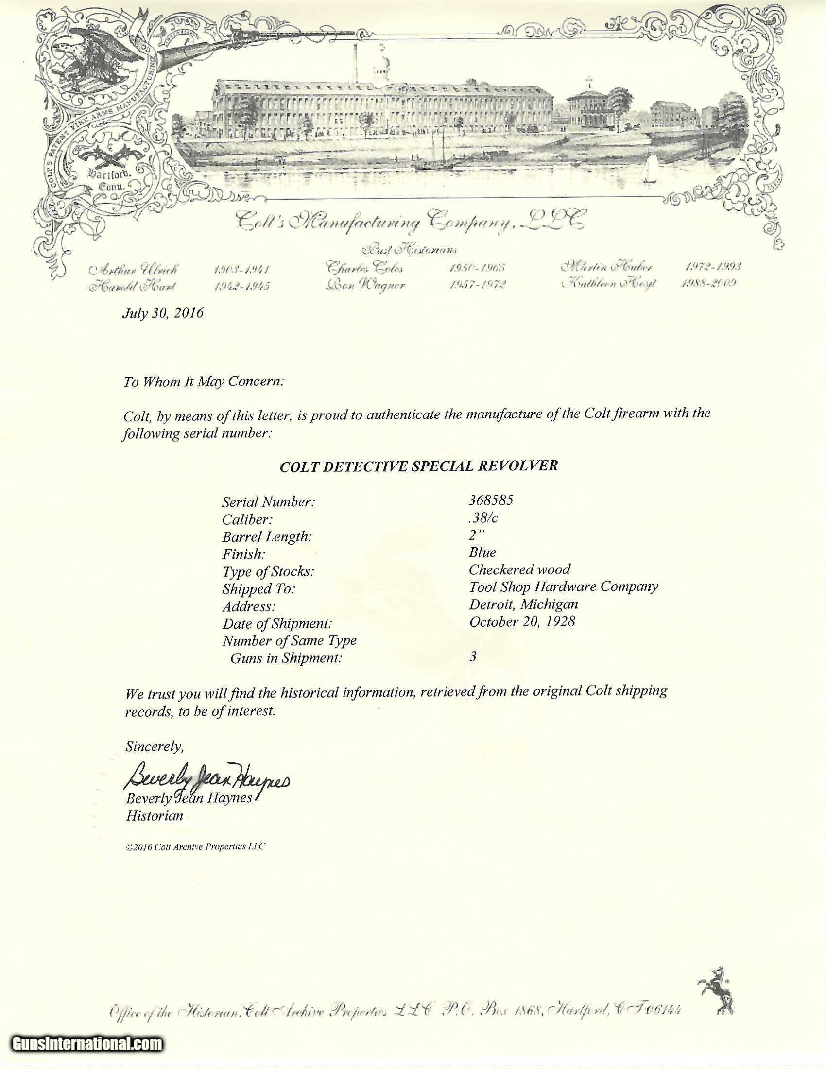 Description: "Serial number 368585. Made in 1928. 38 Special with a 2" barrel. This is a nice example of a pre-war gun that shows normal carry use. There is approximately 75% of the original blue finish/ The grips show normal handling wear. This is a very early model that was made right at the time period where they started marking what were short barrel police positives as detective specials. This gun comes with a factory letter. It was shipped on October 20, 1928 to Tool Shop Hardware company in Detroit, Michigan. Curio/Relic: Yes Price: $1,995.00 Contact Seller |