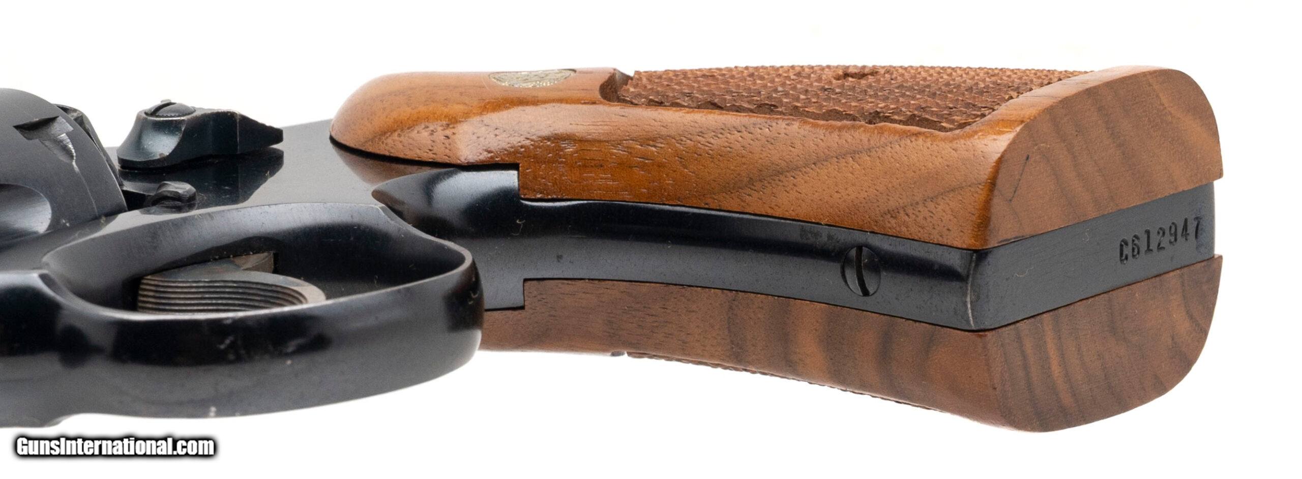 Description: "SN: C612947 1970's vintage. Blued 38 special double action K-frame revolver with a 4"" pinned barrel, trench sights, fluted 6 shot cylinder and checkered walnut grips. Some light wear and handling marks, overall in very good condition for the age with an excellent bore. Price: $595.00 Contact Seller |