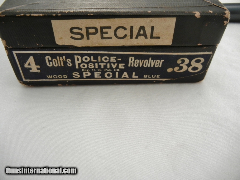 Description: SOLD - This is a Colt police positive 38 with a 4 inch barrel. This gun is 98% in the box. Serial # is 427xxx. Buyer pays 30.00 shipping. Thank you. 32-6-9 SOLD |