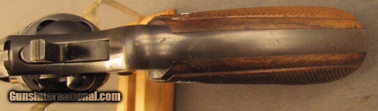 Description: Serial #839938, .38 Special, 2" barrel with a fine, bright bore that has some mild freckling within the grooves. This is a 1965 manufactured revolver that has retained 95% plus of the original blue finish with mild silvering along the edges and projections as well as a light turn-ring around the base of the cylinder. There are a few very small peen marks at the muzzle and there are some specks of mild freckling on the sides of the hammer spur. The checkered walnut Colt medallion grips are in fine shape with very little flattening of the points and only some negligible handling marks on either panel. The lock-up is tight and the action functions flawlessly. The revolver is housed in a period Hunter-made black basket-weave belt holster which is in fine condition exhibiting very little wear. This is a fine example of a post-war Detective Special and would still make a nice carry gun. FFL SOLD Manufacturer: Colt Model: Detective Special Serial Number: 839938 Caliber Info: .38 Spl Gauge Info: .38 Spl |