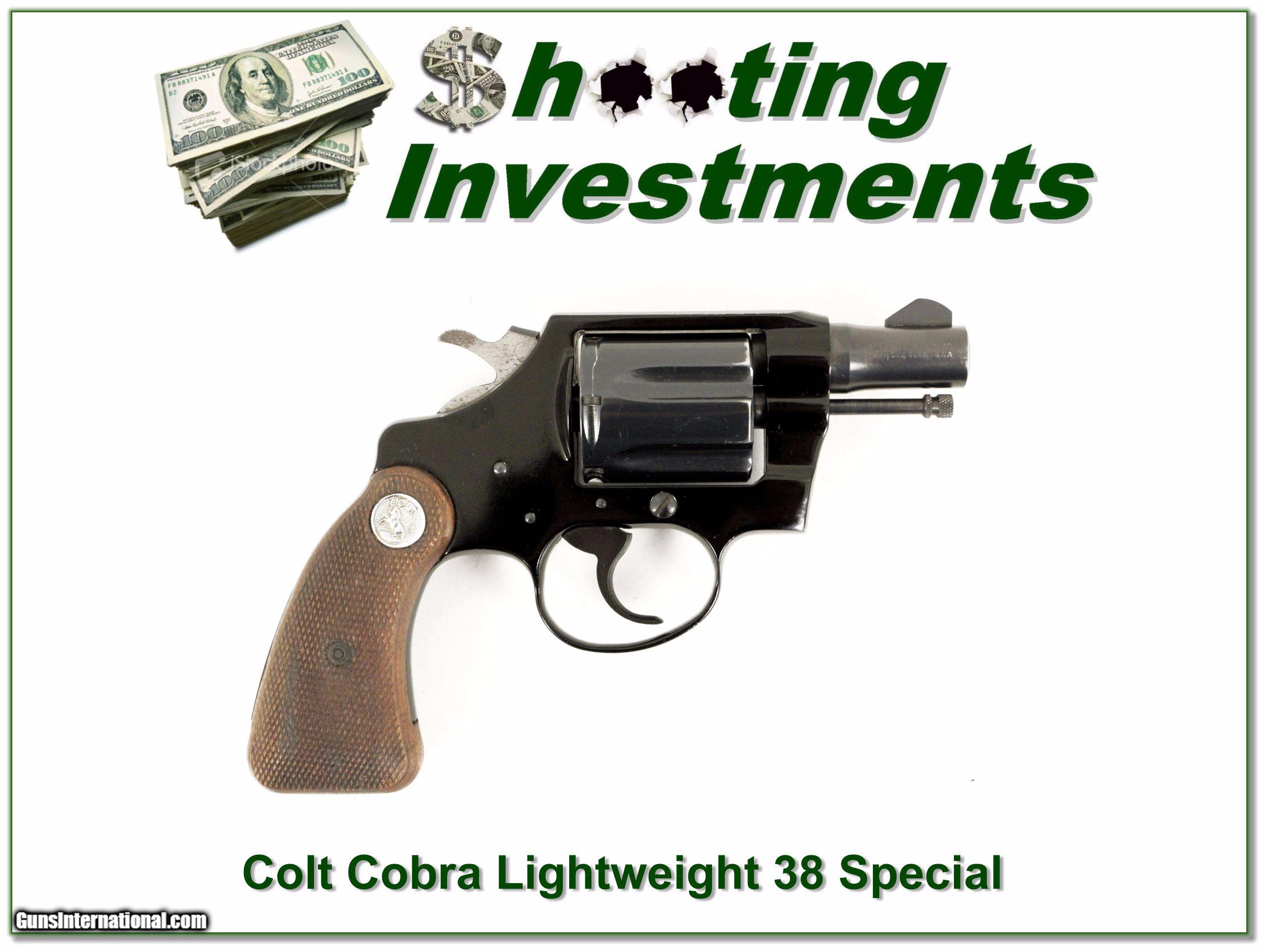 Description: This is a Colt Cobra Lightweight with 2in barrel. It is in excellent condition with only light holster wear at muzzle as seen. I am selling this one on consignment and as such lay-a-way can’t be used. It does of course have the standard 3-day inspection. Shipping and insurance is $29 or $19 more if you want it shipped in a new Plano hard case. Please email me with any questions or larger pictures. (Consign your quality firearms with Shooting Investments for only 10%! Let me know if you have any you would like to sell!) 17-0917 Payment: Payment is by Money Order, Cashiers Check or Personal Check. I can now also accept MasterCard and Visa with a 3% convenience fee. PayPal can be used for some items but never firearms. Please let us know if you would like to pay via PayPal. Shipping: The shipping charge will be listed in each description. It is $39 for most long guns and $29 for most handguns. Some heavy guns or those insured for over $2000 will be higher. Shipments to Alaska and Hawaii are higher because air shipment is required. Most firearms are shipped on Tuesday and Thursday and usually in 5 days of receipt of payment. We package all shipments carefully and insure them. For long guns you can purchase a new Plano case for $19. They now cost us $22 when buying 100 at a time. Optics are shipped Priority Mail and most other non-firearm shipments are shipped First Class. Returns: Our return policy is simple. If for any reason you are not pleased with your purchase, you may return your item for a full refund of purchase price. Ammunition cannot be returned. It is important to us that you are happy. Guns cannot be fired or dissembled before returning them and they must be returned in the same condition as received. Notification of a return must occur with-in 3 days of receipt at your dealer. Shipping, convenience and dealer fees are not refundable and are the responsibility of the buyer. Lay-a-way: If needed, we offer a 60 day lay-a-way option on most firearms. It is 1/3 now, 1/3 in 30 days and 1/3 in 60 days. Lay-a-way firearm sales are final and if not completed the first payment cannot be returned. Consigning your firearms with Shooting Investments: We will help you get top dollar for your firearms. While most local guns shops charge 20% or more, our fee is only 10% with a minimum of $75. At your local gun shop it might take months to sell. Selling on-line provides instant access to thousands of interested buyers. You won’t find any other on-line dealer willing to sell your firearms for only 10% or listing every gun on 3 separate s. Selling through an House typically costs the seller 15% and the buyer an addition 15% (so 30%) and you have to wait several months to sell and longer to receive funds. If properly priced, we will sell your firearms in a few weeks. Send us an email or give us a call and we’ll explain how easy it is for you to get top dollar. Trading: Trading for use is really just buying your gun to re-sell. If you have a gun you want to trade, please email a picture and we will let you know what we can give or it. You will always get more if we sell it for you on consignment. Help for California Buyers: We are happy to ship to California. It is the buyer’s responsibility to make sure any item you buy is legal in your state. We are also happy to help with your purchase of a firearm from someone other than us. If you see a gun you would like to buy but the seller can’t or won’t ship to California they can ship to use and we’ll then ship it to your California dealer. The cost for this service is only $30 + shipping. Let us know if we can help! SOLD |
