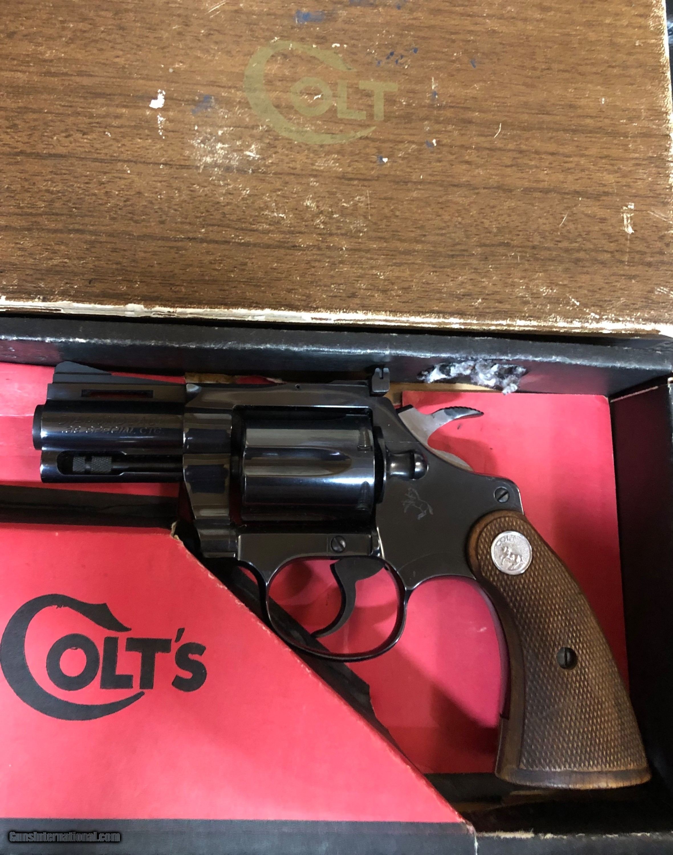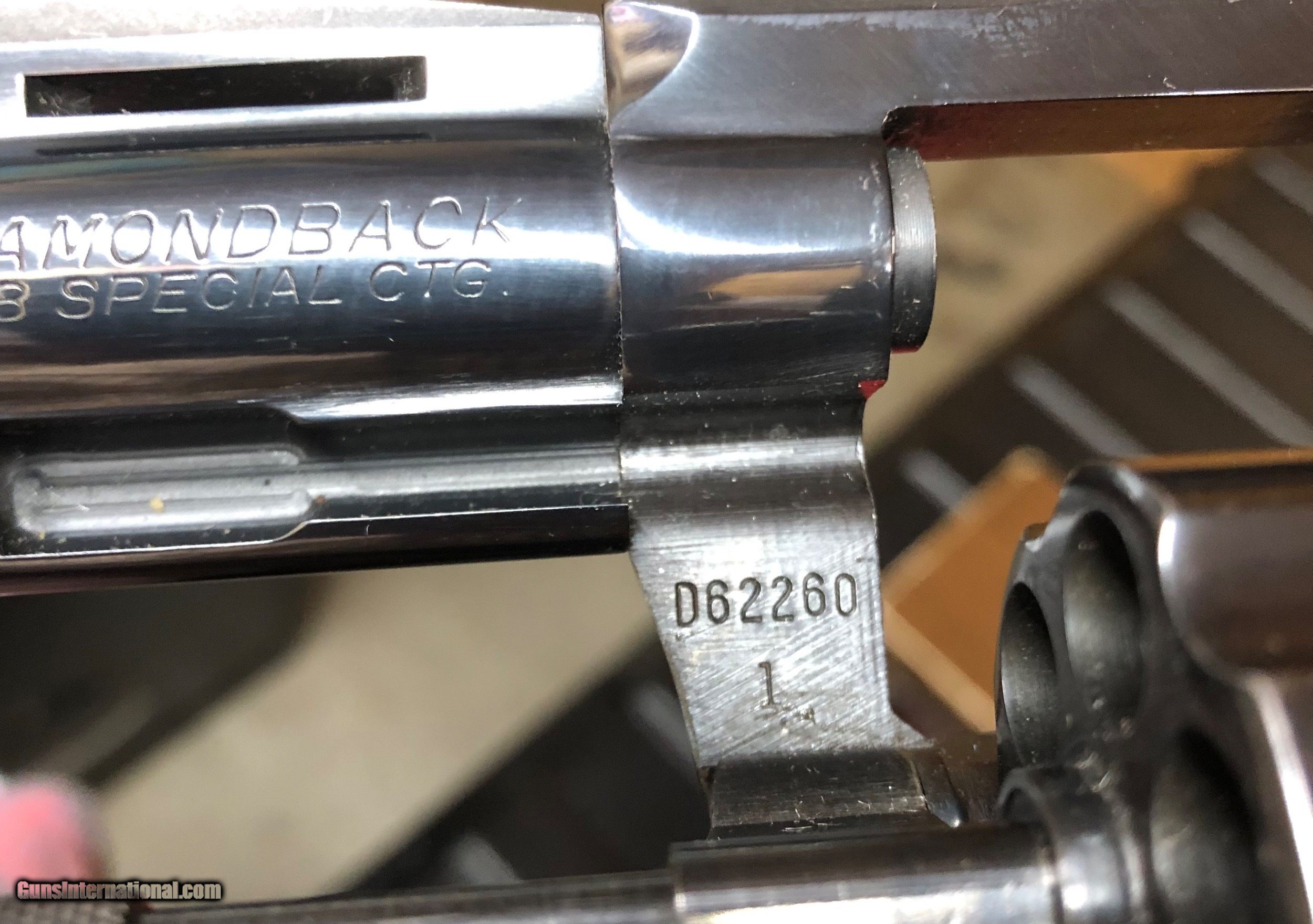 Description: SOLD TO ALAN) Hard to find snub Diamondback! 2 in barrel, blue, target sights and grips. Non original box. Light wear on one spot on the cylinder, otherwise very nice. Please email with questions. Shipping included (west coast add $75). Venmo and cash app accepted. SOLD Manufacturer: Colt Model: Diamondback Barrel Length: 2 inch Condition: Used Metal Condition: Very good Wood Condition: Excellent Bore Condition: Excellent Action: Da, sa Finish: Blue Sights: Target Item Location: 37075 |