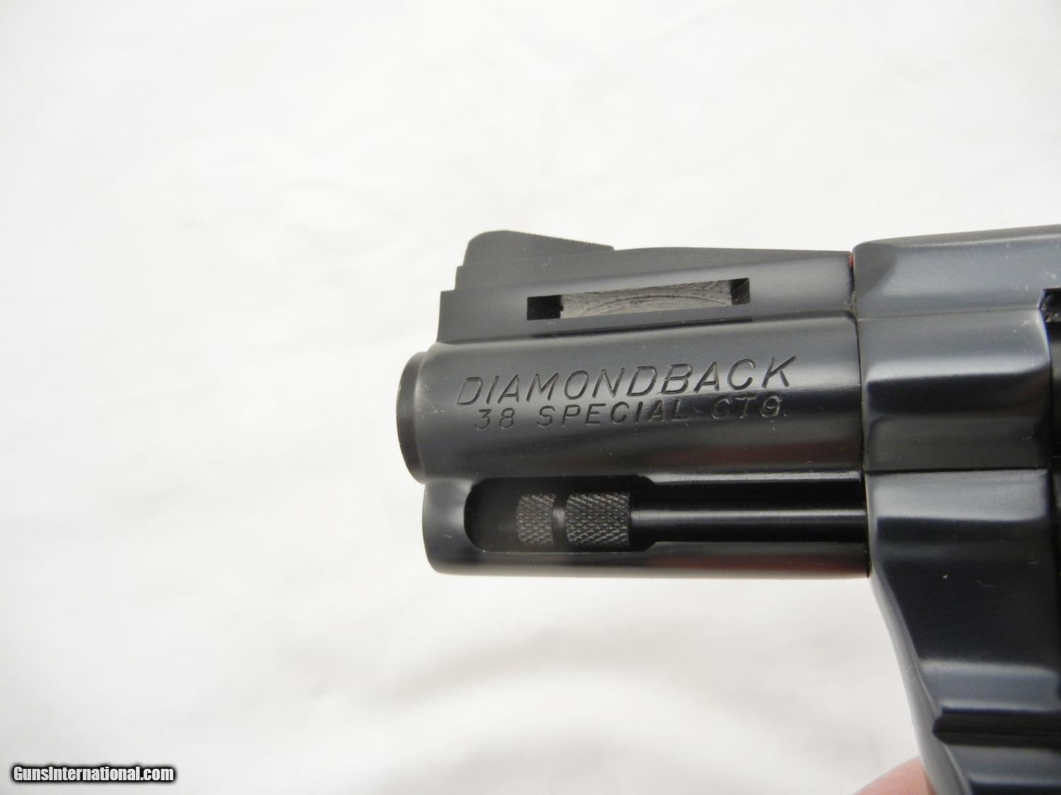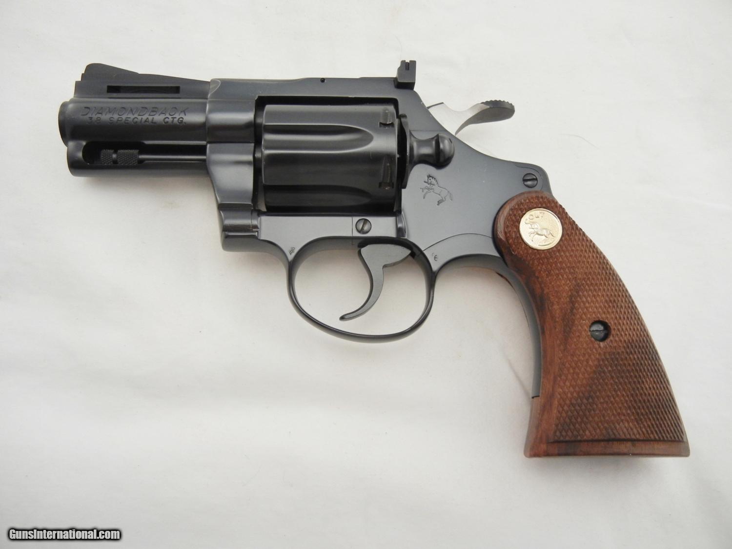 Description: This is a Colt diamondback 38 with a 2 1/2 inch barrel. This gun is 100% new with no box. Serial # is R13xxx. Buyer pays 45.00 shipping. Thank you. 33-21-1 SOLD |