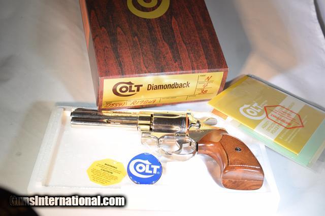 Description: Hello, Gorgeous 1978 Colt Diamondback 4 Inch 38 Special in brilliant Nickel finish. Beautiful Snake gun with desirable bright Nickel finish in excellent condition with only very minor handling marks. This revolver appears to have been test fired only. Original Checkered Colt grips in like new condition. It has a wide serrated target hammer, ventilated rib, fully adjustable target quality sights, and full-length barrel underlug. The Nickel Snake guns are a great addition to any collection, especially in this condition. Custom Presentation case extra. MN buyer needsMN state ID and Permit. Out of state buyer pays $30 shipping to local FFL. SOLD Manufacturer: Colt Caliber Info: 38 spec Chambers: 6 Condition: like new Metal Condition: like new Wood Condition: like new Bore Condition: like new Barrel Type: 4 inch |