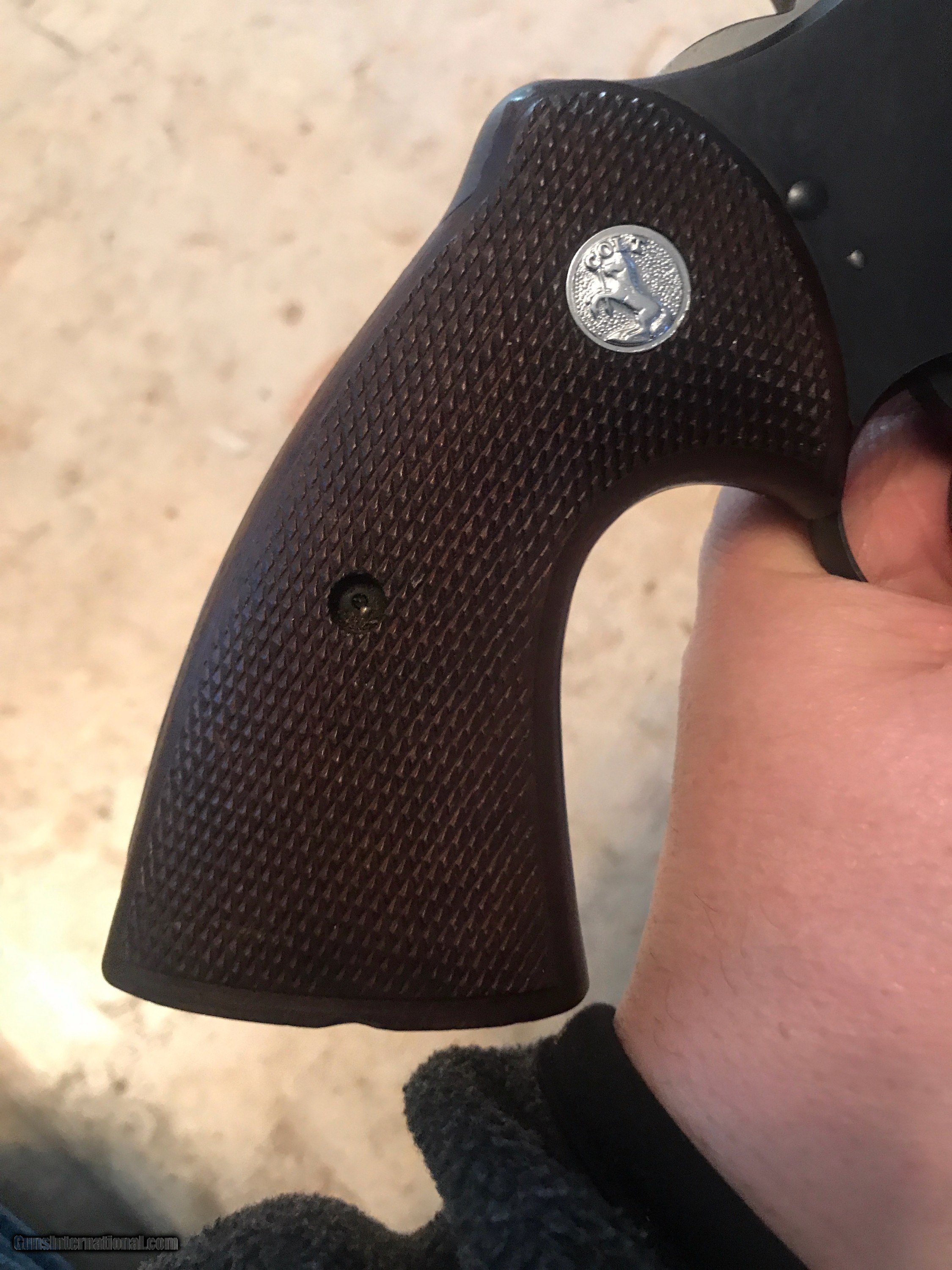Description: A beautiful Colt Officer's Model match. 2 tone Blue finish, 6 inch barrel, target sights, and fully checkered grips. Gun is about 90%, although looks gorgeous. One knick in the right grip (see photo). Wide spur hammer. A really nice shooter grade Colt and still highly collectable! Please email with questions. Shipping included. SOLD Manufacturer: Colt Model: Officer's Model Match Caliber Info: .38 Special Condition: used Metal Condition: very good Wood Condition: excellent Bore Condition: excellent Action: double Finish: blue Sights: target Manufacture Date: 1965 Item Location: 37075 |
