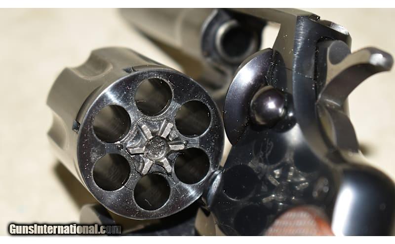 Description: Classic duty revolver from 1966. It is in nearly unfired condition and the "defects" could be termed handling marks. It has been fired but not much. .38 Special Chambers: 6 rounds Metal Condition: Very good. There is a small amount of wear around the muzzle and a very light turn line. Wood Condition: Excellent. Bore Condition: Shiny and bright with good rifling. Barrels: 4 inches Triggers: Factory double and single action trigger. Stock Dimensions: Slim "duty" style grips. Butt Pad: Walnut with SHARP checkering and Colt medallions. Weight: 33 oz Sights: Fixed blade and notch. Item Location: Rogers Price: $1,099.99 Contact Seller |