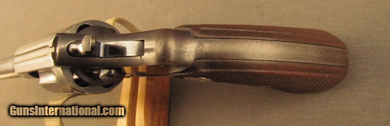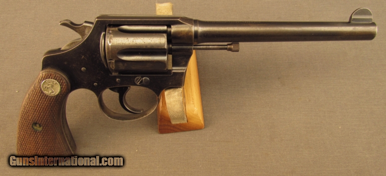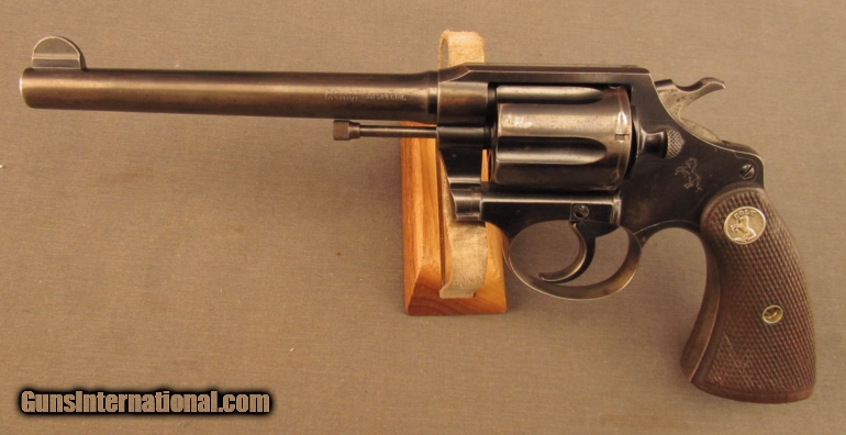 Description: S# 366953, 38 Special, 6 inch barrel, bright excellent bore. This 1929 manufactured revolver remains in very good condition with 70% blue, fading brown in areas, with scattered stains and marks. Grips are worn with flattened diamonds and a little oil wiped on. They are unnumbered and fit quite well. Front sight is not altered, action times and locks up well. A very nice example of Pre-War Colt craftsmanship, this will look great on display or at the range. FFL or C+R SOLD Manufacturer: Colt Model: Police Positive Serial Number: 366953 Caliber Info: .38 SPL Gauge Info: .38 SPL |