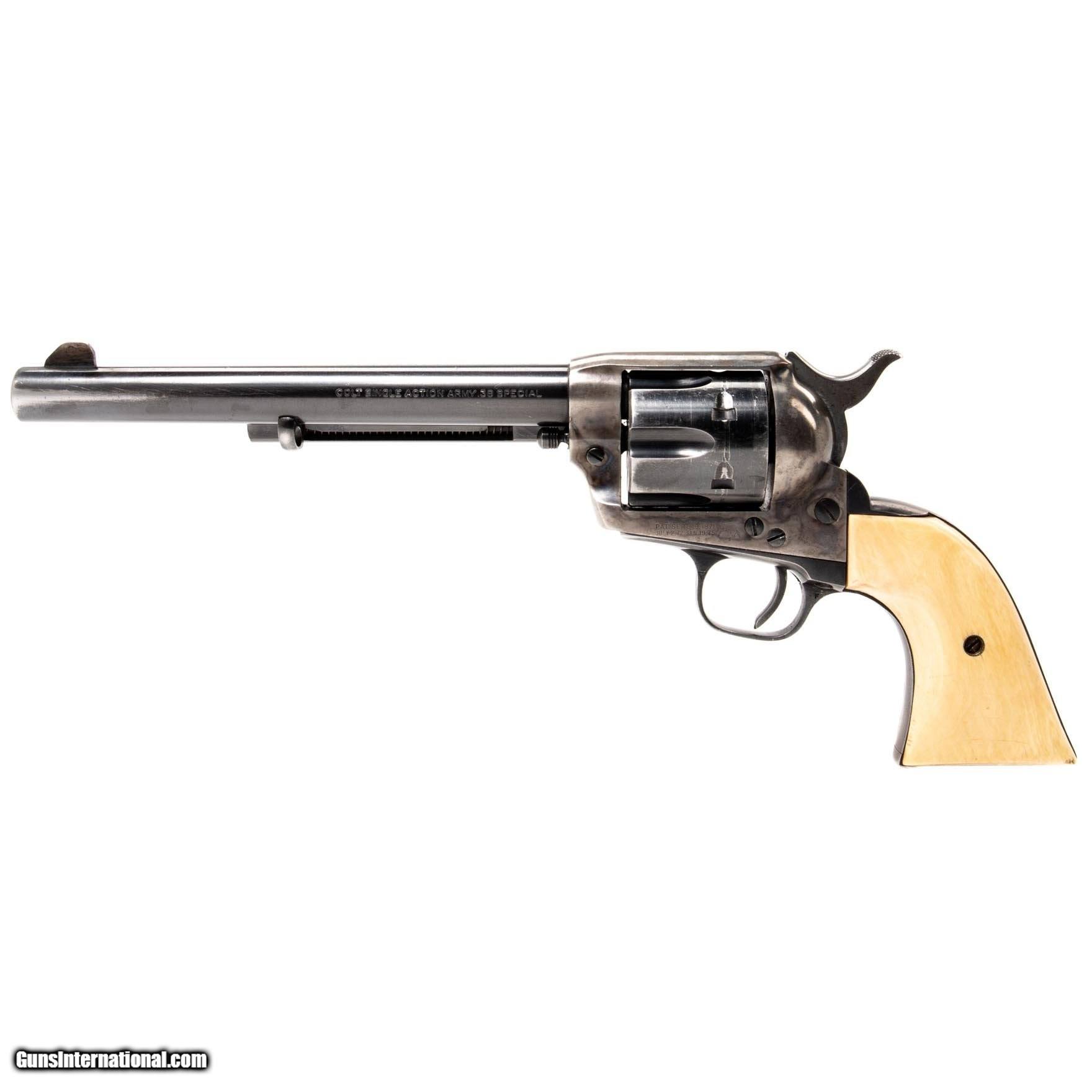 Description: Guns Listing ID: 581087 This is a very rare Single Action Army! 7.5\" .38 Special versions were only produced for a limited amount of time and many of them had their barrels cut down to 4.75 or 5\". It also features actual natural bone grips. 4182 etched into the grips, Bill Aaron 1956 etched into the frame under the grips. This is a 2nd Generations SAA, Serial number: 4182SA Get the best bang for your buck when you get a Certified Used Firearm . When you see the Certified Used stamp on any of our firearms, you can be confident that you‚re getting exactly what you want – a gun only in very good to excellent condition and held to the highest quality standard. All Certified Used Guns come with a ‚no questions asked‚ return policy . Curio/Relic: Yes Manufacturer: COLT Model: SINGLE ACTION ARMY Caliber Info: .38 SPL Condition: Used - Certified Barrels: 7.50" BARREL Action: REVOLVER Finish: case hardened/black Weight: 2.6 Price: $2,799.99 Contact Seller |