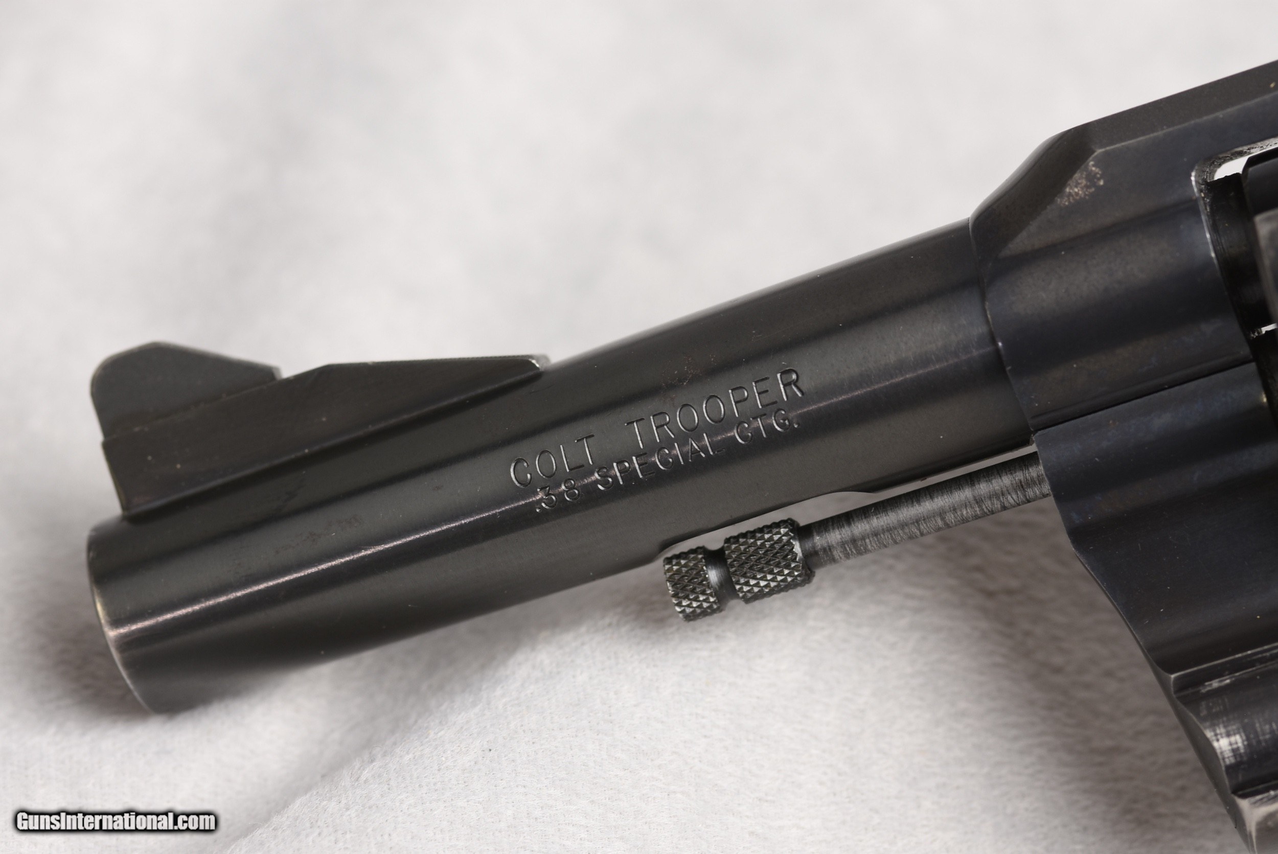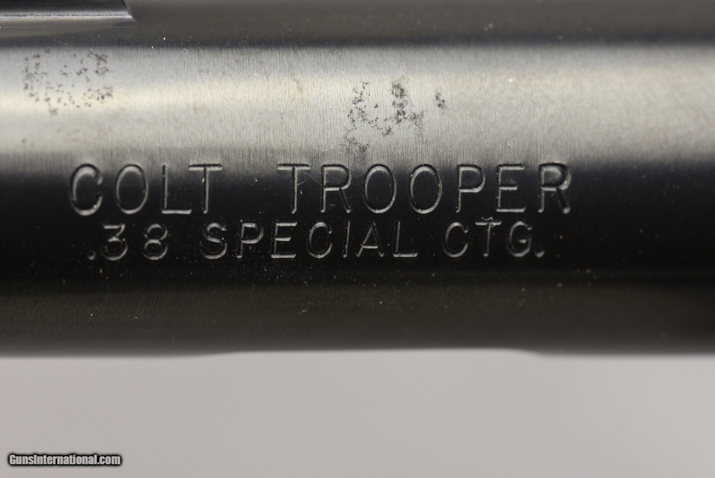 Description: Colt Trooper revolver with 4" barrel in .38 Special, S/N: 926640. Mfg: 1960. Overall condition is excellent. There is some light holster and handling wear and some light speckles on the top of the barrel (shown). Grips appear as new and are original to the gun despite having gold medallions as used on Pythons. Troopers typically had silver medallions. It has the wider target hammer. Ordering/Shipping: - Buyer will pay actual shipping cost plus insurance within the USA. - Shipping fees and insurance is determined by FFL shipping address. Extra charges may apply on different items depending on value. - Full payment of the purchase price, shipping and insurance is required before shipping. - Payment must be received Within 7 Days or the item will be relisted. Return Policy - I offer a 3 day no fire/no disassembly return policy (minus shipping /FFL charges) on all used items. In the event the item's condition does not meet the buyer's expectations, notification must occur within the 3-day period of the item reaching your FFL dealer. - Returned items must be shipped back within the 3-day period. - All returned items must be returned in the same condition as they were shipped from me. Terms - All firearms are sold "as is" with no warranty either expressed or implied. - Purchasers assume all liability for any firearms purchased from me. - All firearms purchased must be shipped to a licensed FFL dealer. - A signed copy of the Federal Firearms license (FFL) must be on file before the firearm will be shipped. SOLD Curio/Relic: Yes Handgun Caliber: .38 Special Manufacturer: Colt Model: Trooper Serial Number: 926640 Condition: Very good Metal Condition: Very good Wood Condition: Excellent Bore Condition: Excellent Sights: Original Manufacture Date: 1960 |