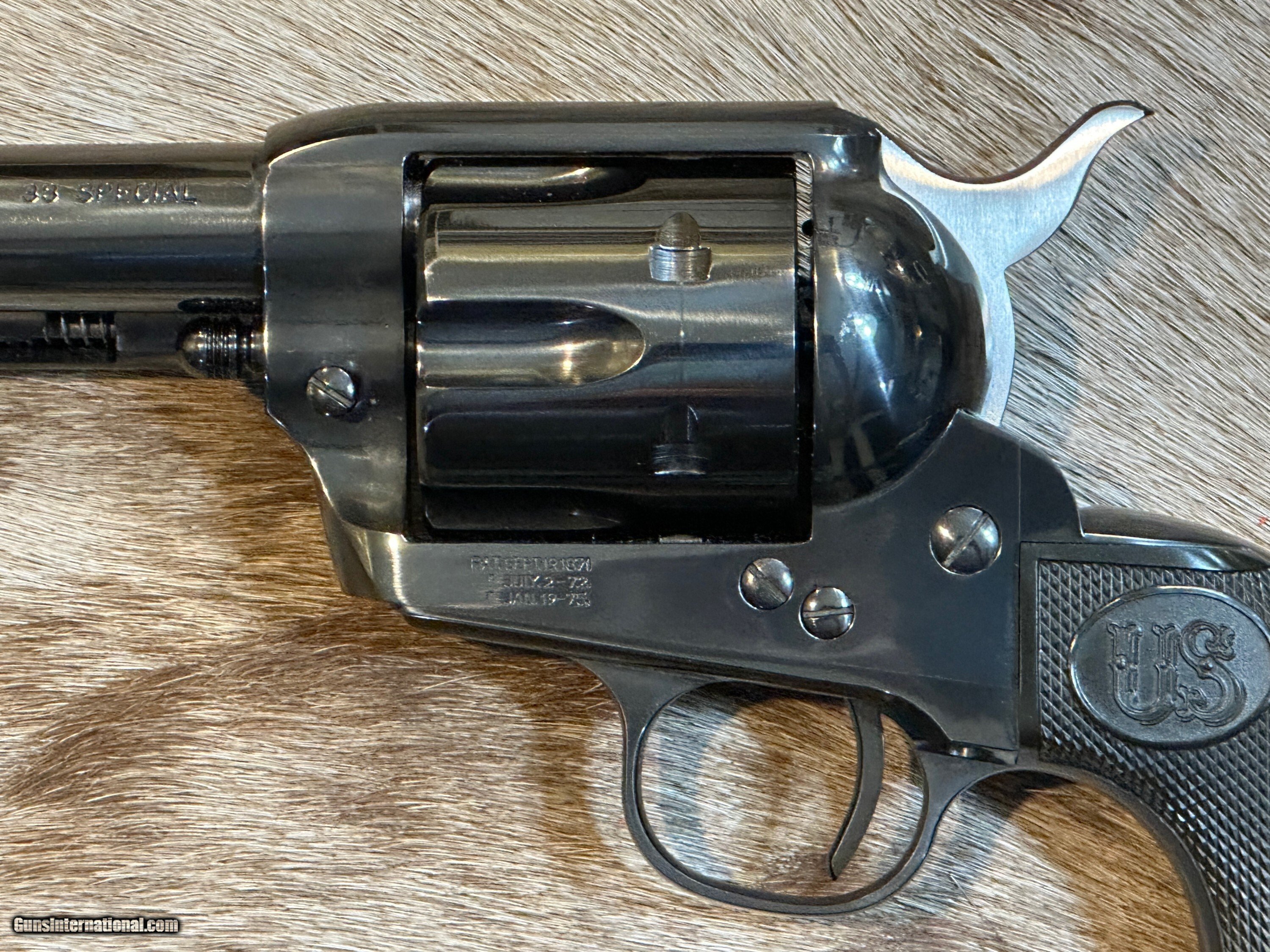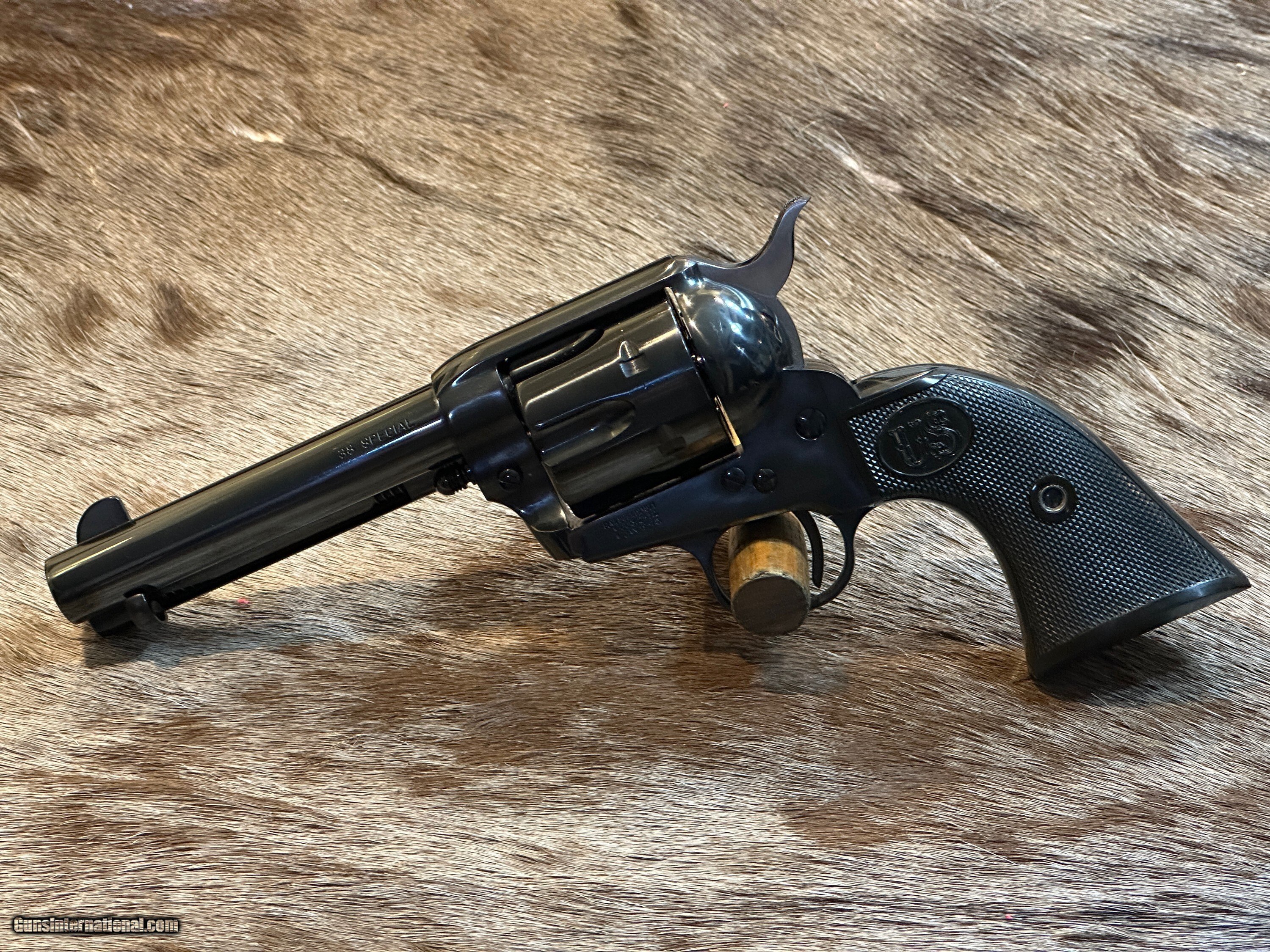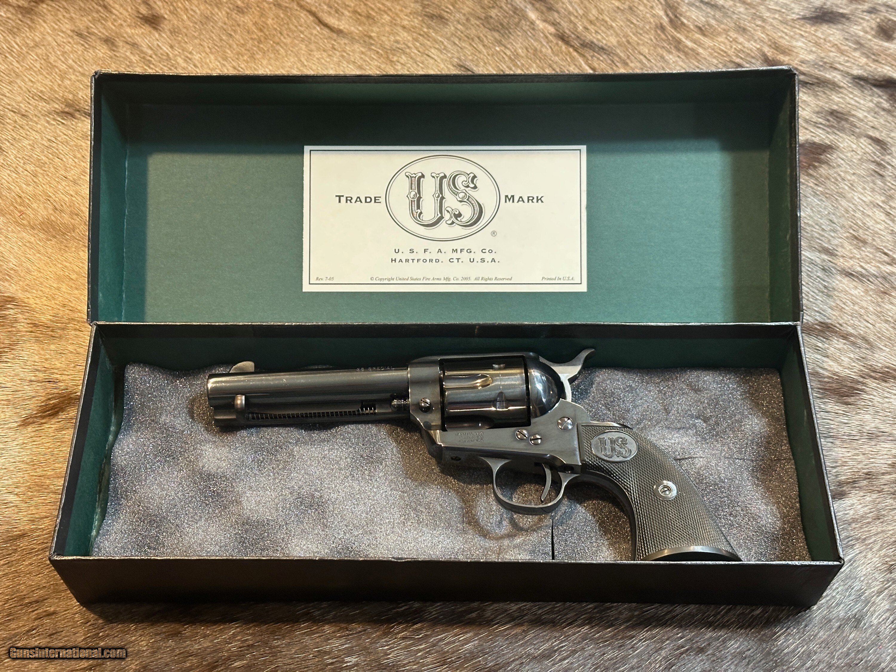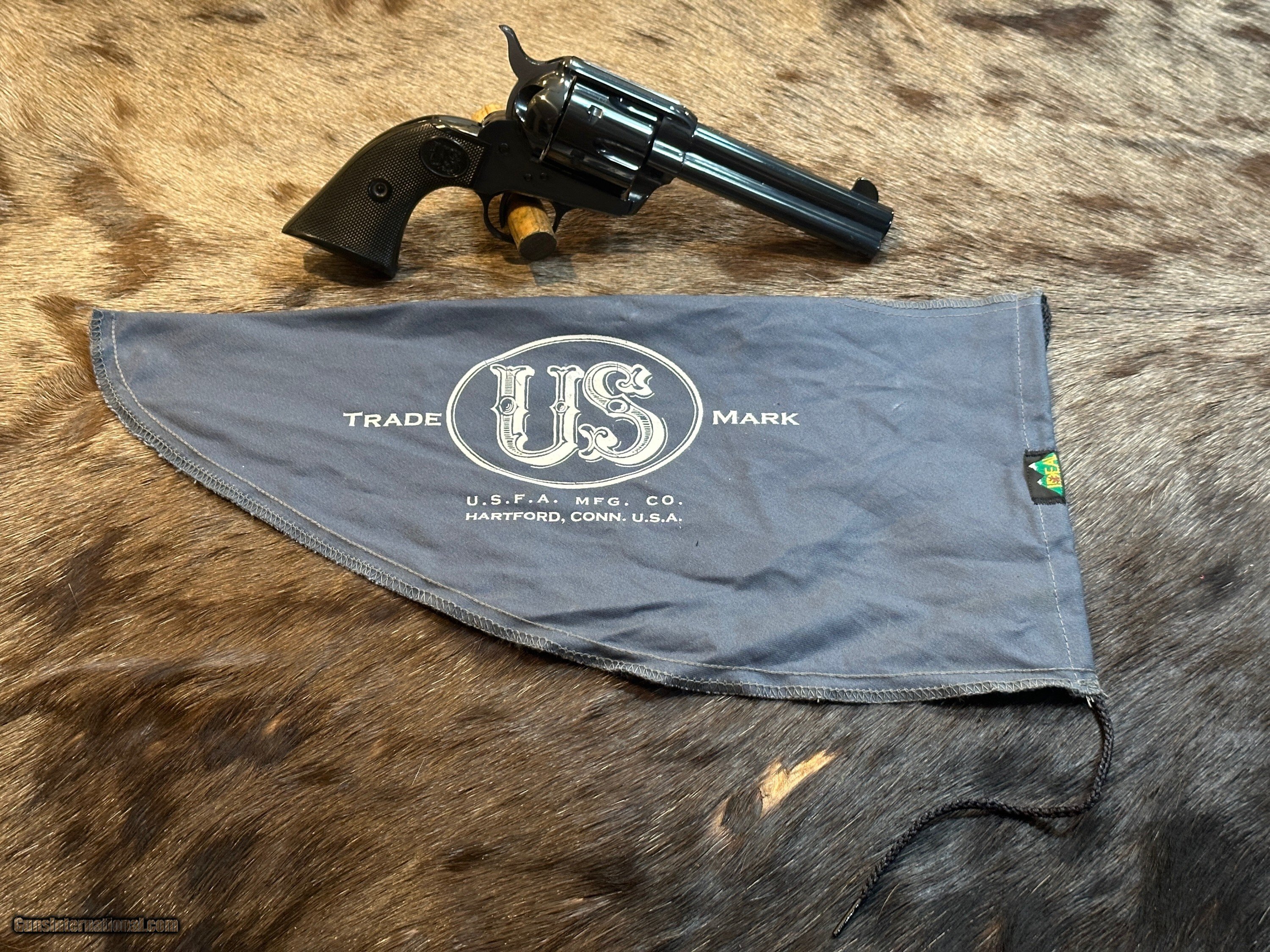 Description: LIKE NEW IN BOX USFA 1873 SINGLE ACTION ARMY 38 SPECIAL W/ FACTORY BAG, BOX, AND PAPERWORK FEATURES OF THIS GREAT 1873 REVOLVER INCLUDE: