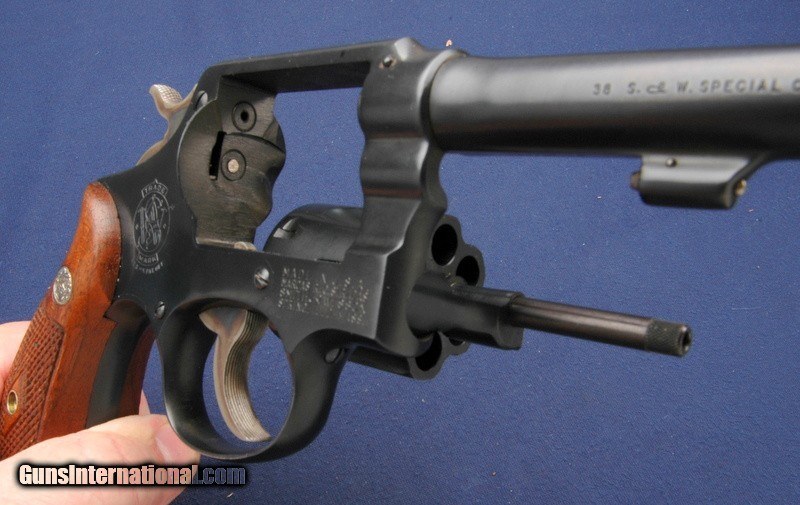 Description: This revolver is simply stunning. This is a post war pre model 10. Made between 1948 and 1952, since, according to the S&W Standard Catalog, they dropped the round blade front sight in 1952. C prefix serial number. Stone mint condition. Breechface looks untouched. The brushed blue finish is near perfect. 6" barrel. Bore is perfect. Cylinder face is... well.. you decide. Grips numbered to the gun. Screws are untouched. Numbers all match, barrel, frame and cylinder. Very slight cylinder turn line. I'll bet it's been dry fired a few times, but I simply see no evidence of the hammer actually being dropped on a live round. No box or papers. $35 shipping to the lower 48, 3% surcharge for using a CC. If you choose to pay with a personal check, we will hold the item for up to 10 days to make sure that it clears. Please expedite such pymts as we will hold an item on your word for 5 days. SOLD |