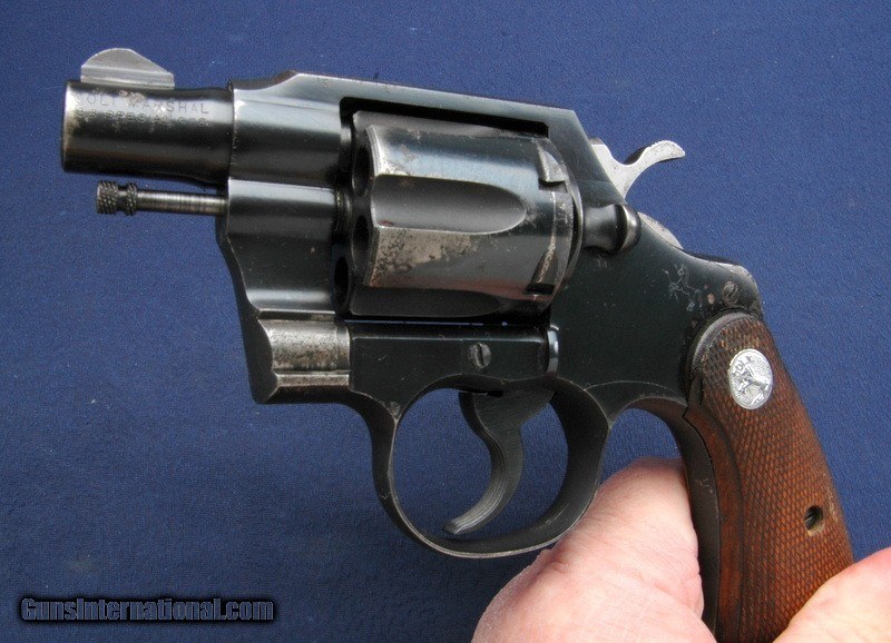 Description: Here is a rare bird. A 2" Colt Marshal revolver. Only made for 2 years, '55 to '56, the total number made was 2,500, with many less made with the short 2" barrel. This example was well used and certainly carried a lot. There is also some blood pitting at the cylinder hinge and adjacent to that on the cylinder. All shown in the pictures. The exterior is generally well worn, with about 70% of the original blue. The bore is bright and clean. Action works as it should and locks up tight. Who knows what stories this little guy could tell! $35 shipping to the lower 48, 3% surcharge for using a CC. If you choose to pay with a personal check, we will hold the item for up to 10 days to make sure that it clears. Please expedite such pymts as we will hold an item on your word for 5 days. SOLD Handgun Caliber: .38 Special |