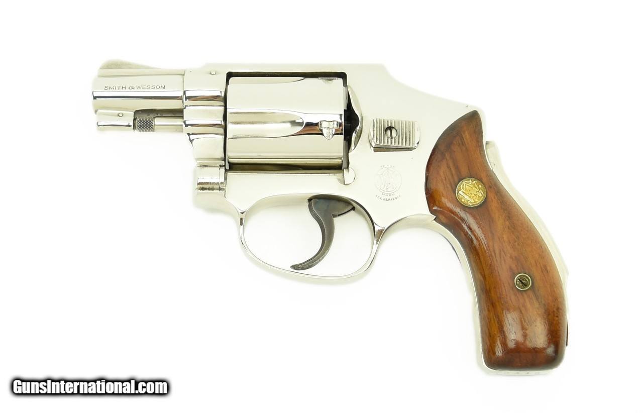 Description: Doc Holliday's "Very Cosmopolitan!" Pistol Emporium is pleased to offer this eye-popping: Rare 1952 Smith and Wesson Centennial Pre-Model 40 Action: Double Action Only Barrel: 2-inch pinned barrel Caliber: .38 Special Condition: Near Mint Finish: Sparkling full factory nickel finish Frame: J-Frame Grips: Grip Safety with smooth wood stocks with gold S&W medallions Serial#: 2415 This is a 1st year production, 4-screw Smith and Wesson Centennial flat latch Pre-Model 40 aka "Lemon Squeezer". The Centennial celebrates S&W’s 100-Year Anniversary (1852-1952). Gun remains in near new condition, retaining virtually all of the nickel finish with a light cylinder drag line. Fine case colors on trigger. Grips are near mint, but are not numbered. Perfect action. Strong clean bore. Lovely near new early flat latch factory nickel Centennial revolver. Please see "Standard Catalog of Smith & Wesson" 4th Edition book published in 2016, specifically pages: