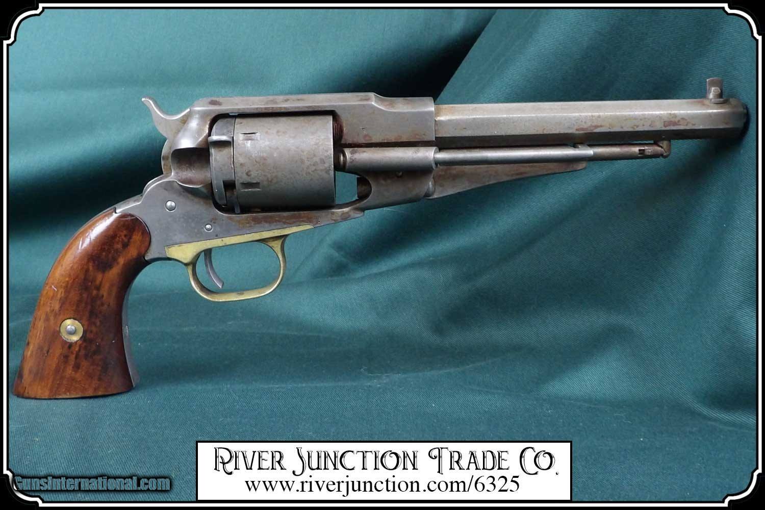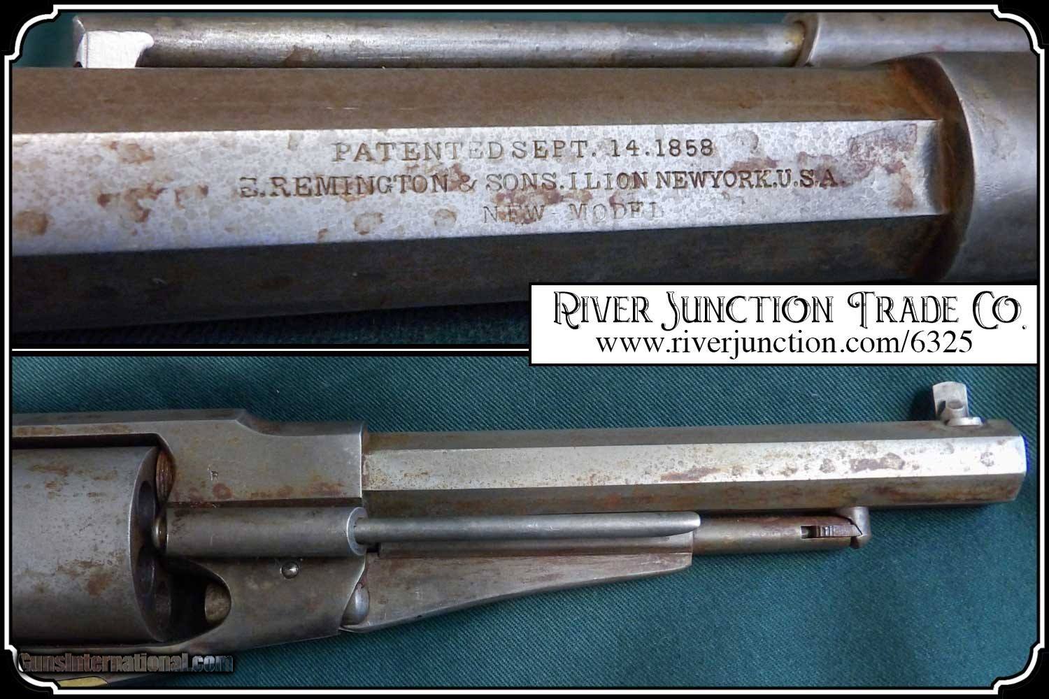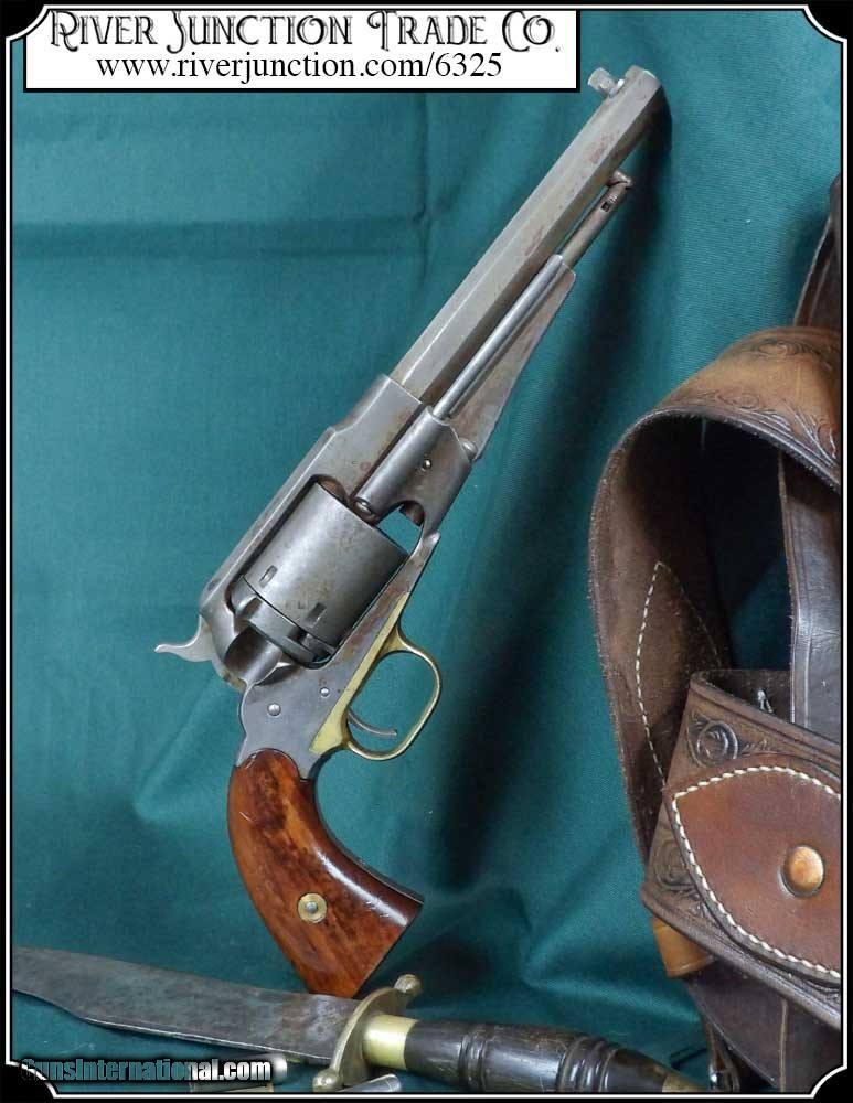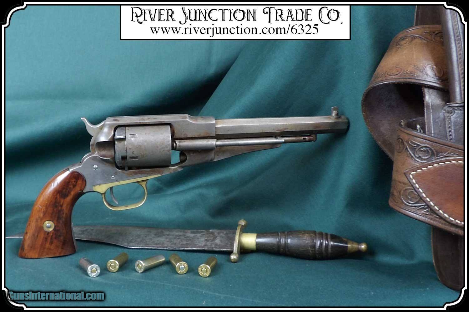 Description: A 1858 Remington complete conversions. This is an example of what a modern-day gunsmith has done. A Pietta 1858 Navy Revolver Converted to .38 special full wadcutters. To make one of these for you most gunsmiths today get about $1,250 EACH and you would have a long wait. The lock up is so tight that I cannot feel the slightest movement. The ejector rods functions very smoothly. Payment: Item, can be ordered on line with a credit card or paypal on our sight. Just Google (riverjunction) and type in the River Junction Trade Co. item number (6325) in the search box. Before you checkout you will see shipping cost and total. OR If you prefer: Pay by cash, postal money order, cashiers check, personal & business checks. We wait for checks to clear. We always answer questions and entertain offers. Have questions? Call me 563-880-4588. Jim SOLD |