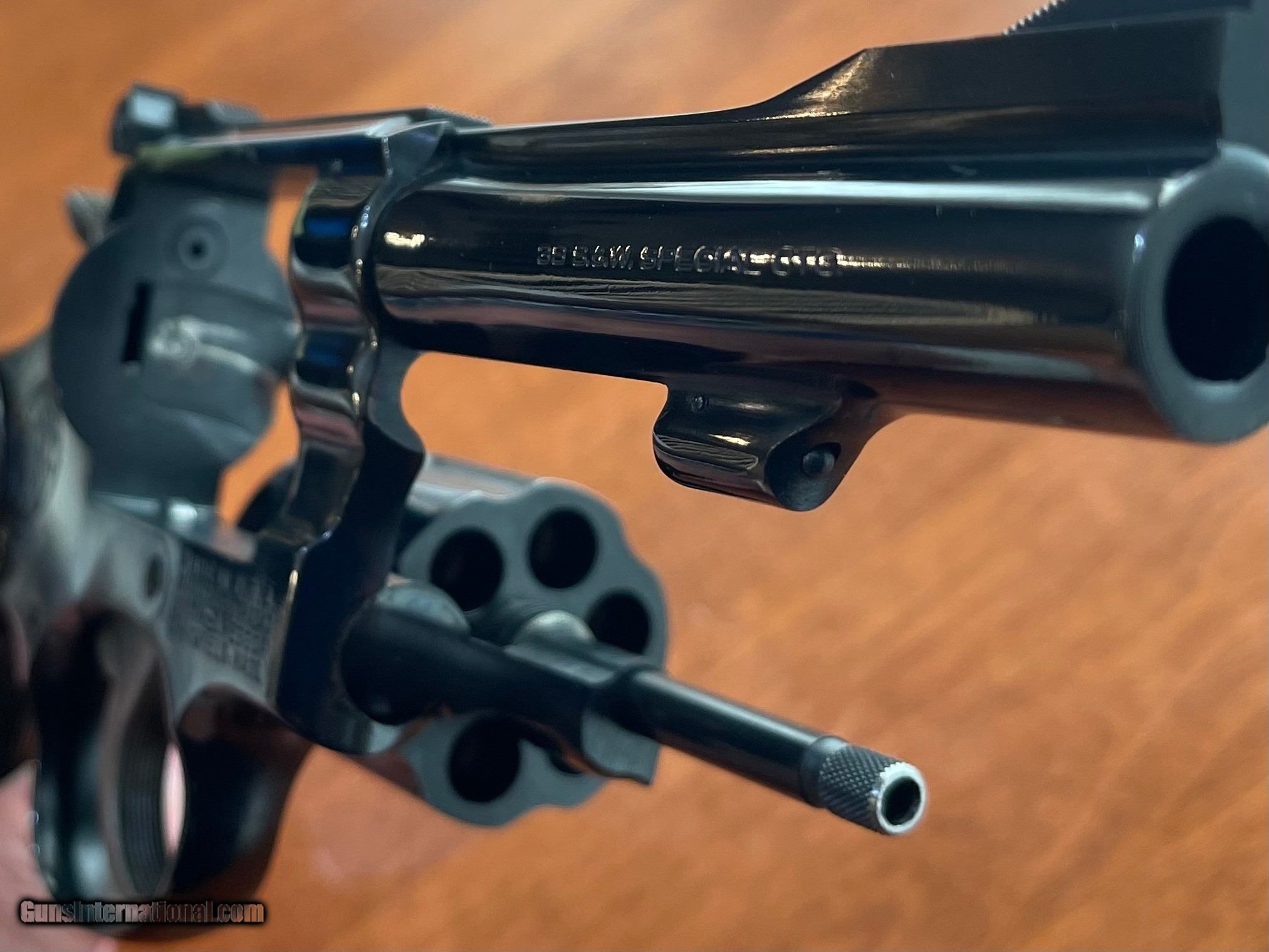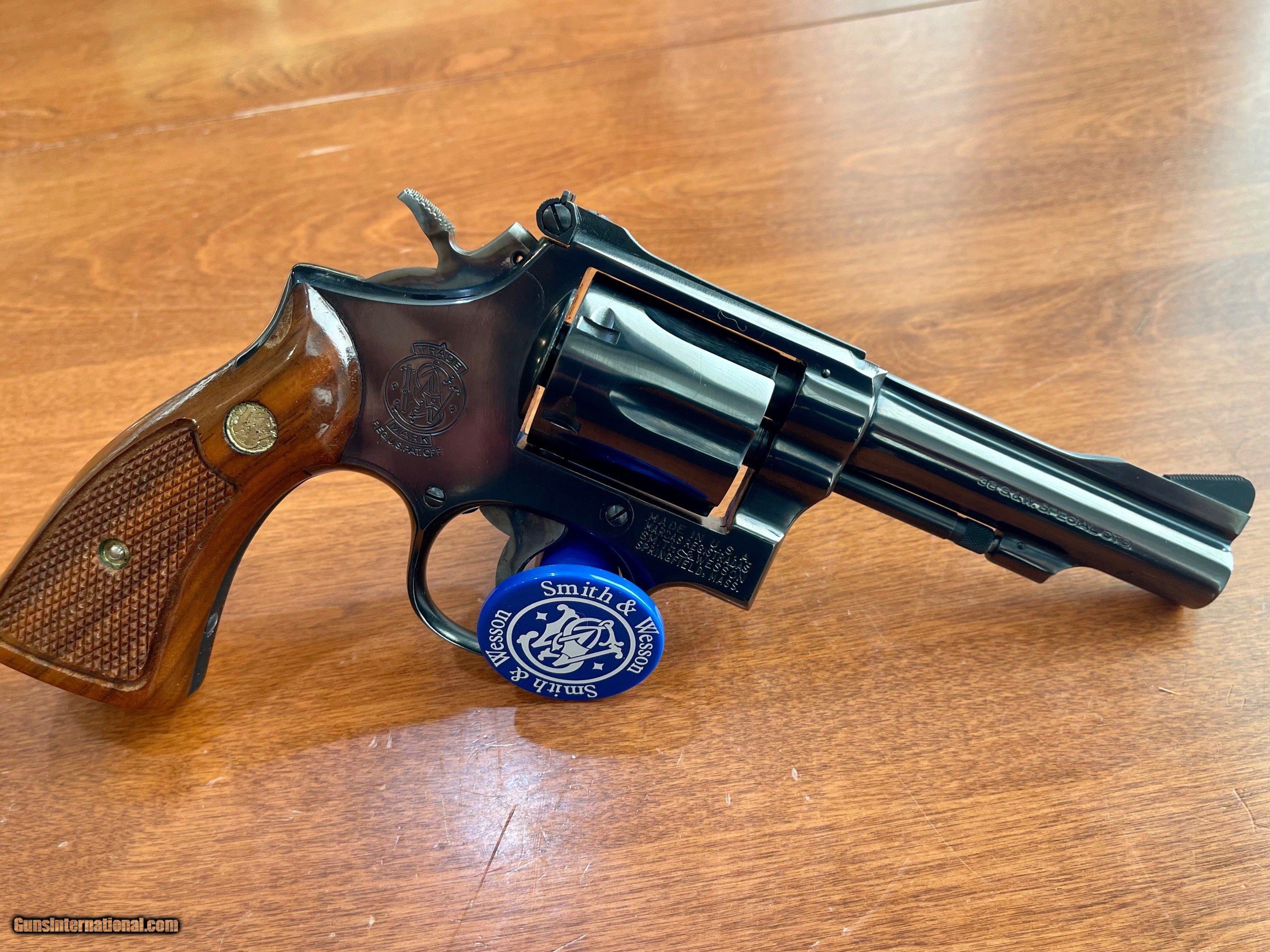 Description: ** Sold - Thanks Lew! ** S&W 15-3 4" adjustable sight 38spcl LEO owned - but not carried or shot old style hammer mounted firing pin pinned barrel appears unfired Finish and grips also perfect C&R elig (1970) **********Blue Star Hobbies is a group of friends in Central Illinois working together to ocassionally offer up items from our personal collections. Our focus is mostly S&W, Colt, & Ruger handguns built between 1946-1980. Our guns are better than our photography. We try to highlight flaws with red circles and everything else is usually glare or blanket fuzz. If you have a question about a photo please ask. We follow all Federal and State laws and GI policies. Please add $30 for standard shipping. We prefer payment by check/MO. (Credit card processing is available but adds 4%). We will ship to your FFL on Mondays, Tuesdays and Wednesdays to minimize in-transit risks. ********** SOLD Curio/Relic: Yes Handgun Caliber: .38 Special Manufacturer: Smith & Wesson Model: 15-3 Serial Number: K999789 Condition: Excellent Metal Condition: Excellent Wood Condition: Excellent Bore Condition: Perfect Finish: Blue Manufacture Date: 1970 |
