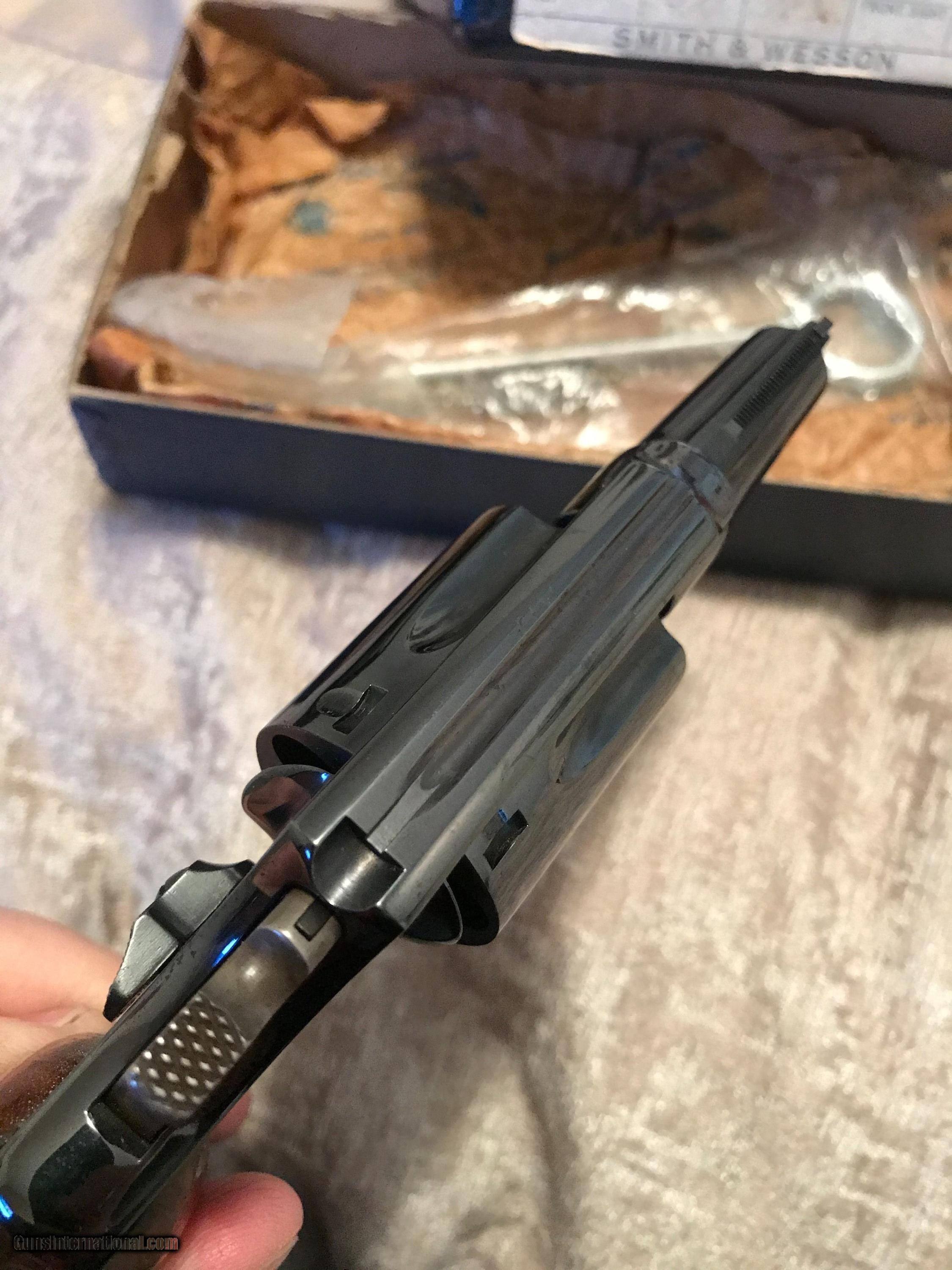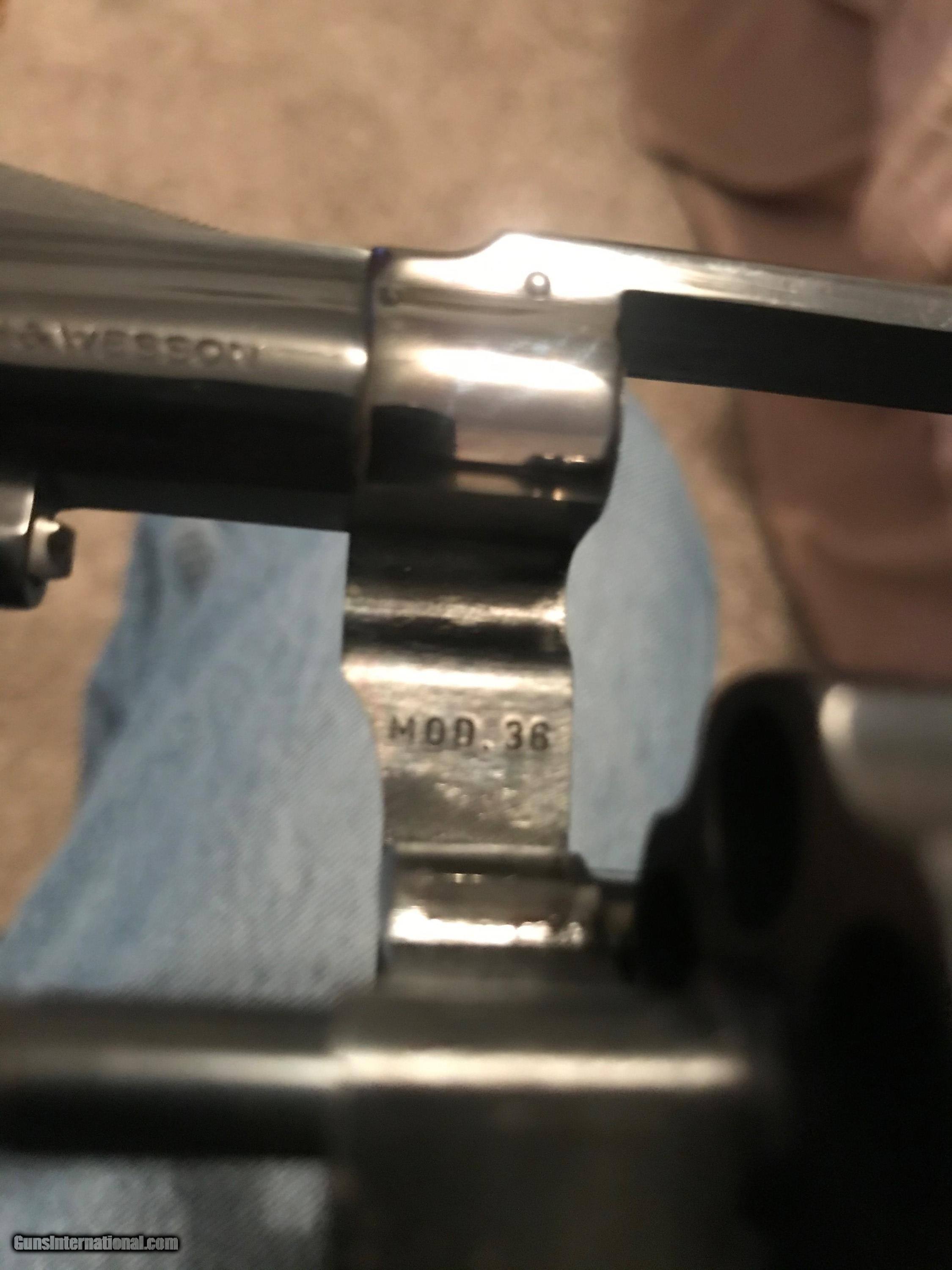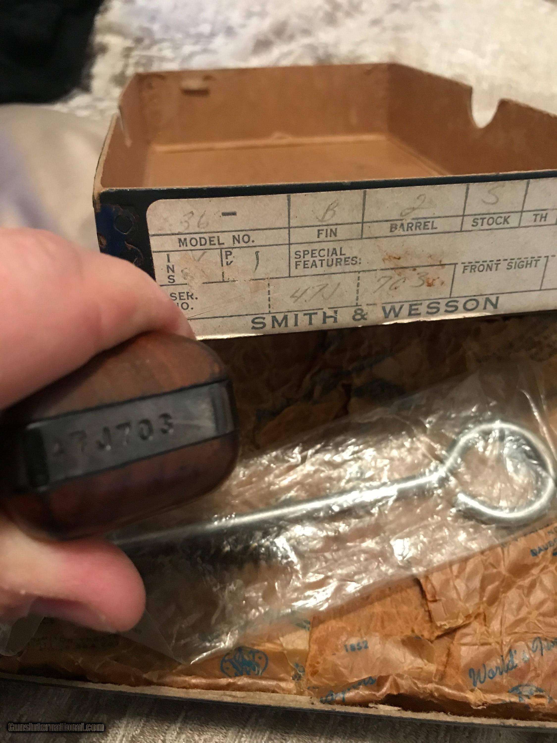 Description: What a beautiful 36! Original box and tools. Blue finish, wood grips, fixed sights, no dash, pinned barrel. Please email with questions. Shipping included. Cards add 3% SOLD Manufacturer: Smith and Wesson Model: 36 Barrel Length: 1 7/8ths inch Condition: Used Metal Condition: Excellent Wood Condition: Excellent Bore Condition: Excellent Action: Double Finish: Blue Sights: Fixed Item Location: 37075 |